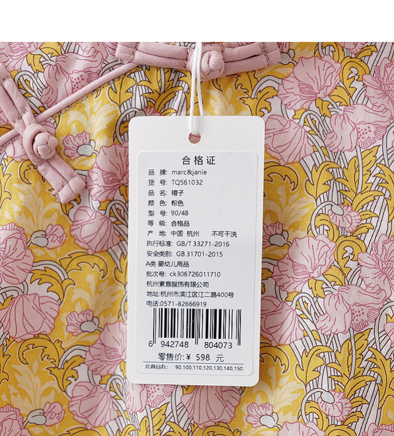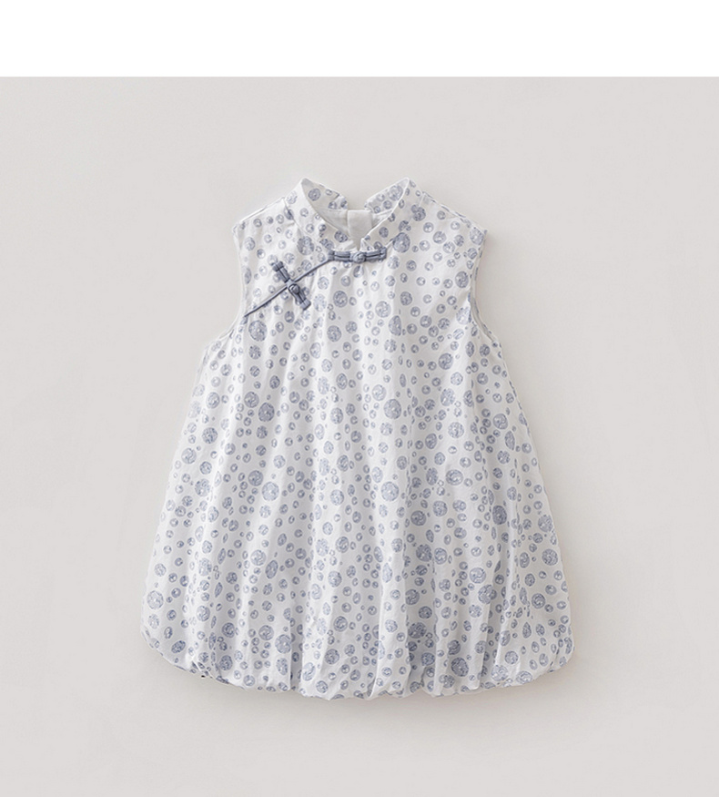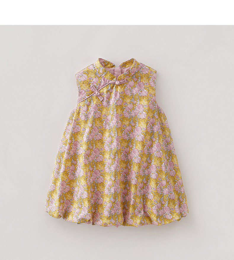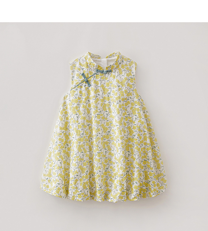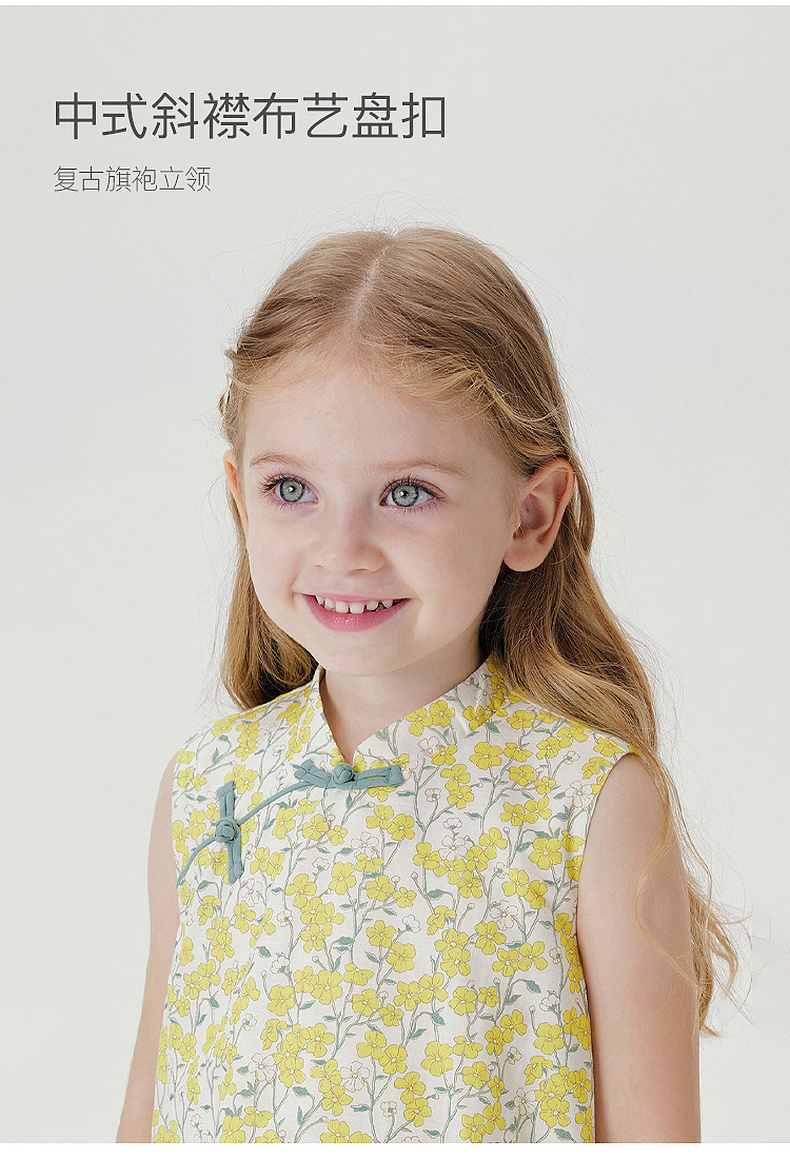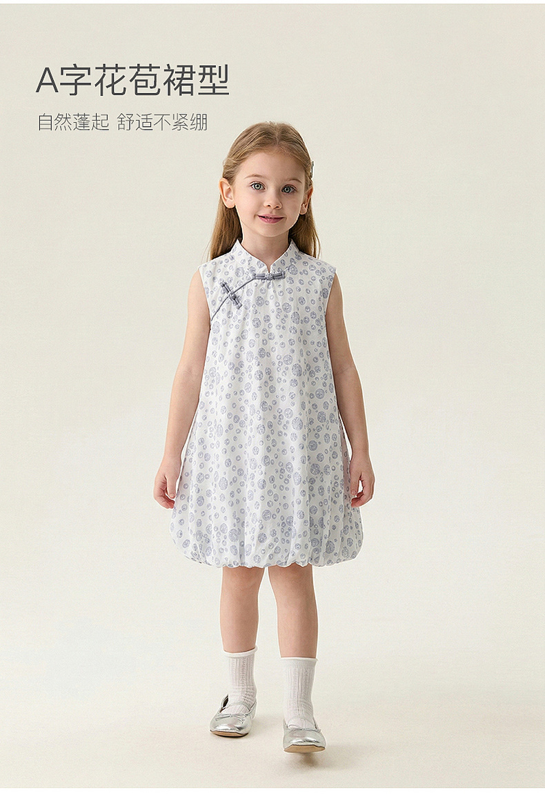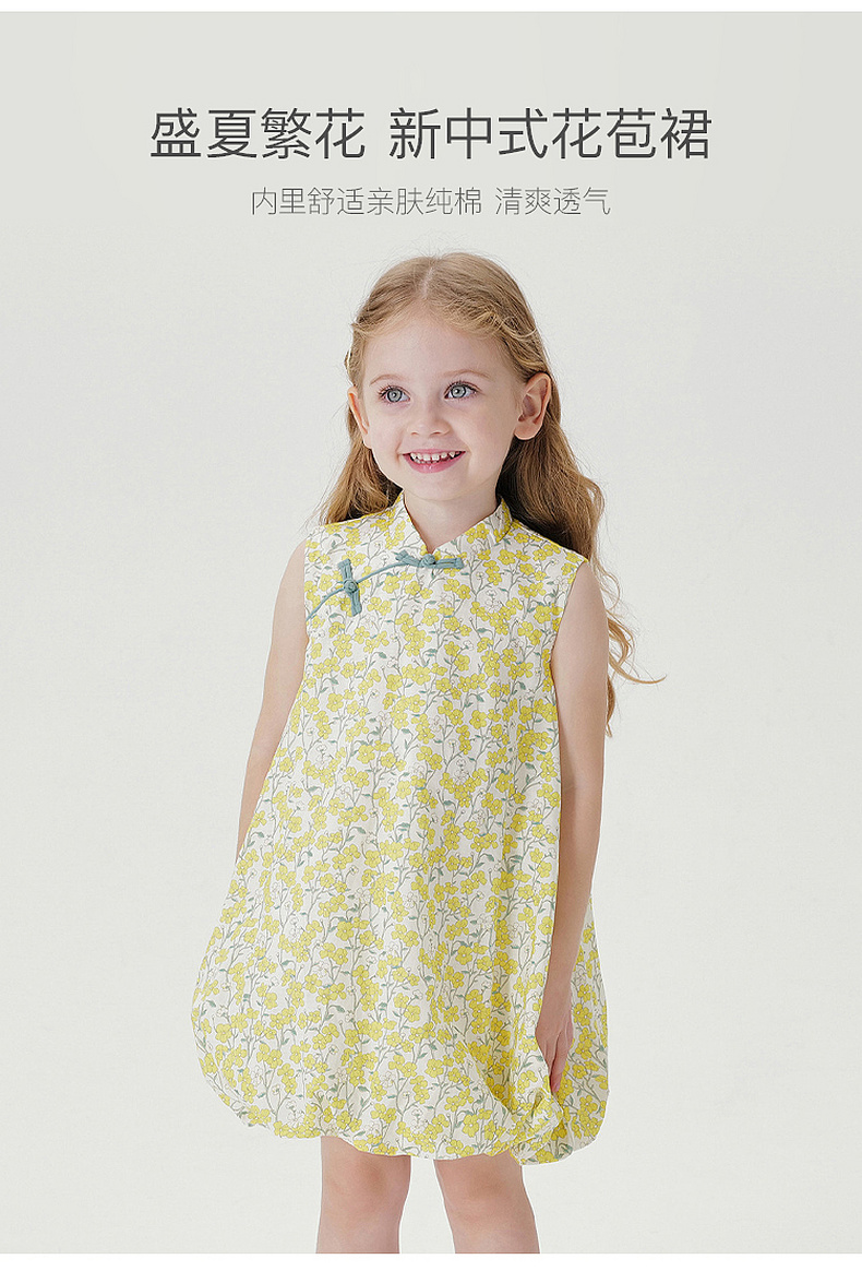 马克珍妮盛夏繁花女童新中式亚麻花苞裙2026年夏装新款561032