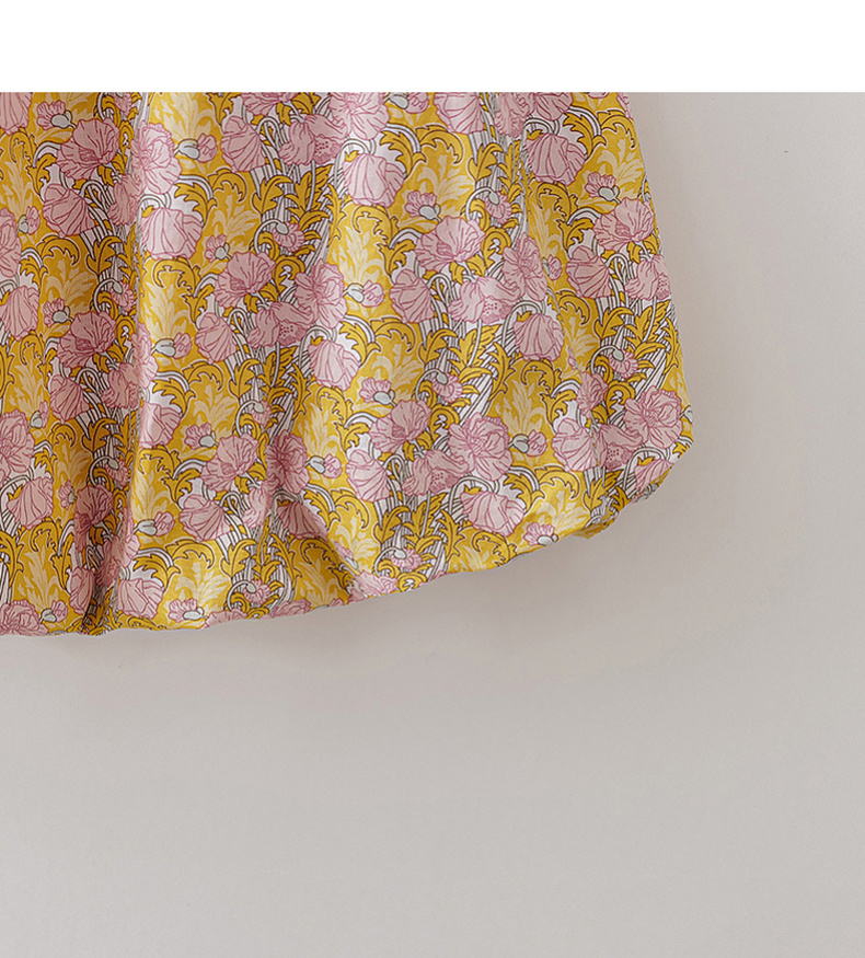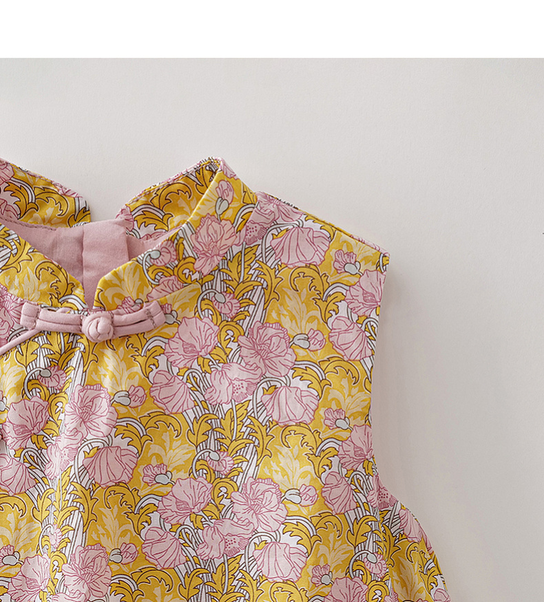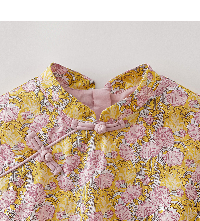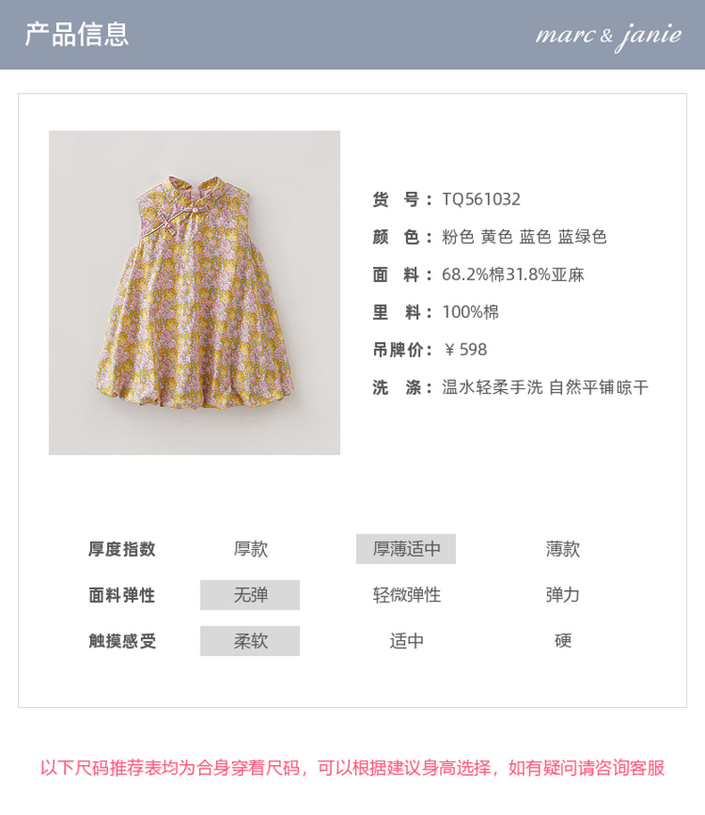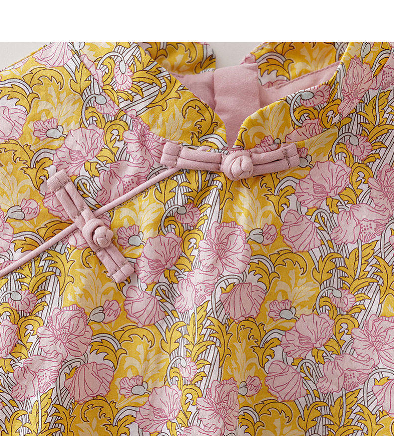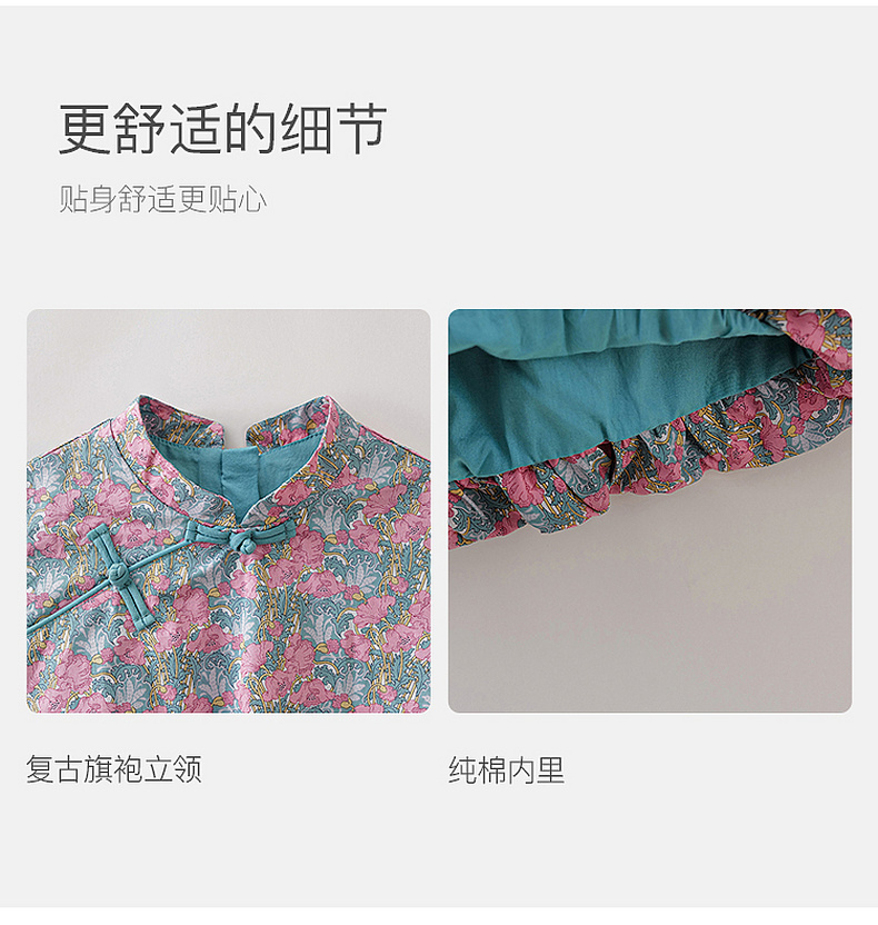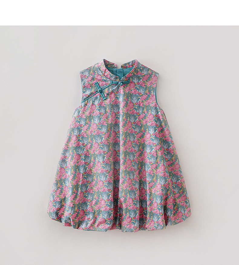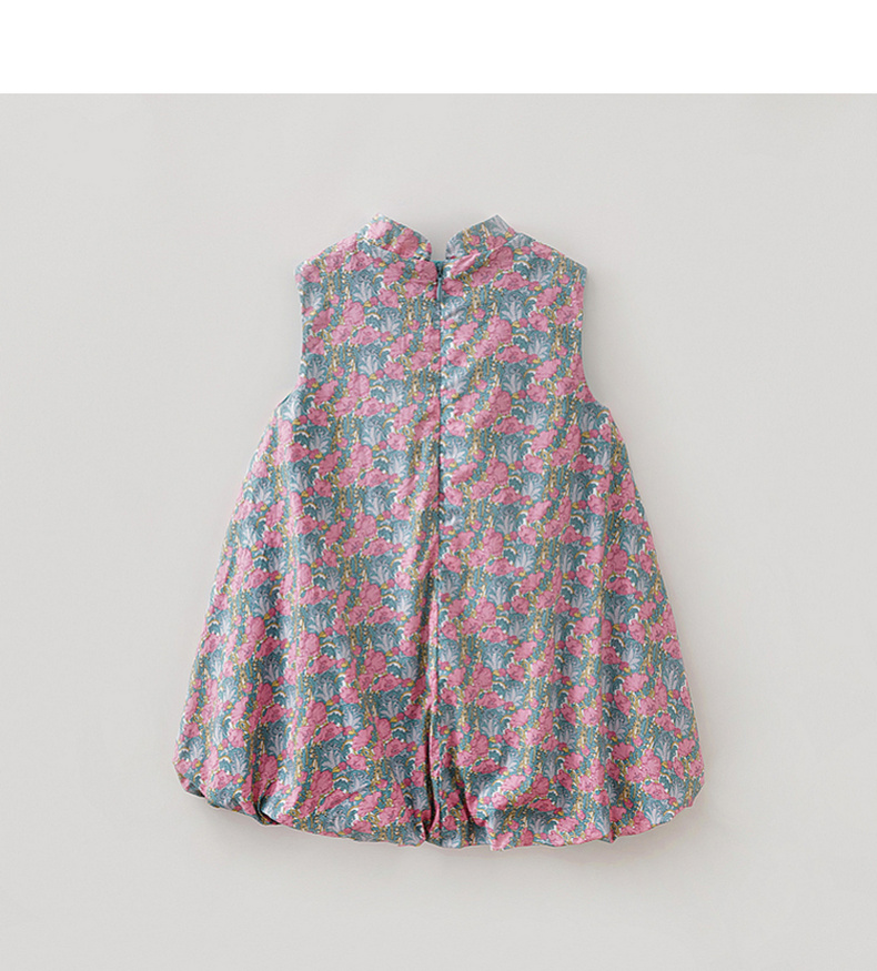 马克珍妮盛夏繁花女童新中式亚麻花苞裙2026年夏装新款561032