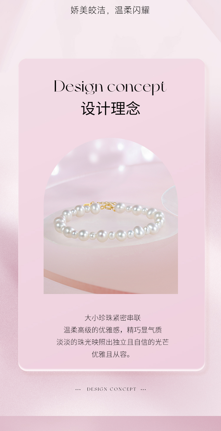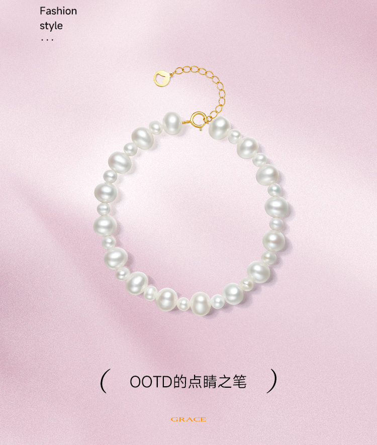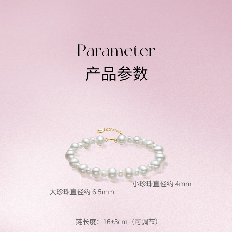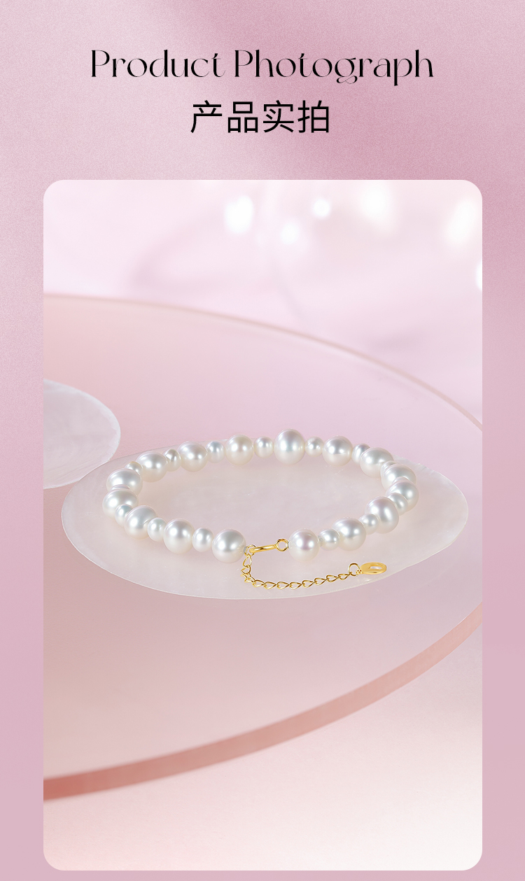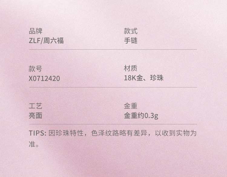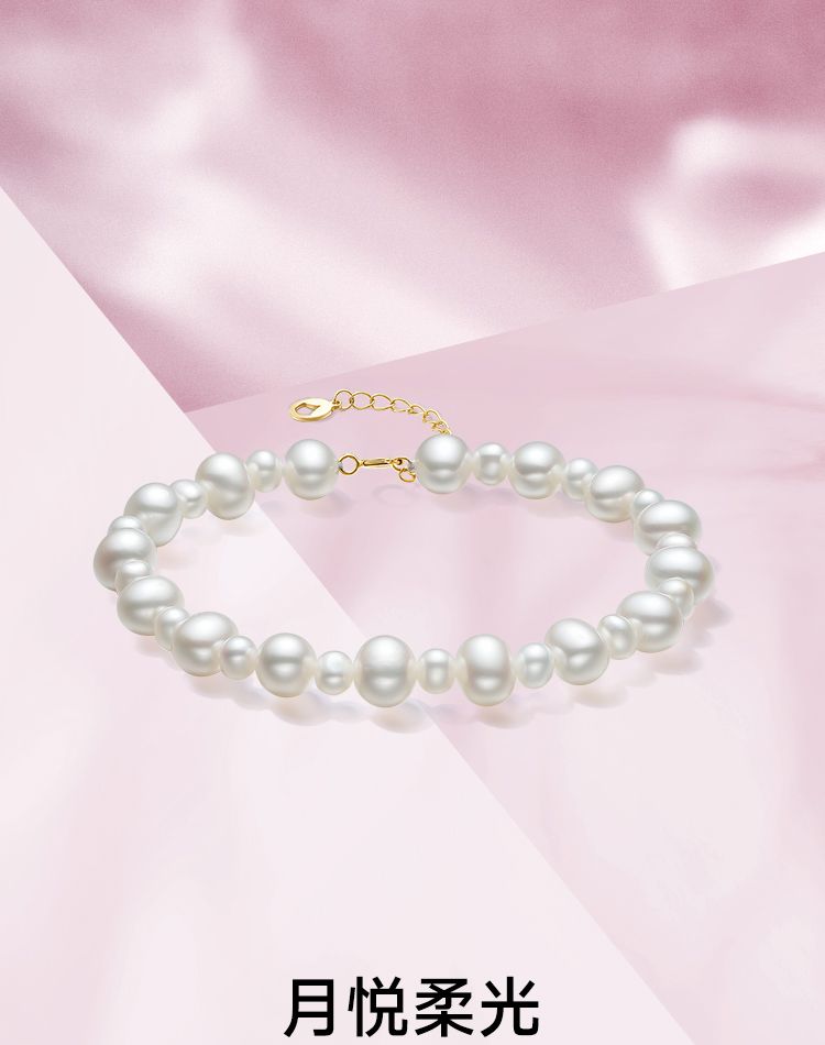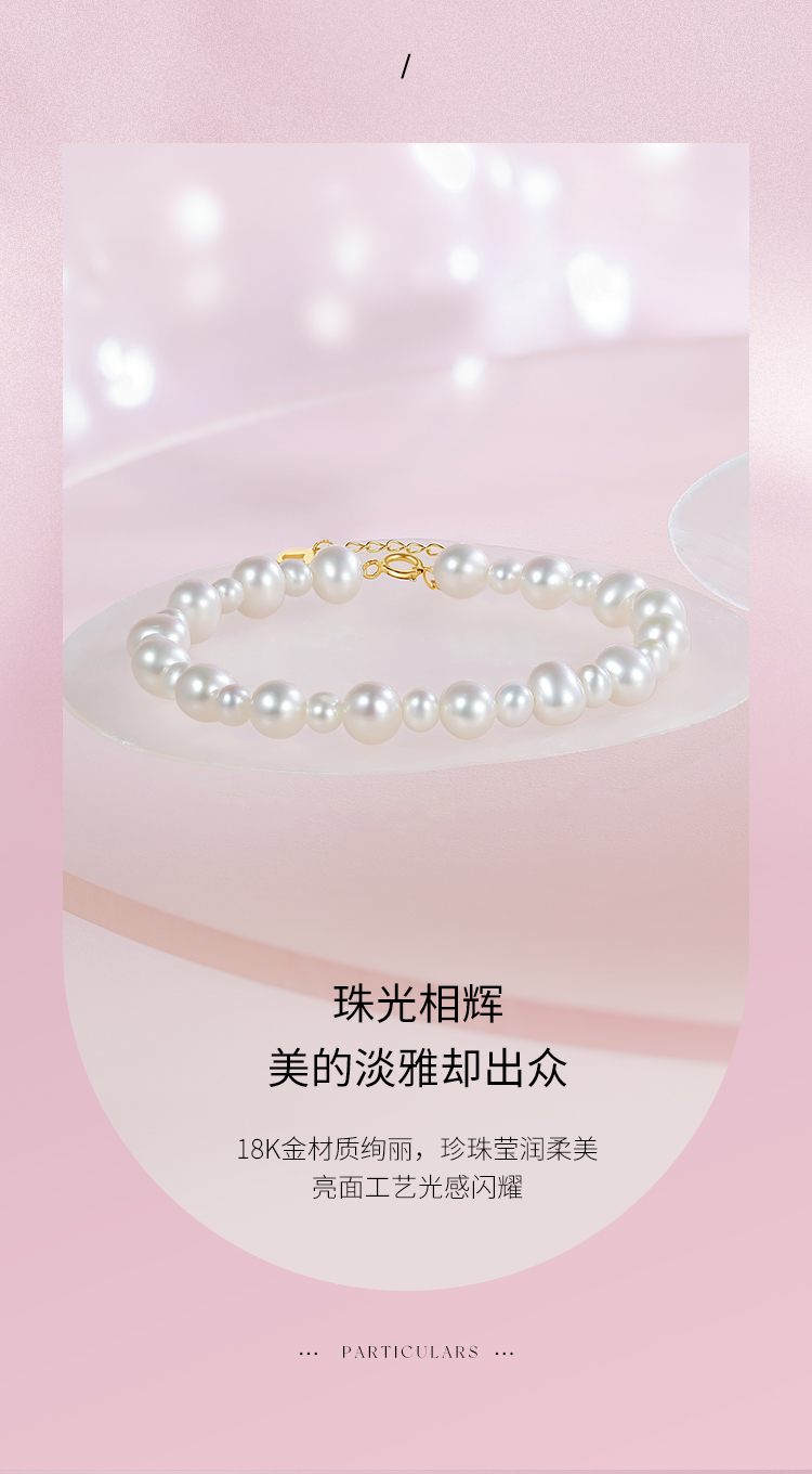 周六福黄18K金珍珠手链月悦柔光优雅时尚淡水珍珠手饰送女友官方
