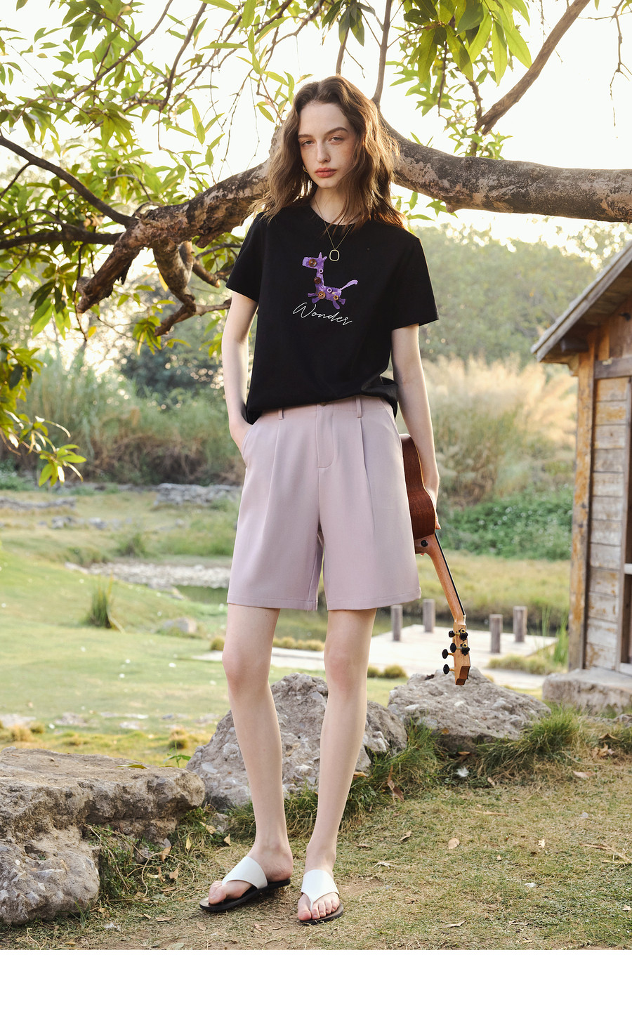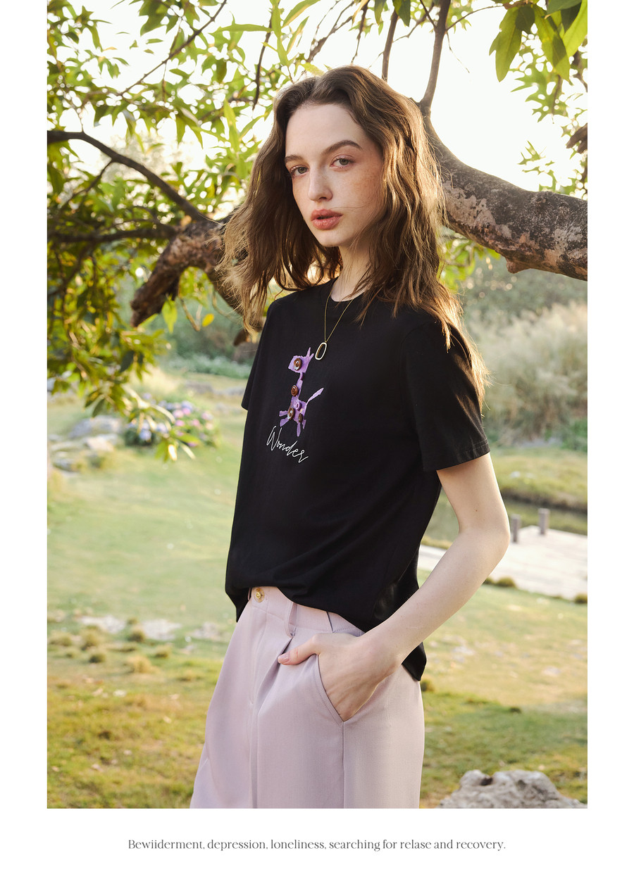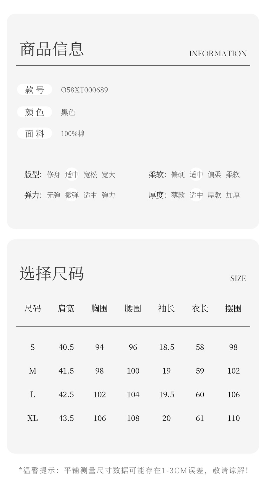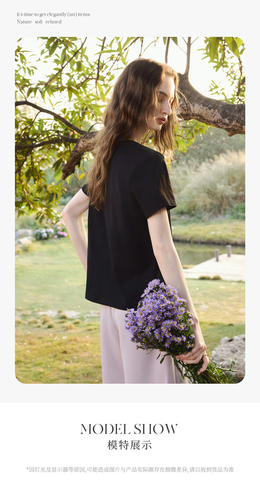 欧芮儿通勤休闲纯棉黑色小马印花短袖T恤女夏季2026新款圆领上衣