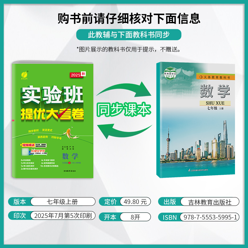 【2025秋上册】语文/数学/英语/物理/化学 实验班提优大考卷 初中七八九年级 初一二三版上