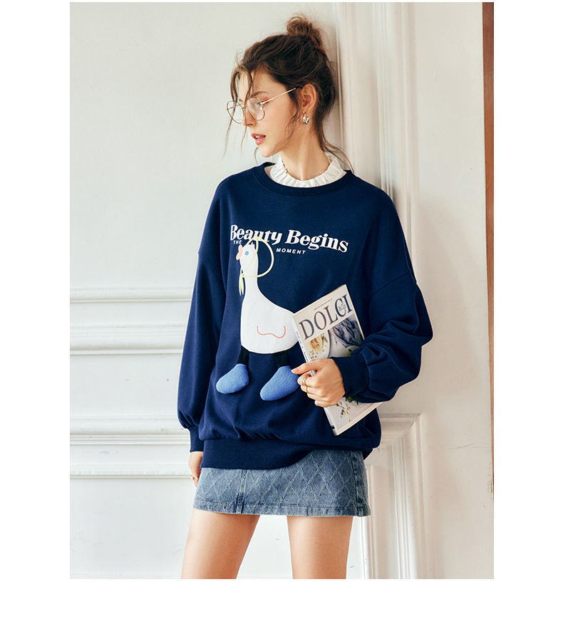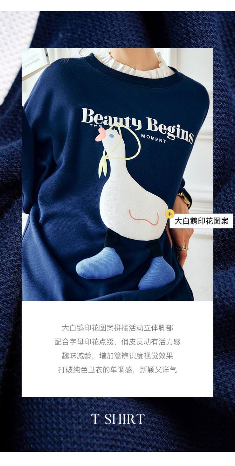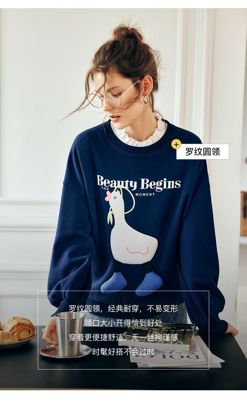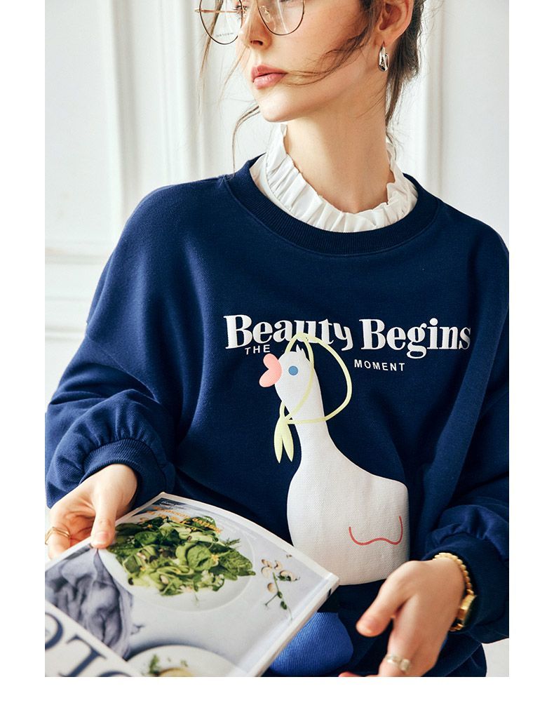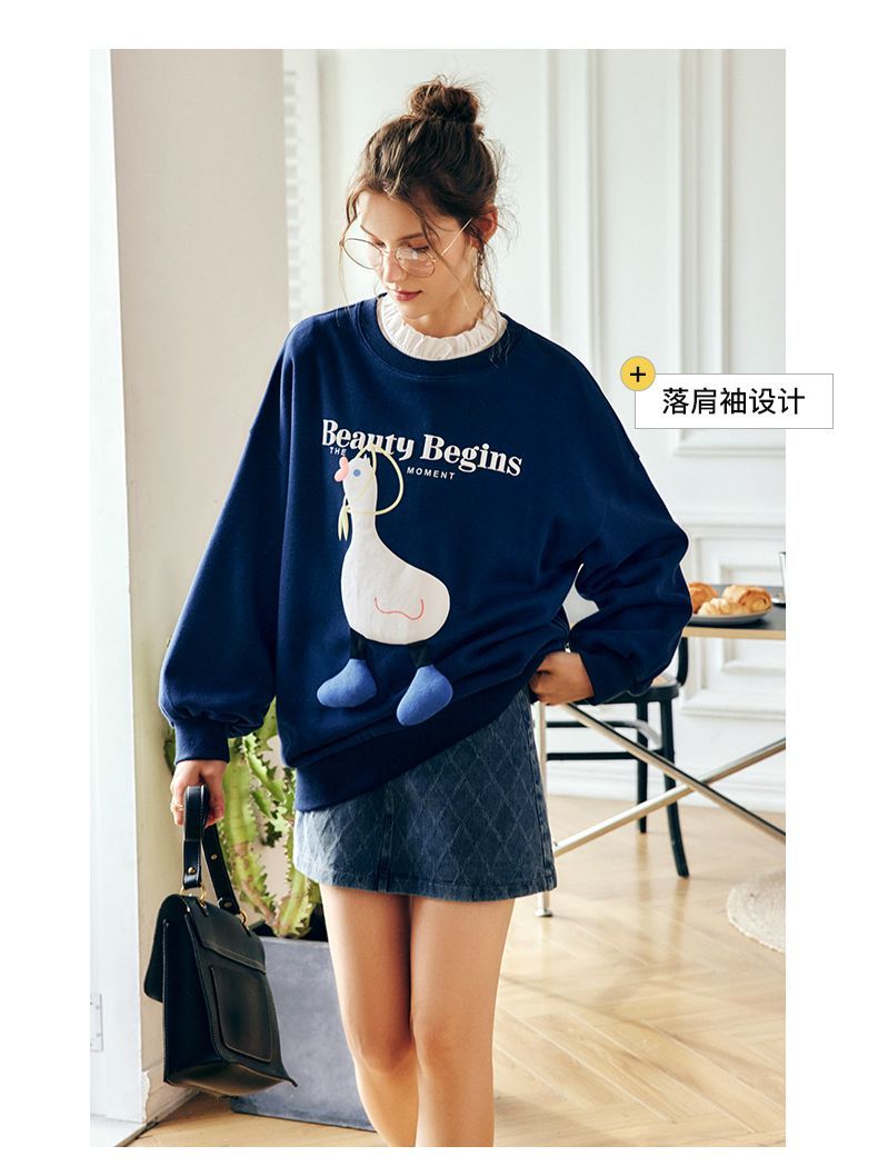 OLrain欧芮儿法式宝蓝色卫衣女早秋2022年新款洋气减龄印花上衣