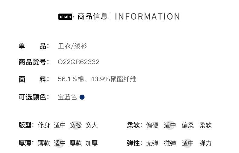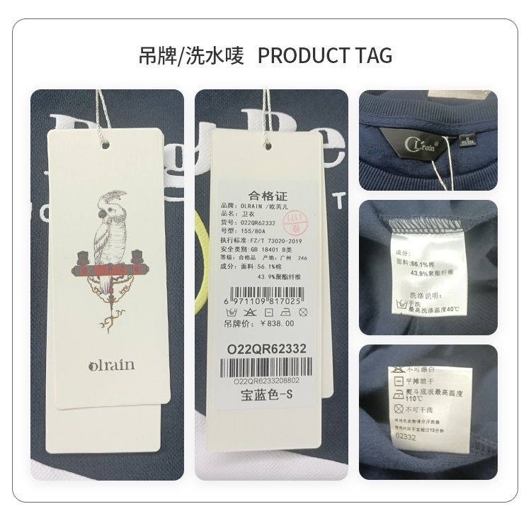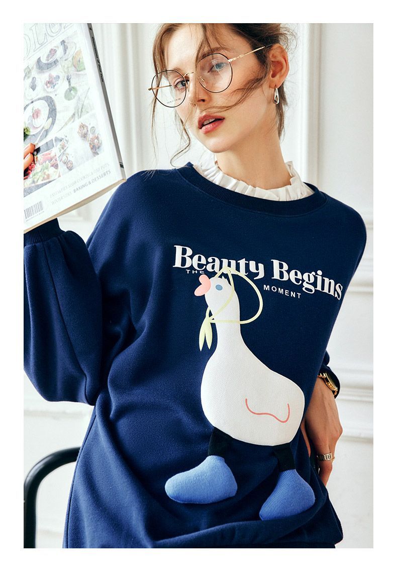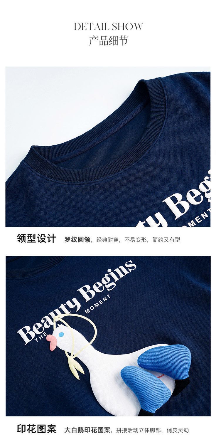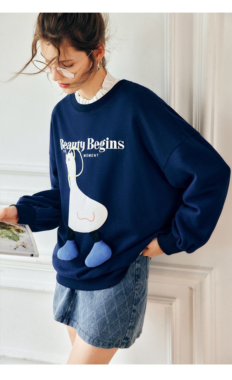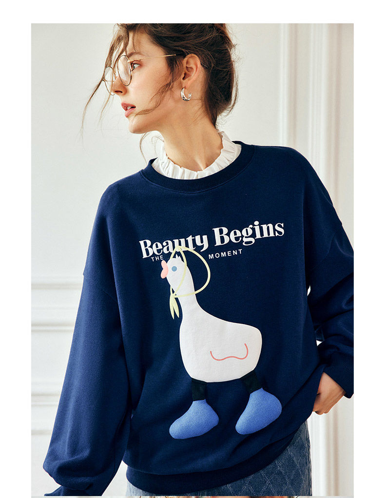 OLrain欧芮儿法式宝蓝色卫衣女早秋2022年新款洋气减龄印花上衣