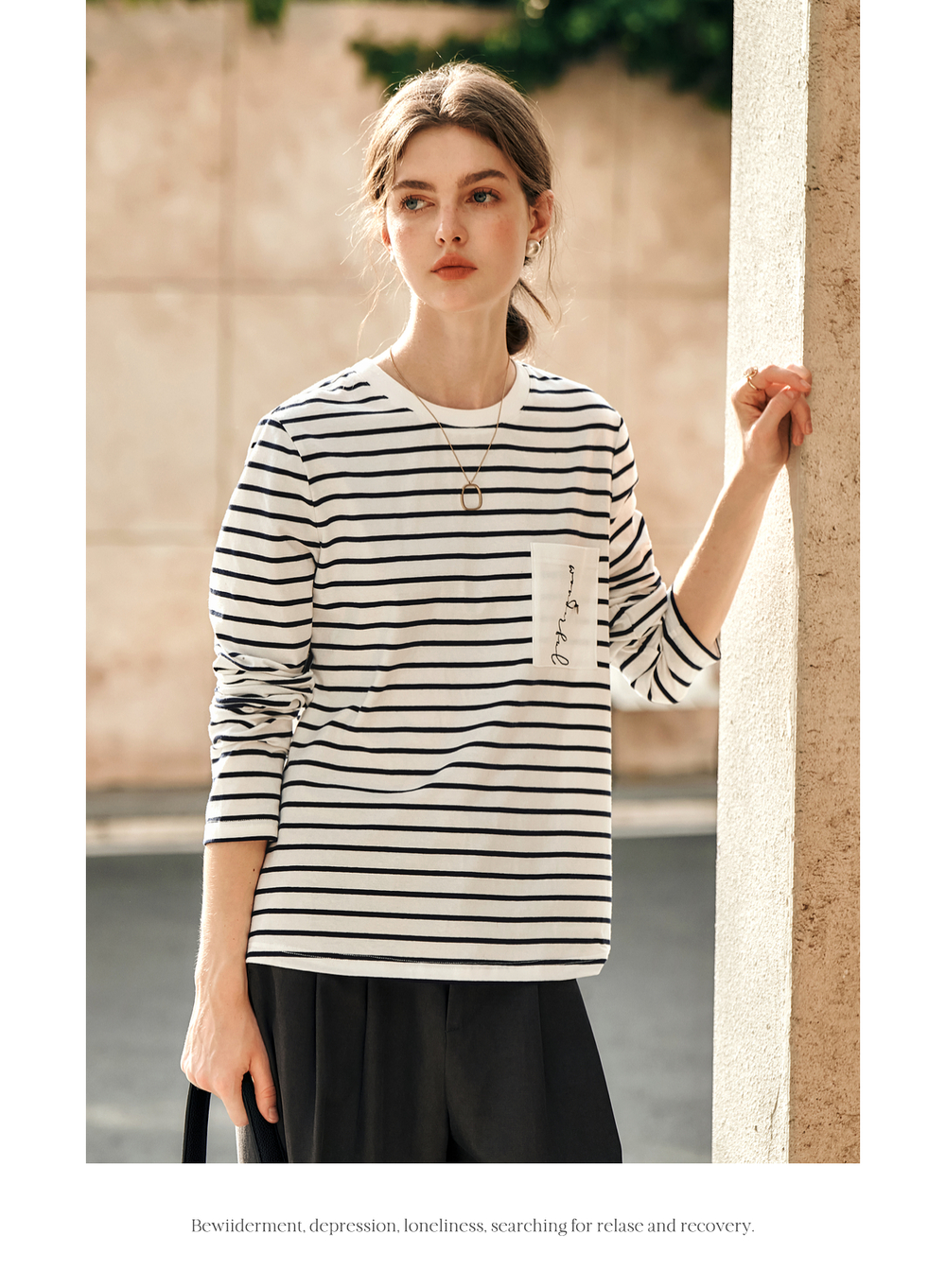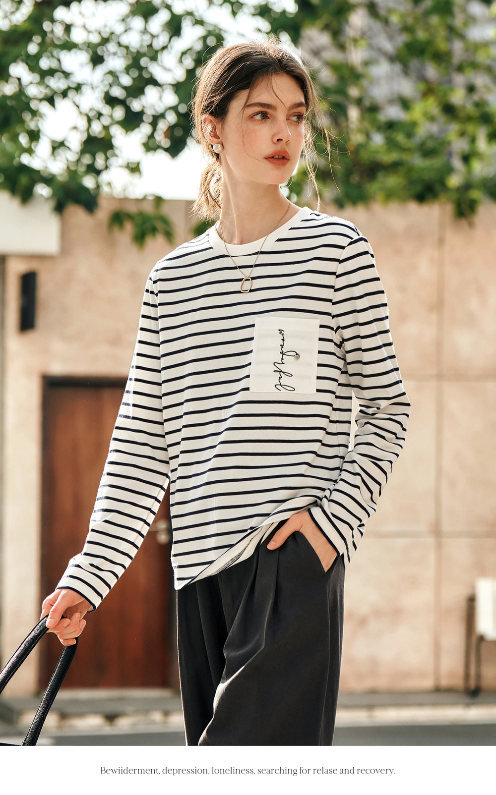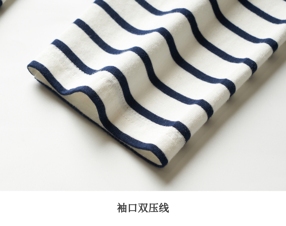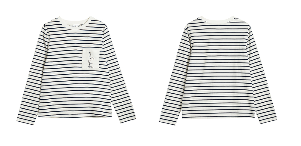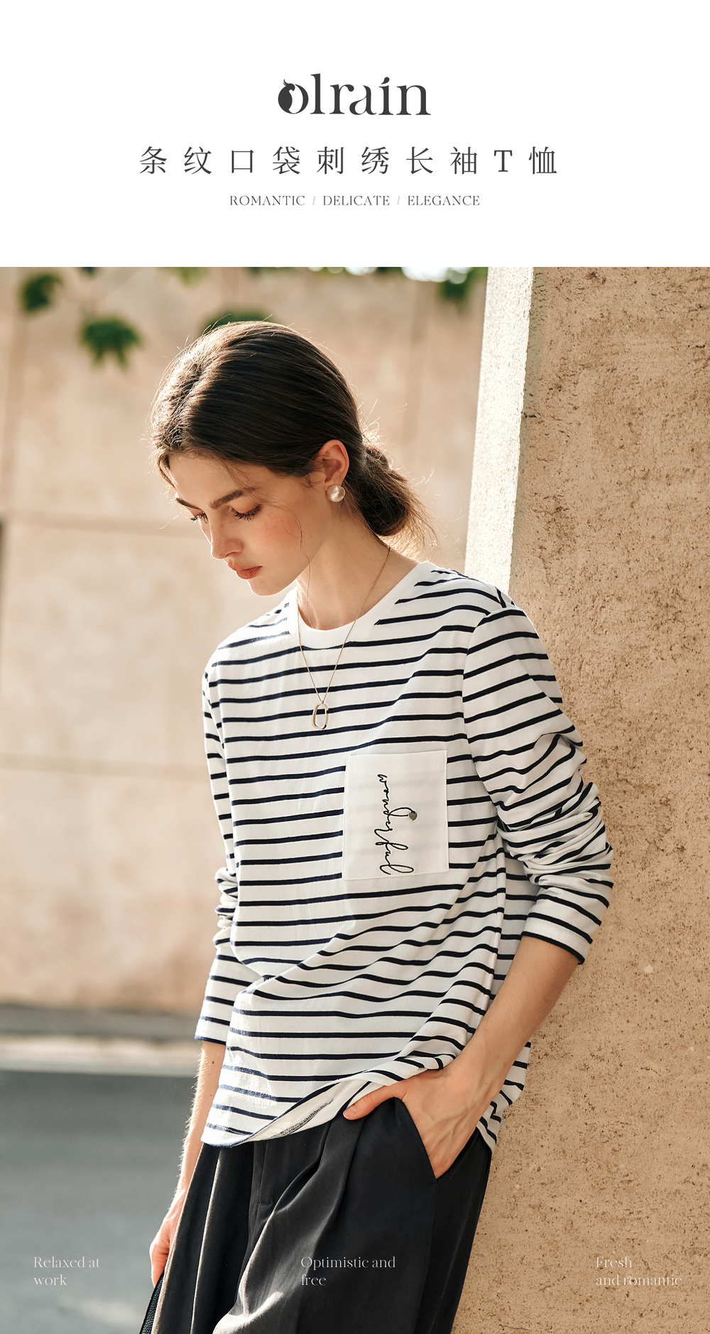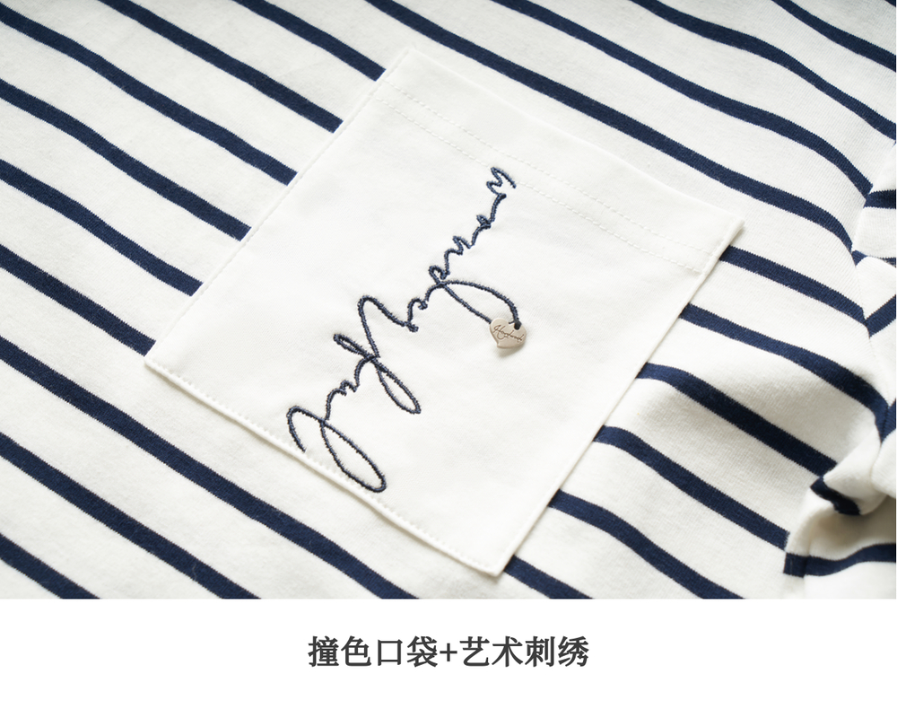 OLrain欧芮儿条纹长袖T恤女冬季2024新款小众设计感口袋刺绣上衣