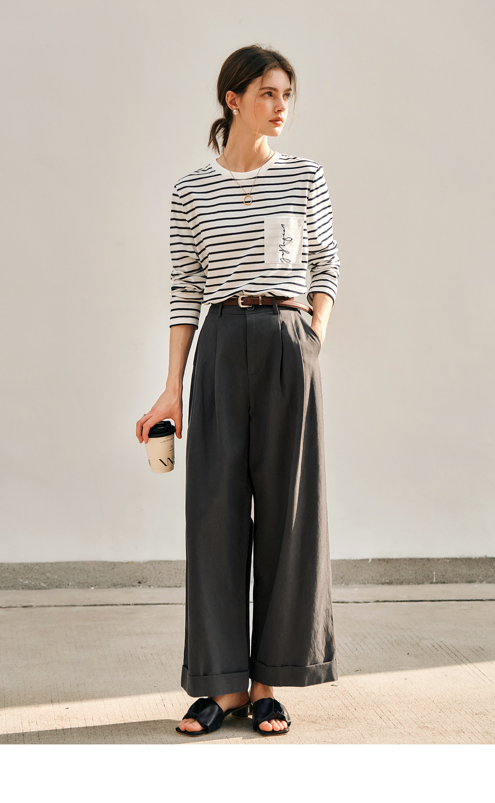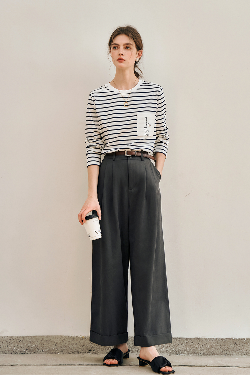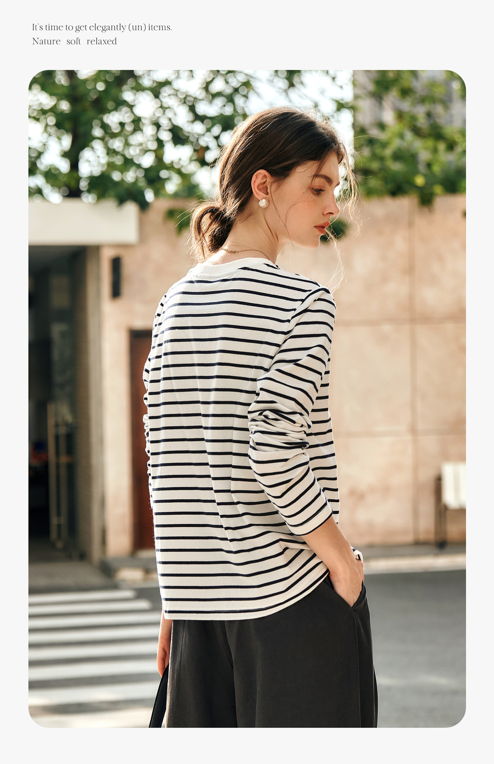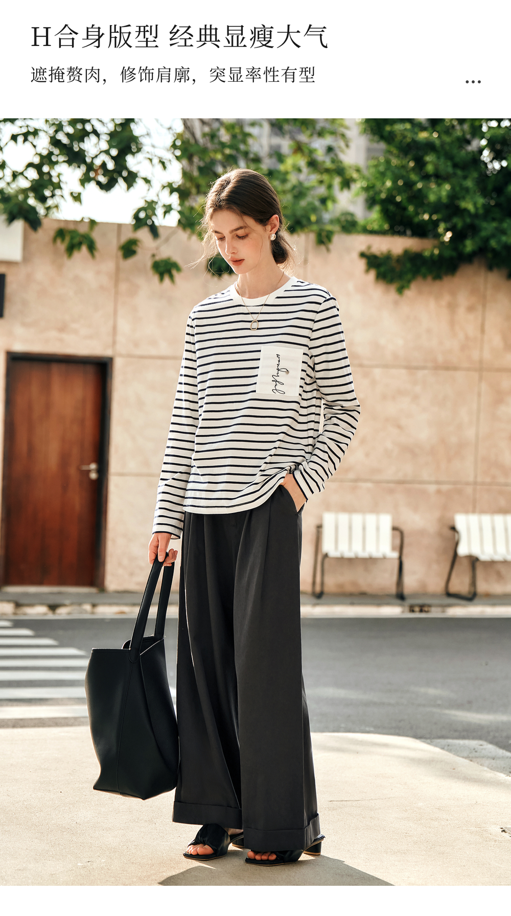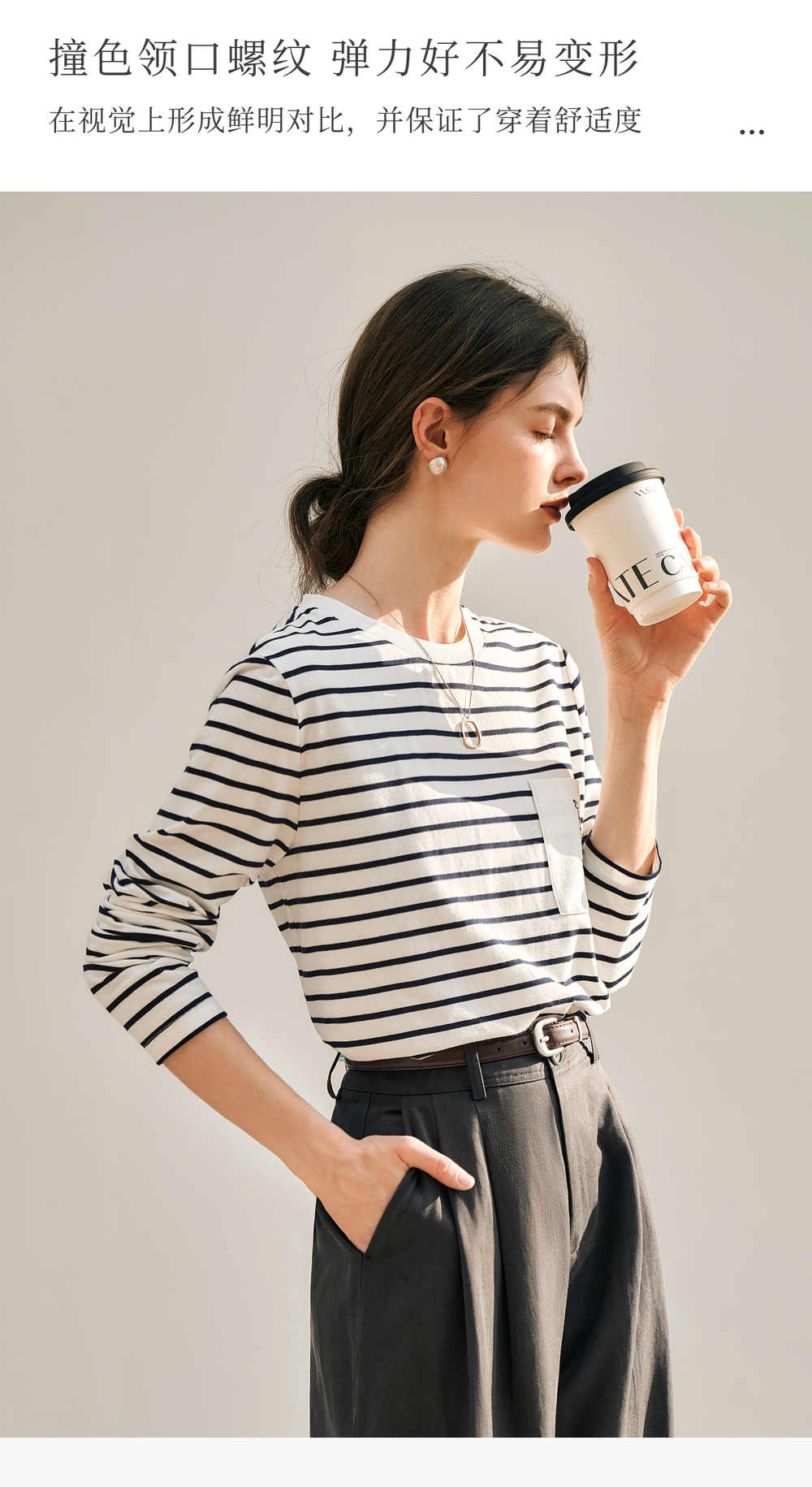 OLrain欧芮儿条纹长袖T恤女冬季2024新款小众设计感口袋刺绣上衣