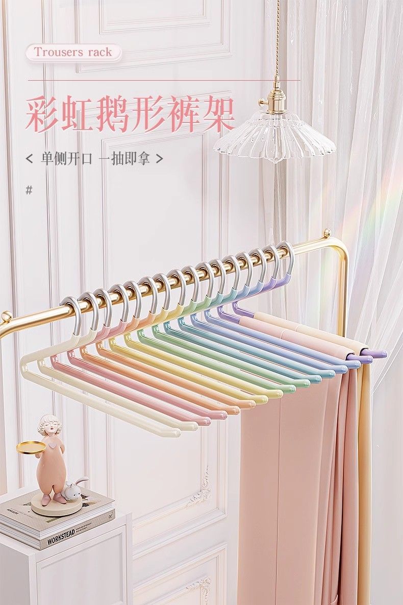 「10支装!不锈钢鹅型裤架」无痕防滑家用衣柜挂裤子收纳整理裤夹子z形2字衣架