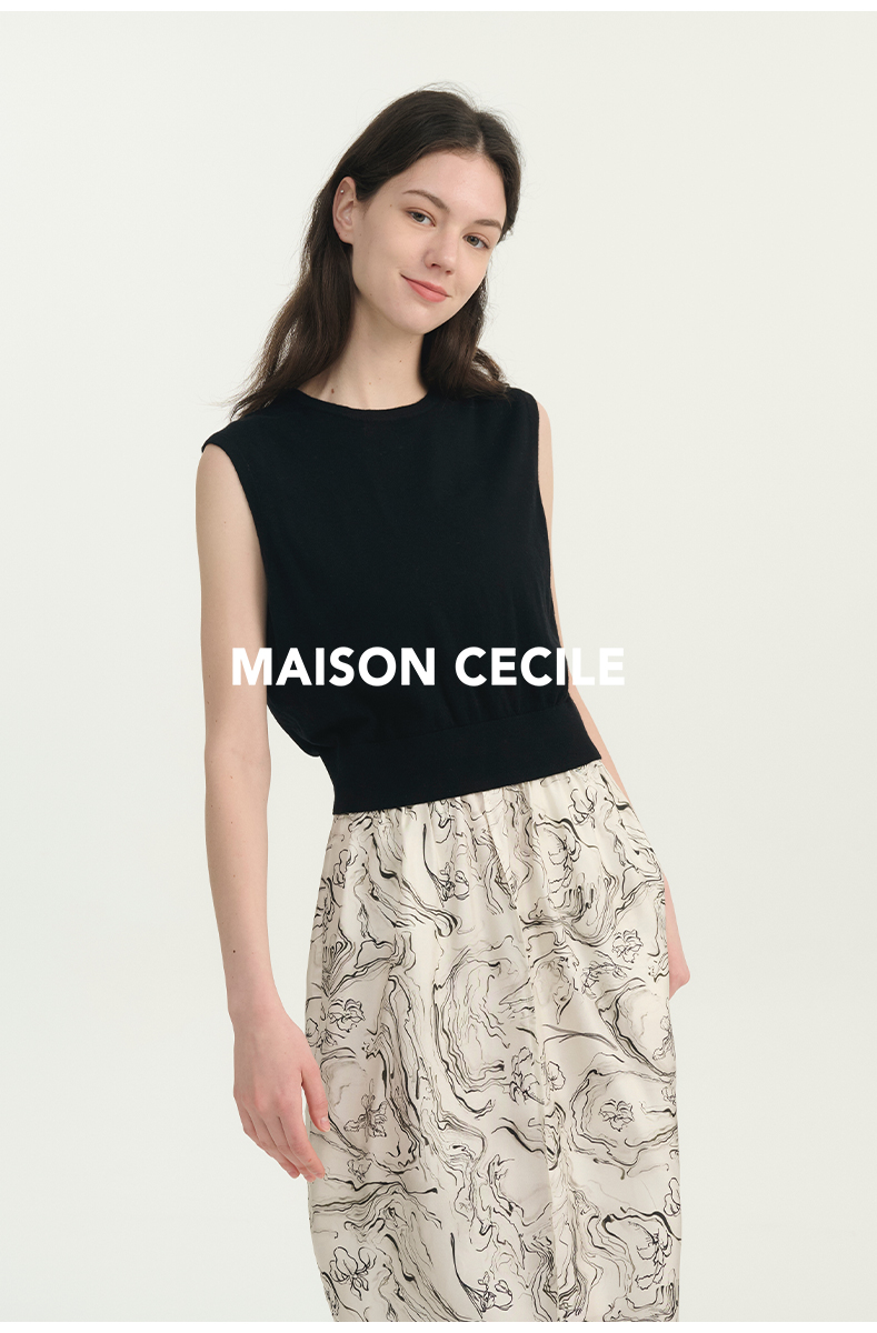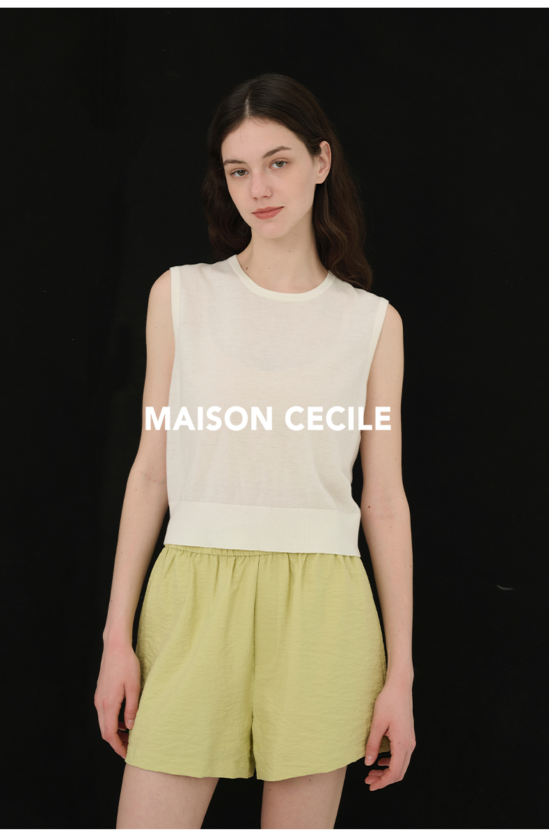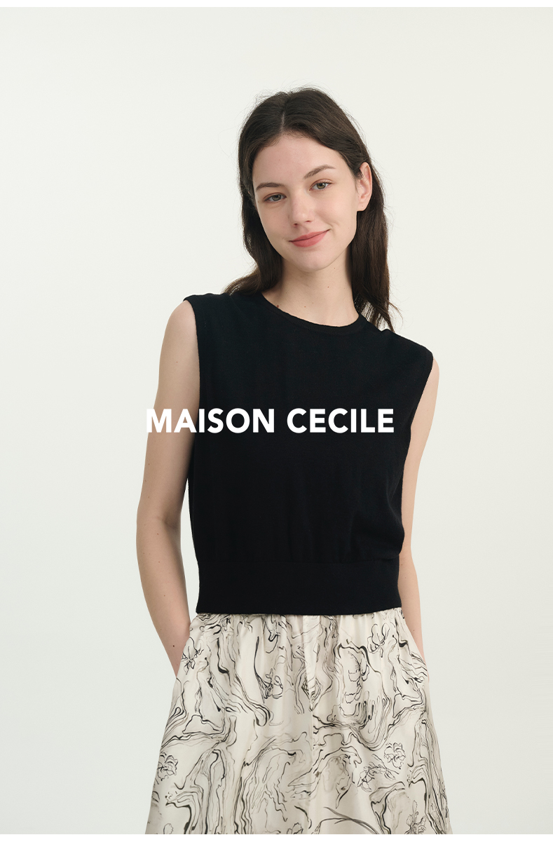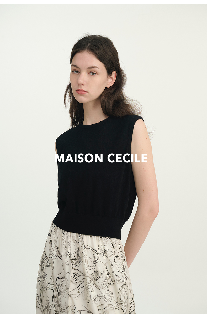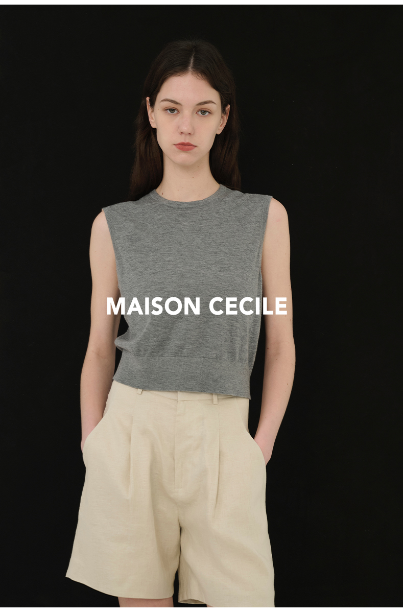 MAISON CECILE必入款/百搭三色真丝羊毛显比例针织背心