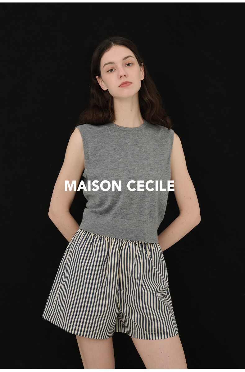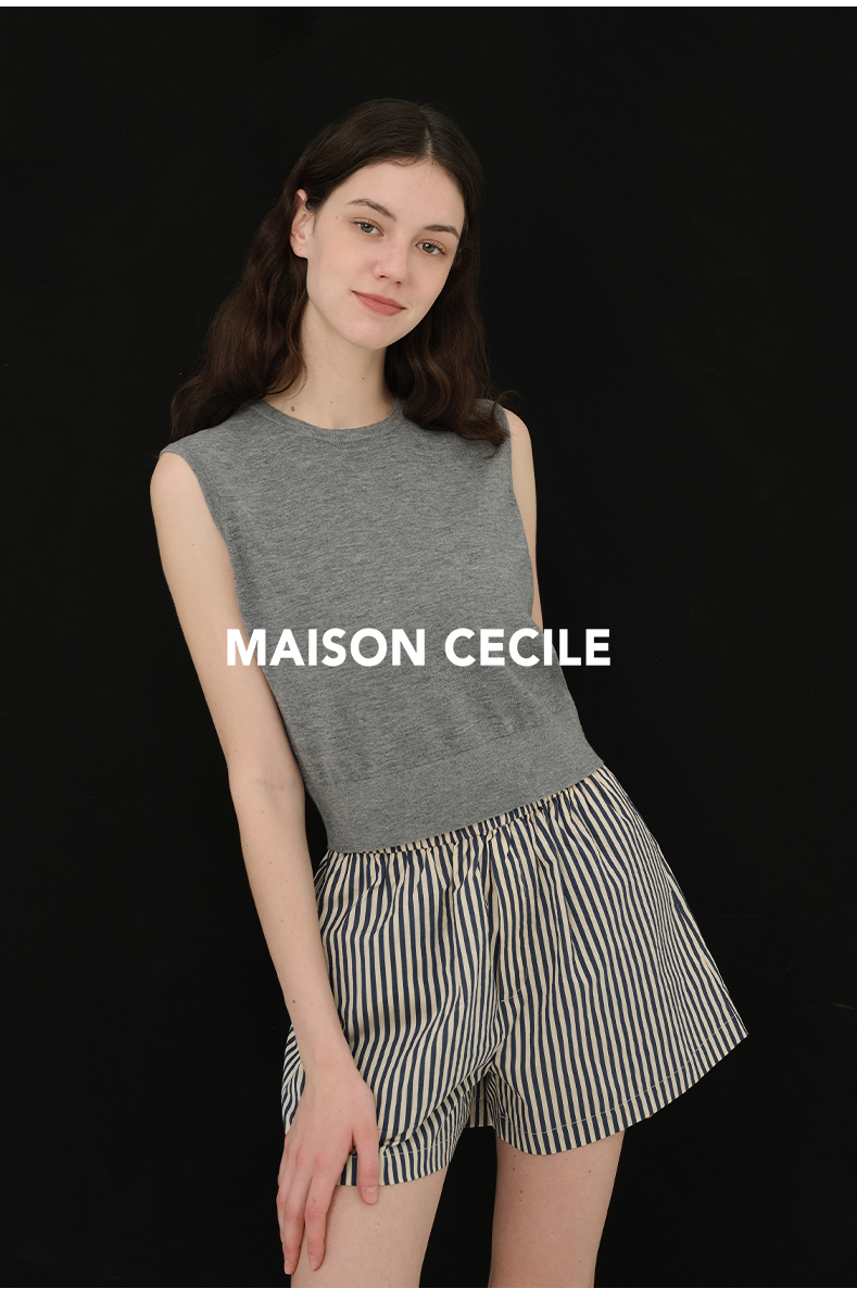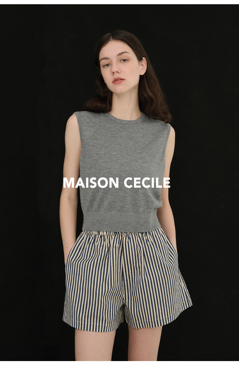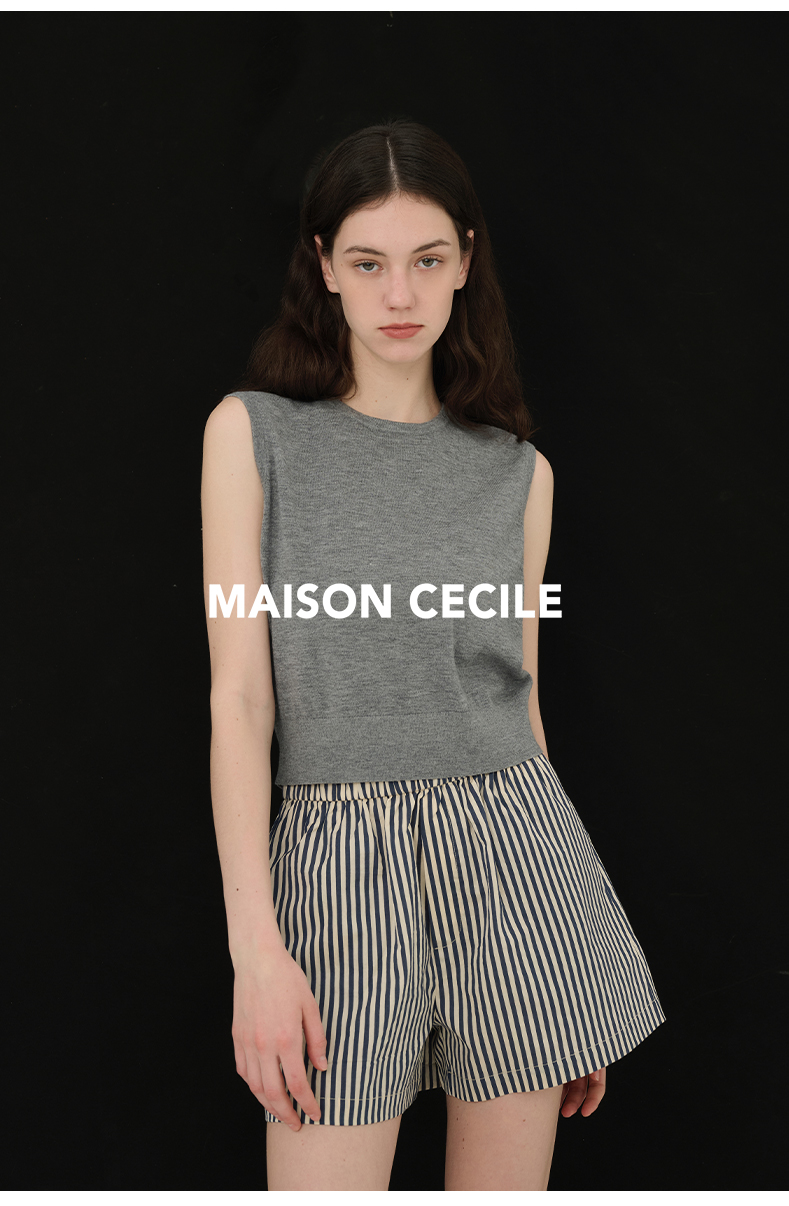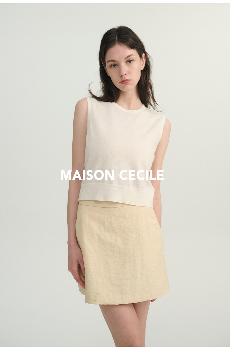 MAISON CECILE必入款/百搭三色真丝羊毛显比例针织背心