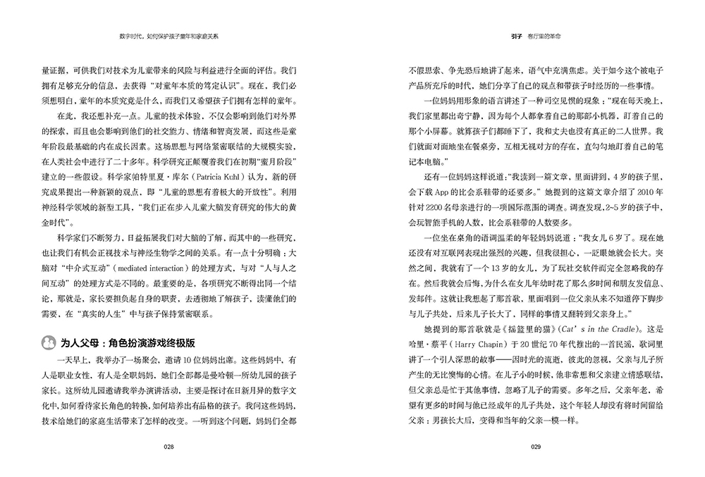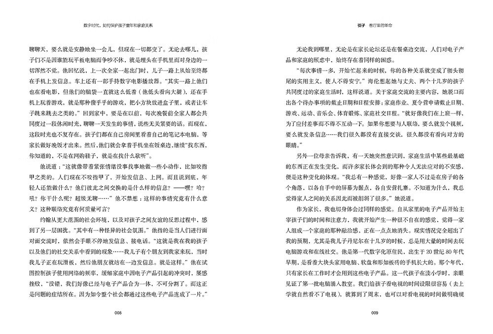 作者访谈了来自美国各地的1000多名儿童,旨在揭晓一个包括父母在内的所有人都无时无刻不沉迷于数字技术的家庭对孩子的成长所造成的影响。