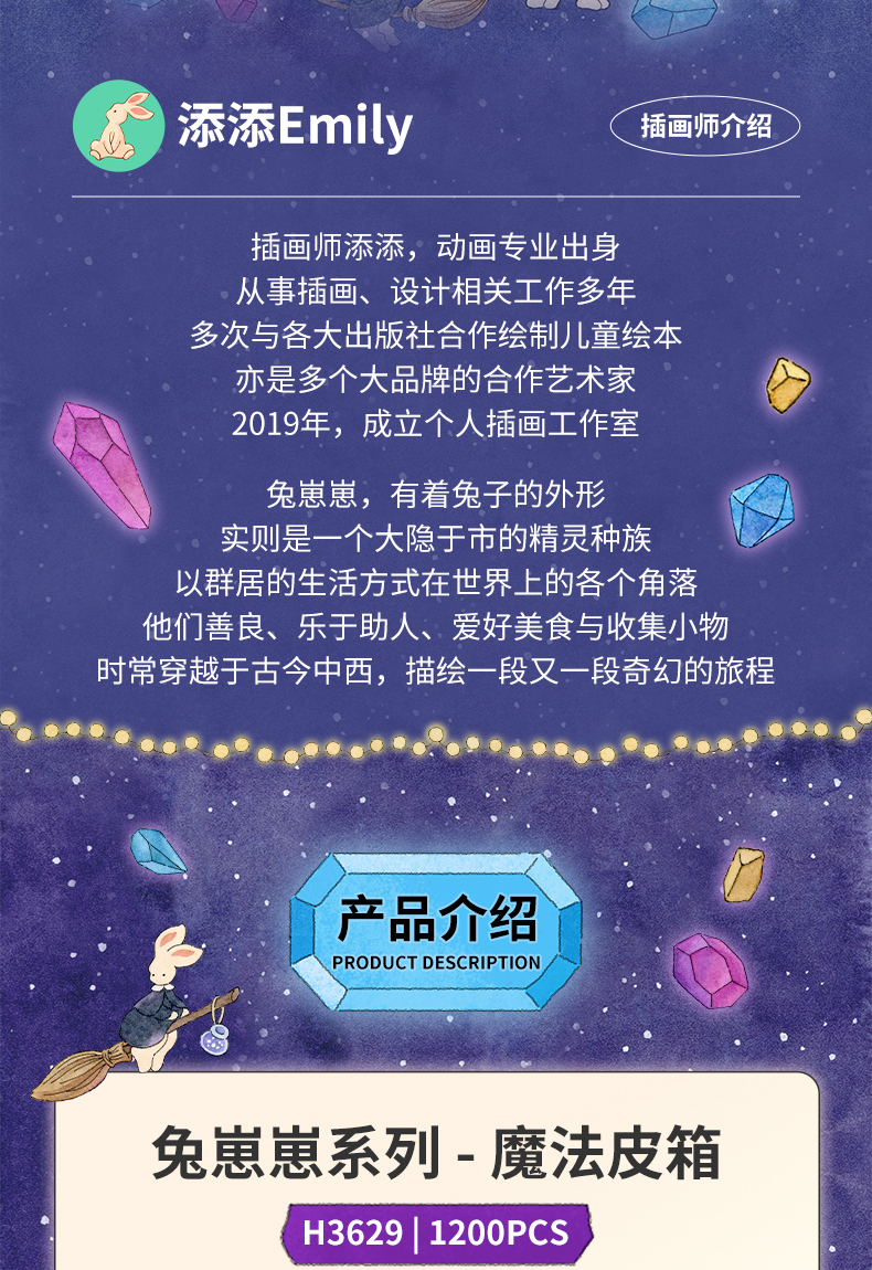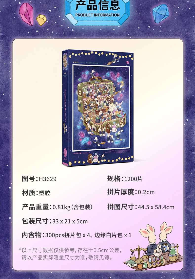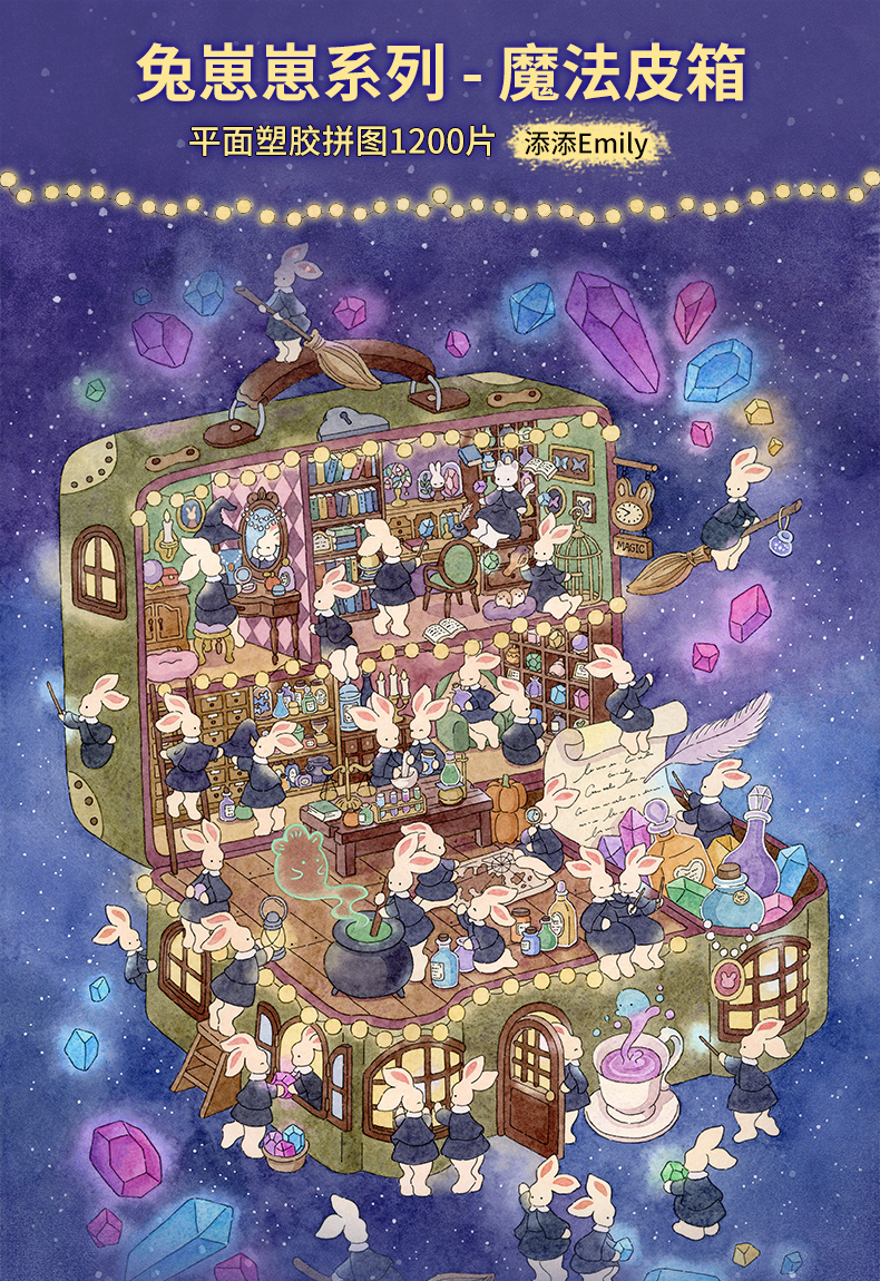 【折扣商品 不退不换】1200片 平面塑料拼图 H3629 添添Emily-兔崽崽系列-魔法皮箱