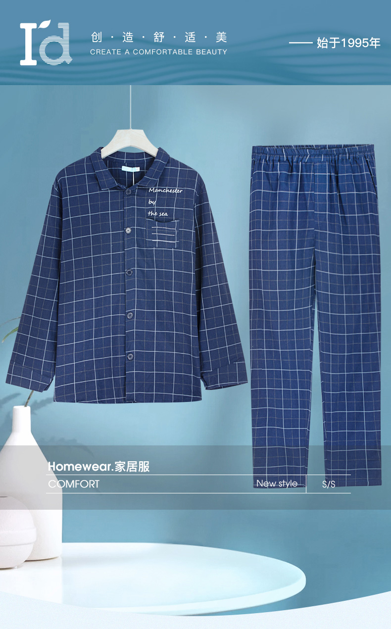 I'd爱帝男士梭织纯棉长袖睡衣刺绣字母居家服套装