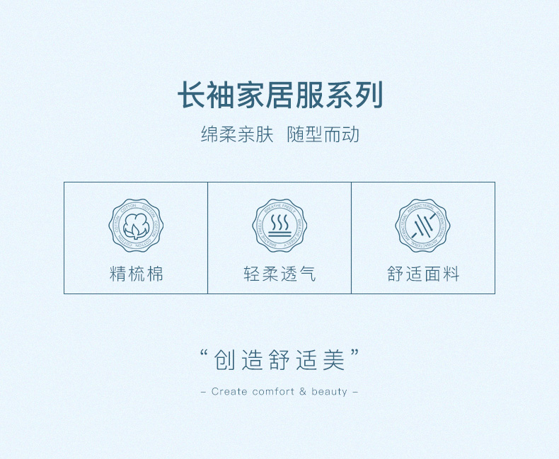 I'd爱帝女士针织纯棉休闲圆领长袖家居服