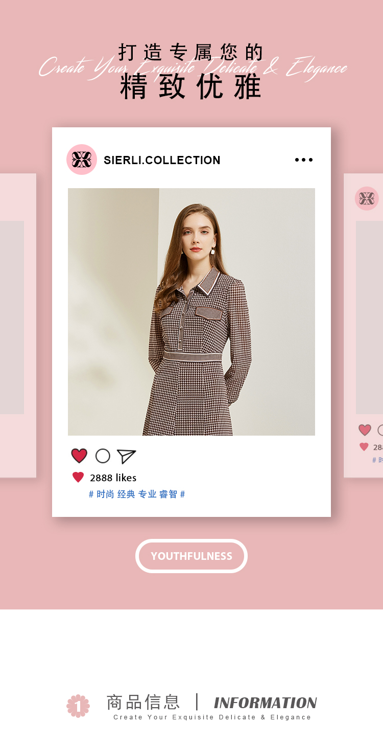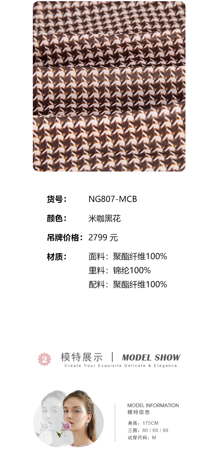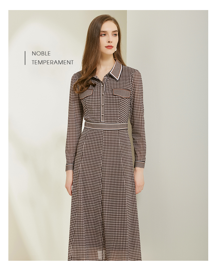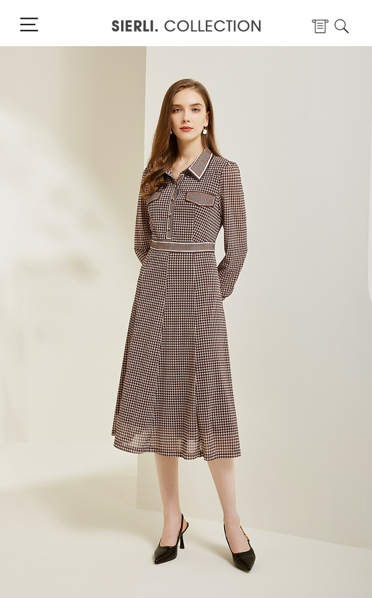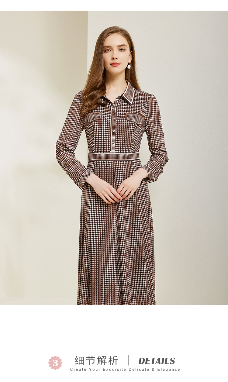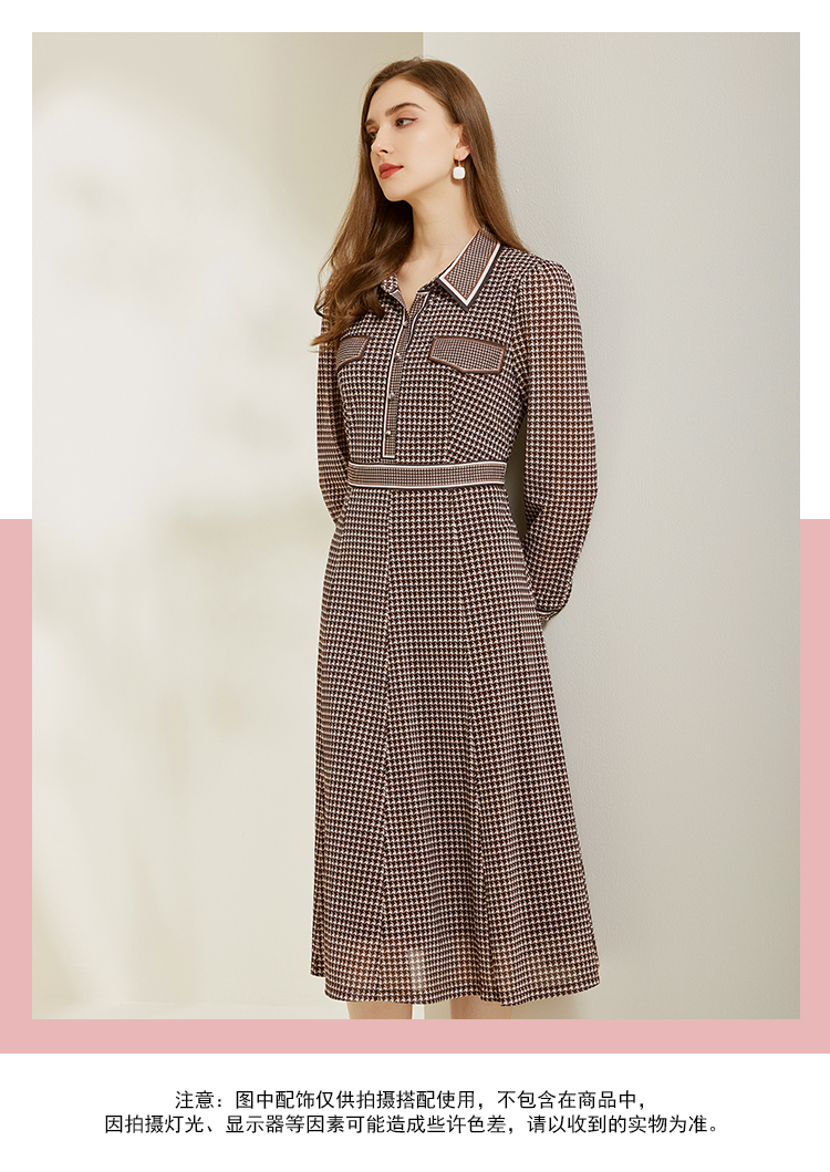 NG807斯尔丽瑟俪2023秋季新款定位弹力印花高腰节显瘦长袖A摆连衣裙