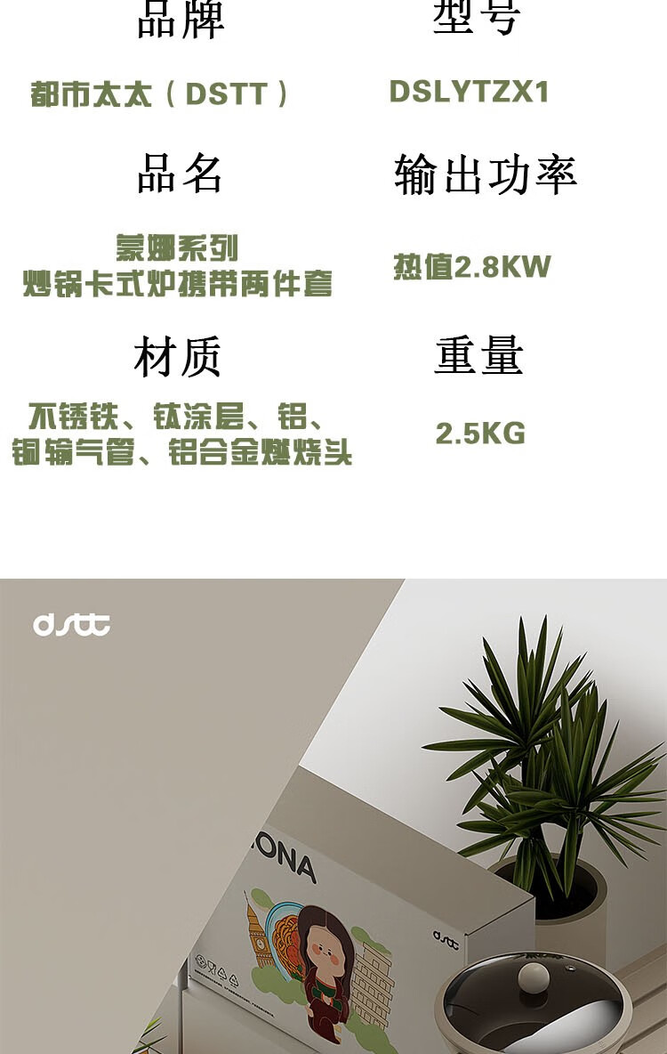 都市太太都市太太蒙娜系列炒锅卡式炉携带两件套户外野营便携式套装