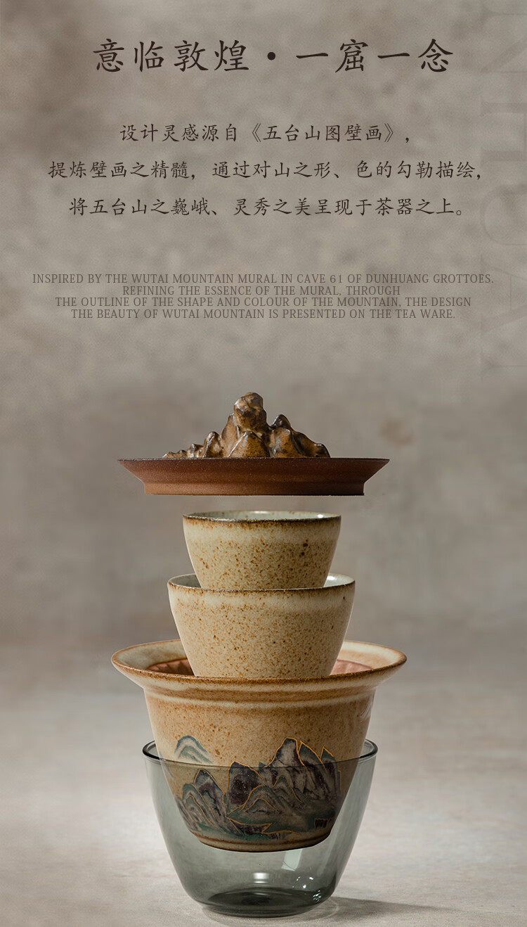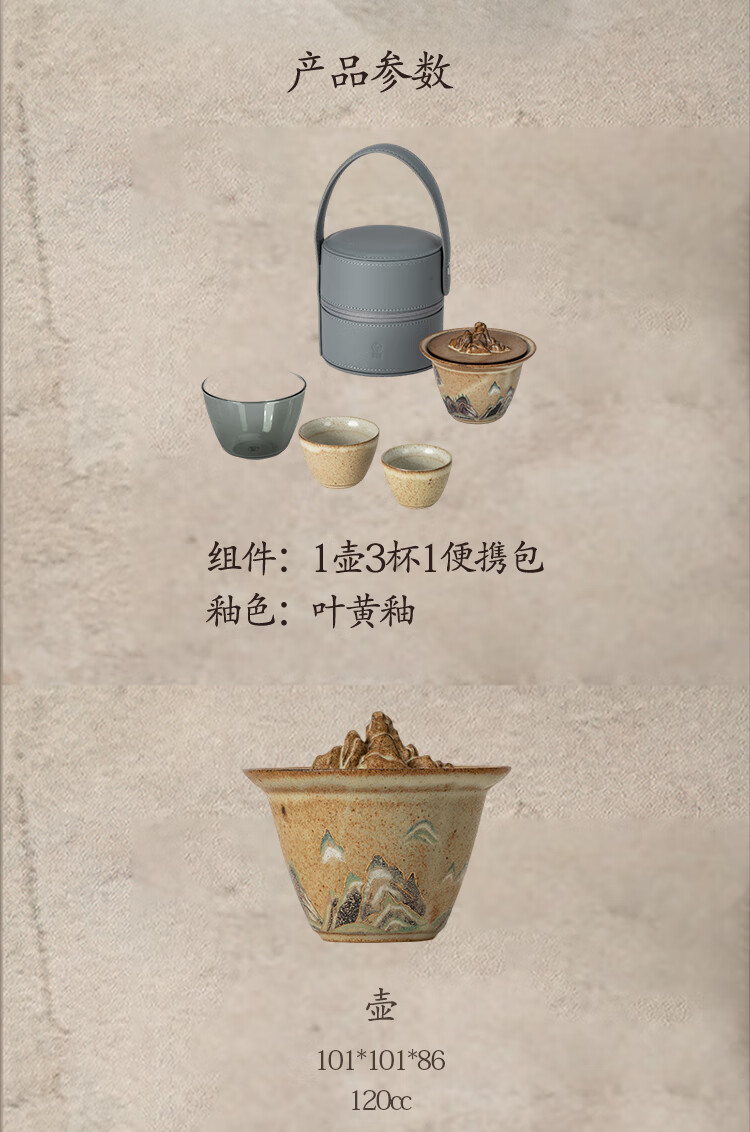 万仟堂(Edenus)旅行茶具套装 敦煌联名高档便携快客杯 越过山丘A 叶黄釉