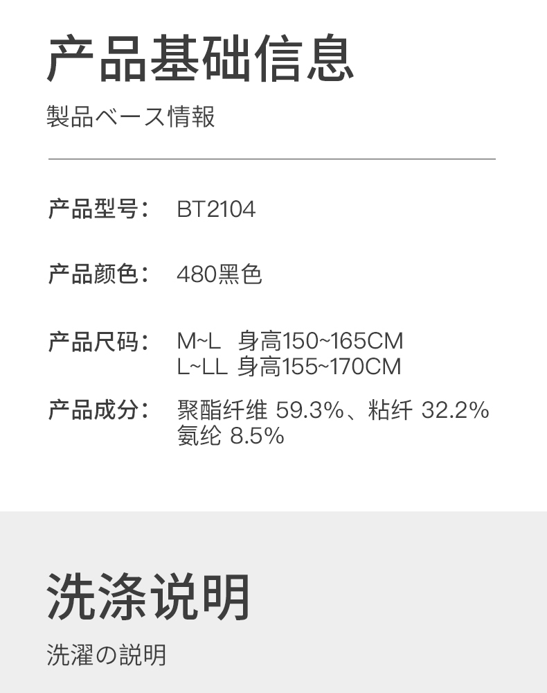 2. 身高 155-170 cm,臀围 90-103cm 的适合 LLL 号