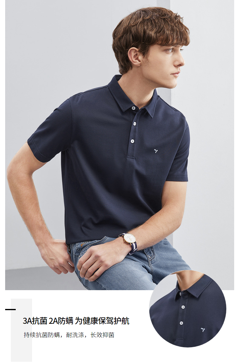 【3A抗菌/2A防螨】柒牌polo衫男短袖夏季薄款休闲商务多色翻领T恤124T72210