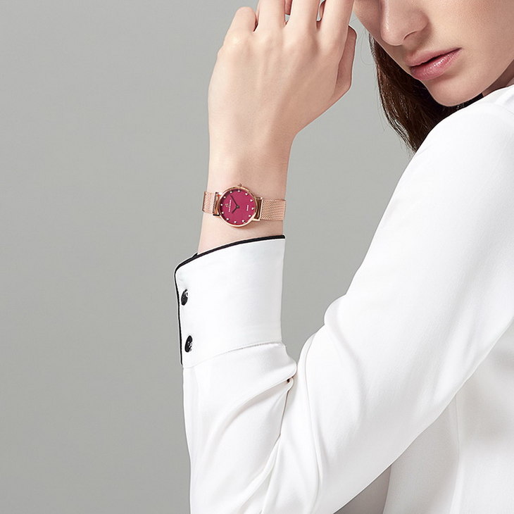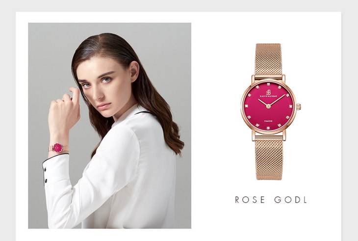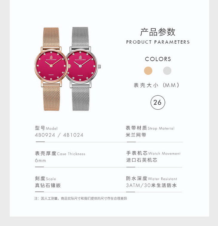 【一般贸易】4B(BLACK BY BLUE BRAVE)手表 红色小表盘钻石钢带石英女士手表-4B0924-玫瑰金色