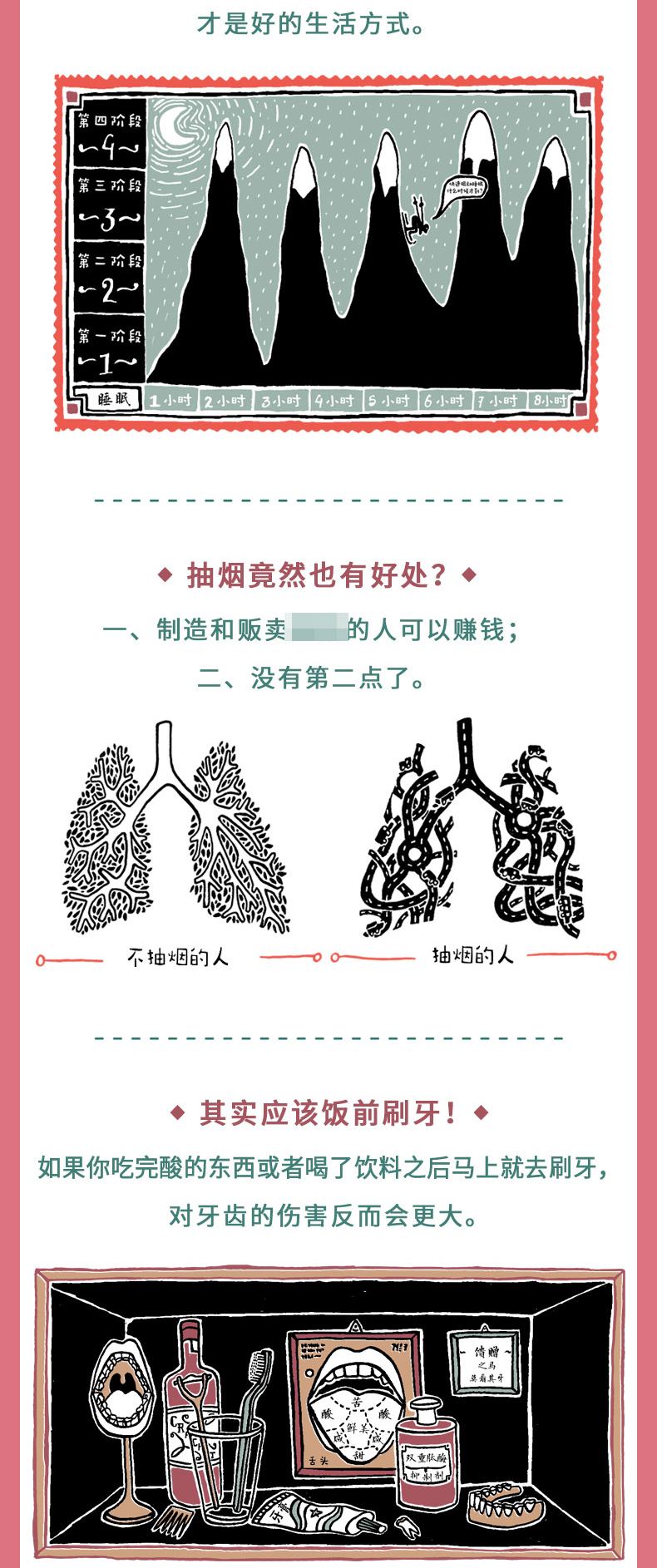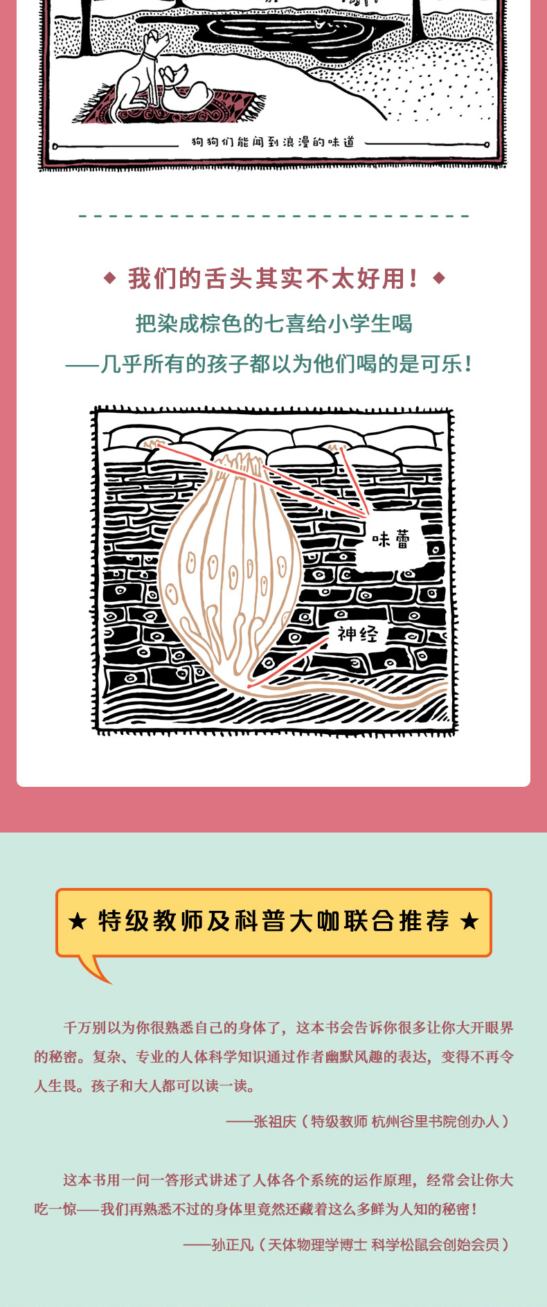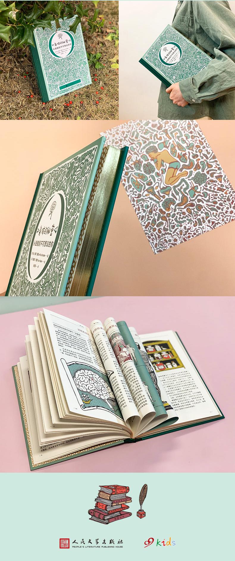 科学碰撞美学的另类科普书!10大主题近200个人体科学命题,超过130幅与众不同的艺术插图。带你走进自己的细胞,探索不可思议的身体秘密!你知道自己身体里有多少块骨头和多少个脑细胞吗?你知道你肚子里住着上万亿个居民吗?你知道有人可以吃掉18辆自行车、15辆超市购物车、8台电视机和3个坐便器吗?你知道一位医生用汽车加肠衣再加轰炸机制造出一个人工肾脏吗?……为什么高兴的事情很快会被忘记,难受的经历却总能记得?为什么你一到晚上就会犯困?为什么测谎仪能辨别谎言?为什么伤口流血会自己止住?为什么运动可以降低你得心脏病的概率?为什么洗澡时间太长的话,你手指上面的皮肤会皱起来?为什么耳朵可以听到一根细针落地的声音?……你的身体里多的是你不知道的秘密!读一读这本书吧!了解一下你的身体各个部分的组合是多么奇妙。你能够出生在这个世界上本身就是一个奇迹,能够继续健康长大,就更加神奇了!