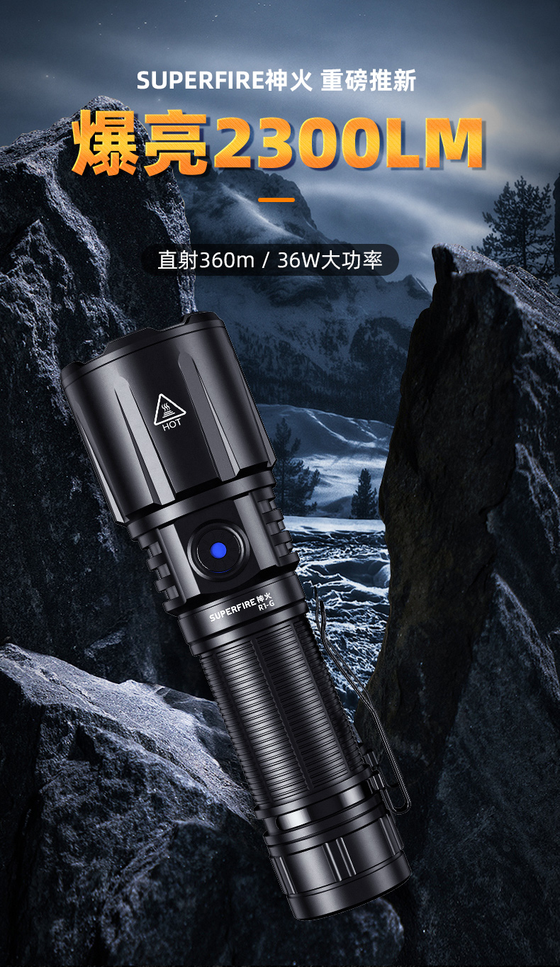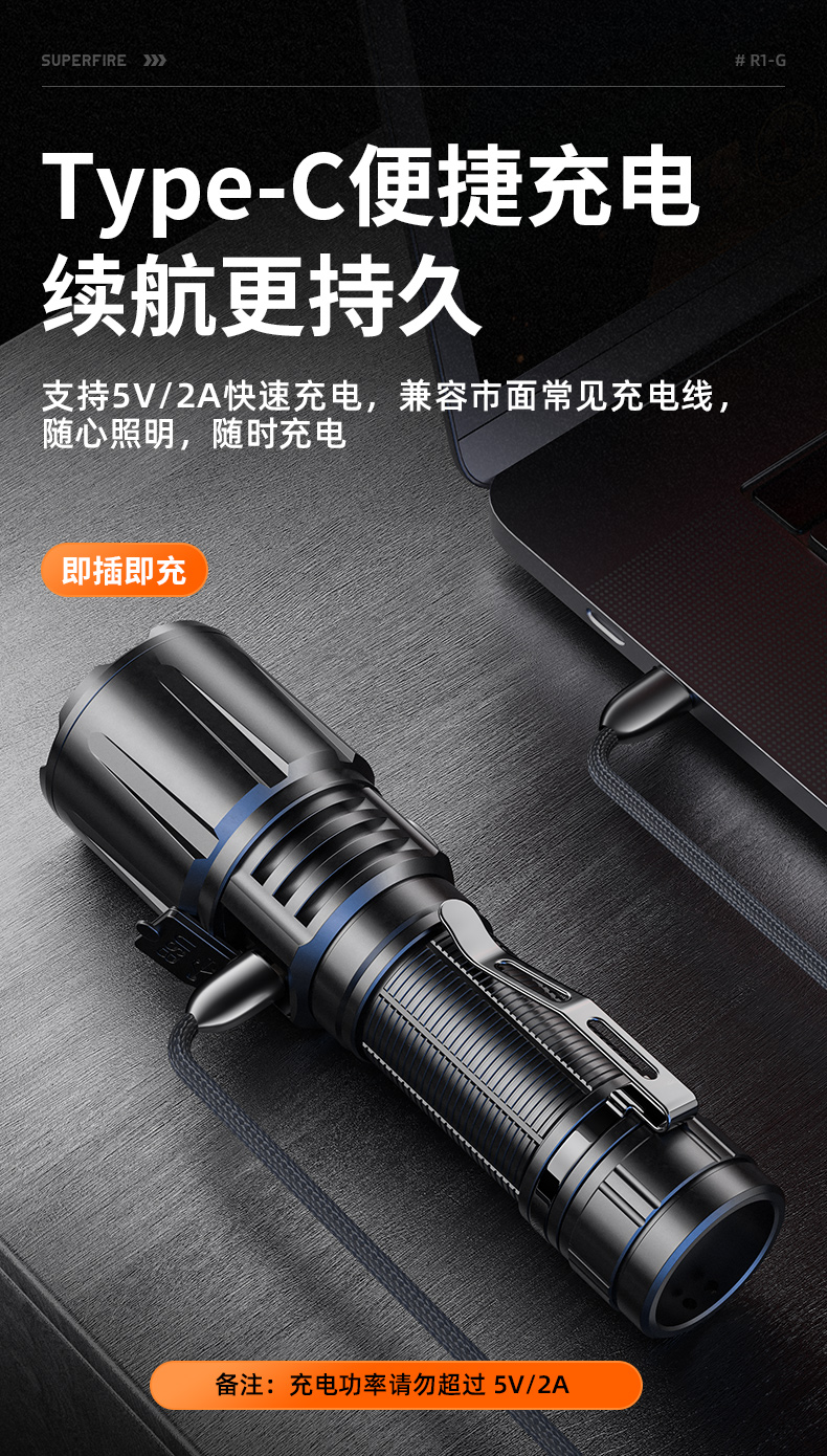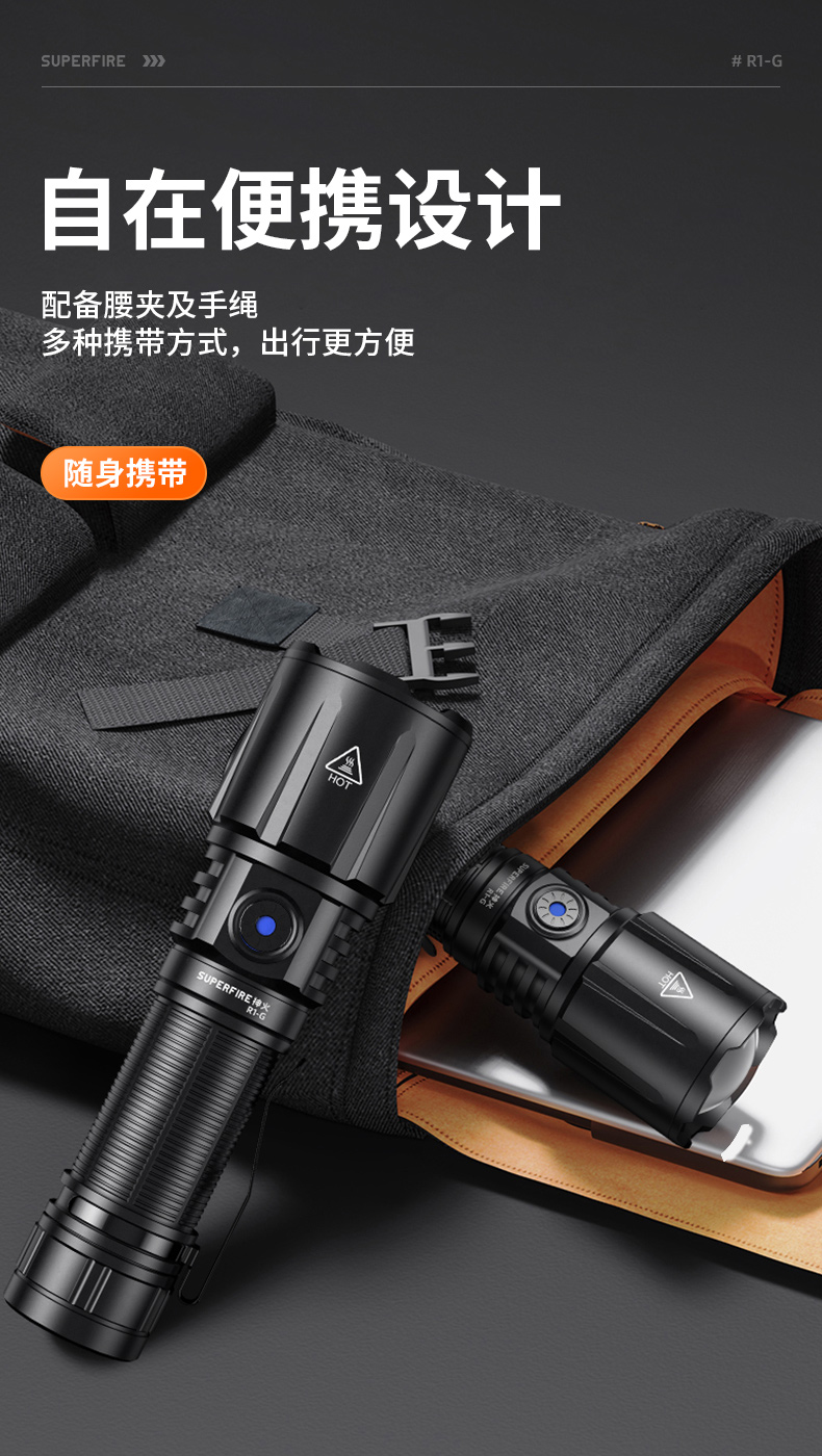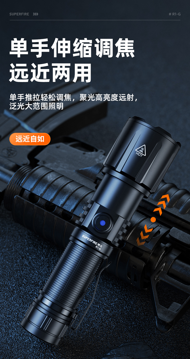 SUPERFIRE神火R1-G手电筒伸缩调焦强光远射长续航36W大功率户外日常家用手电