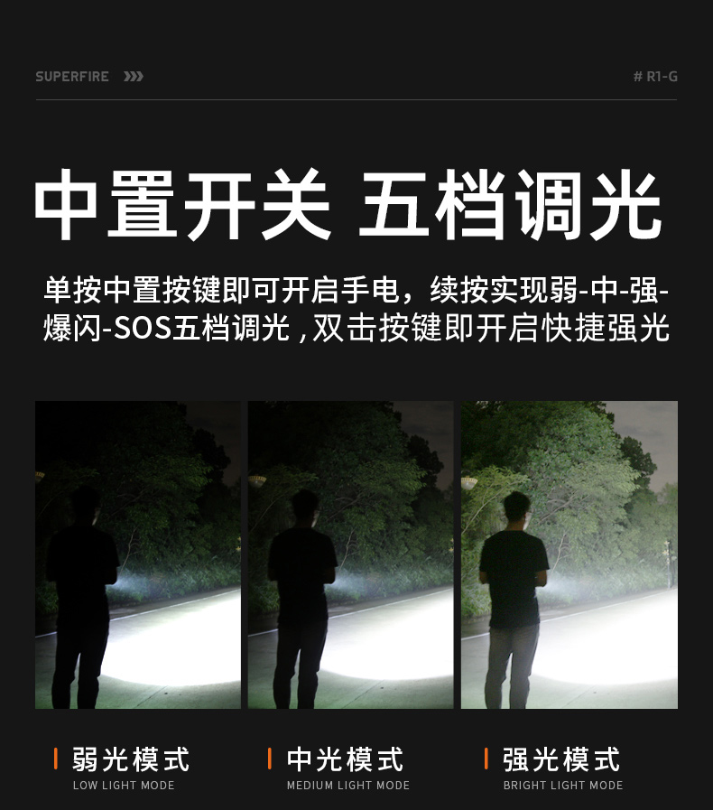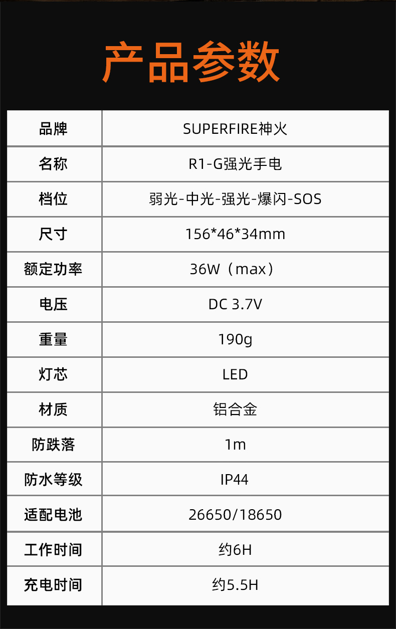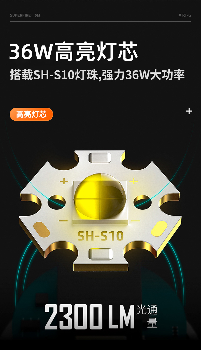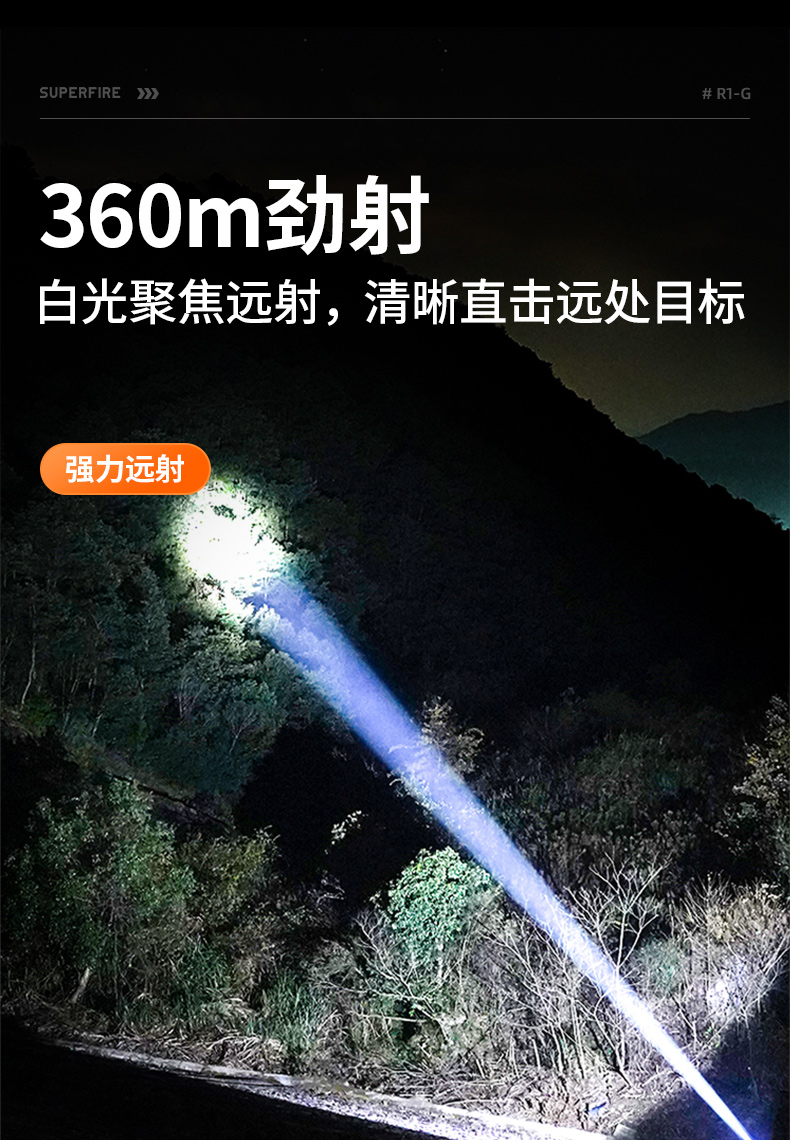 SUPERFIRE神火R1-G手电筒伸缩调焦强光远射长续航36W大功率户外日常家用手电