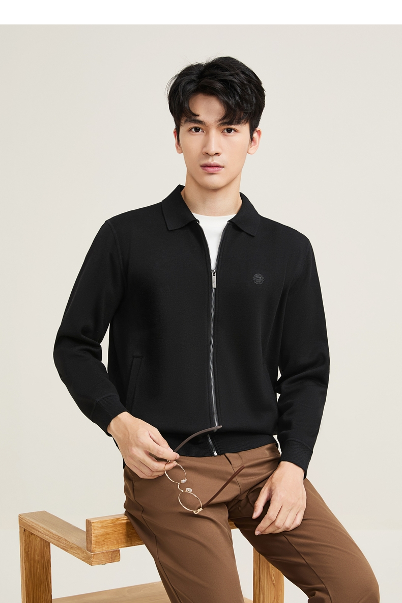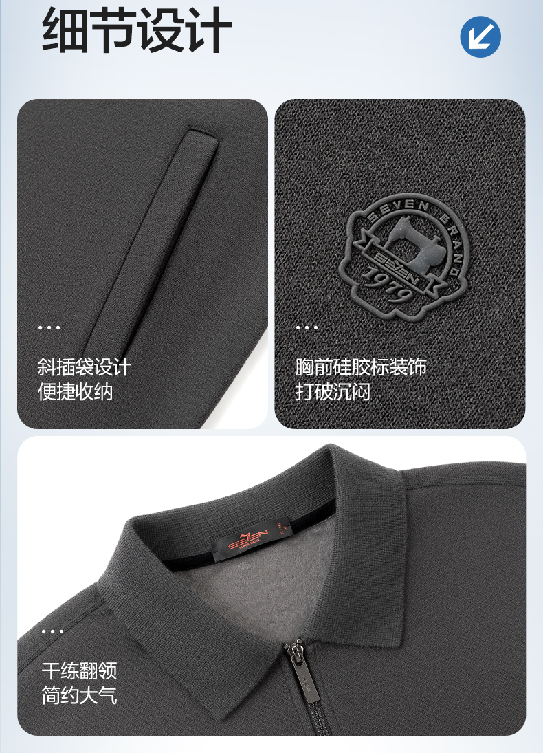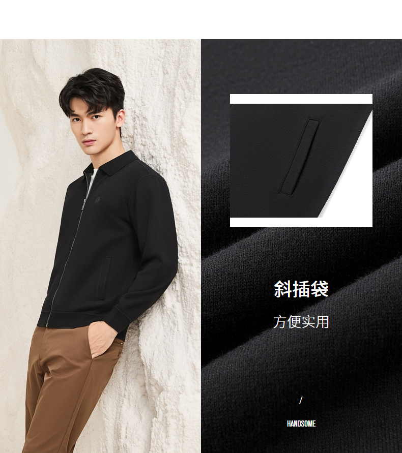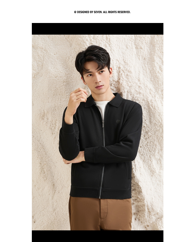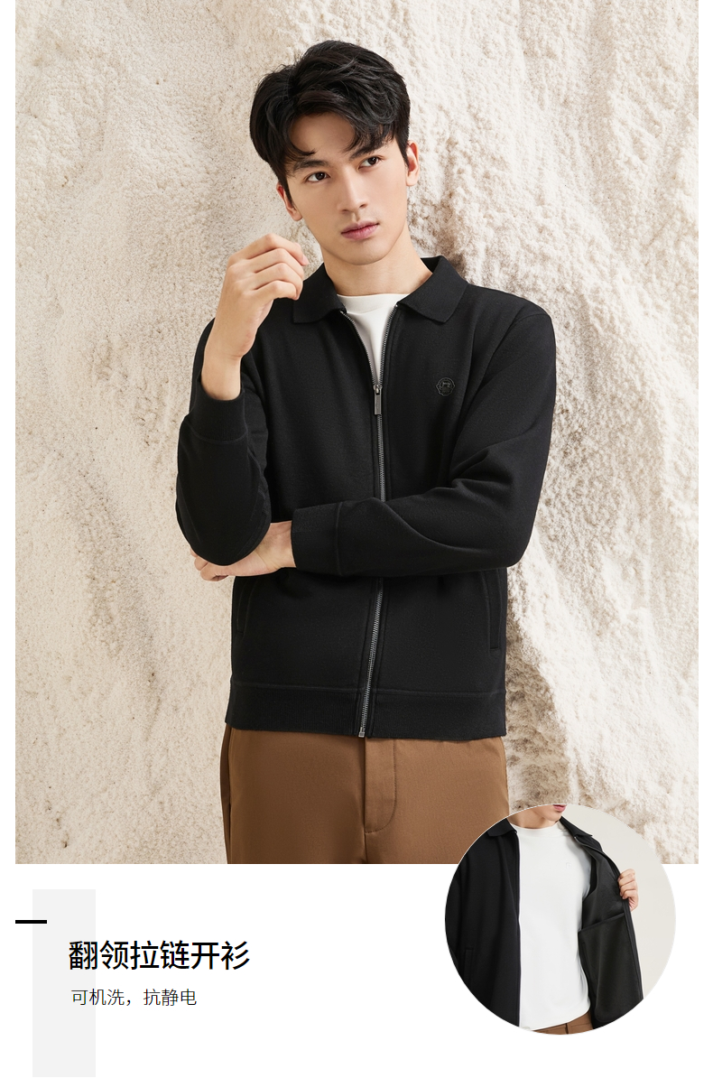 【含羊毛/加绒/可机洗/抗静电】柒牌男士翻领针织衫加绒保暖男装129Y70090