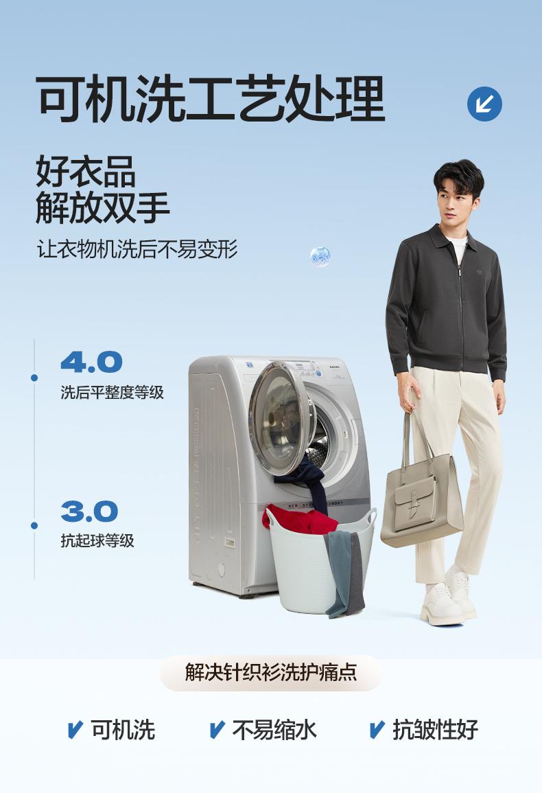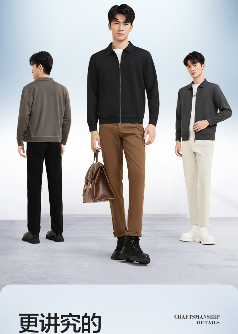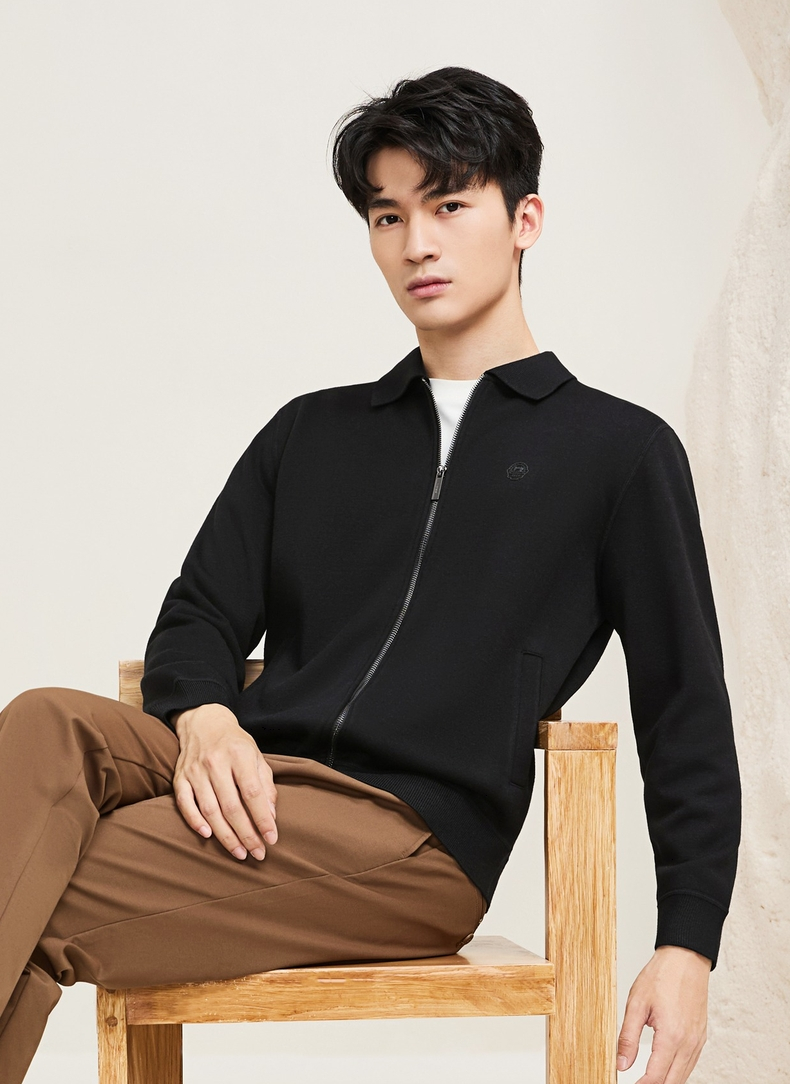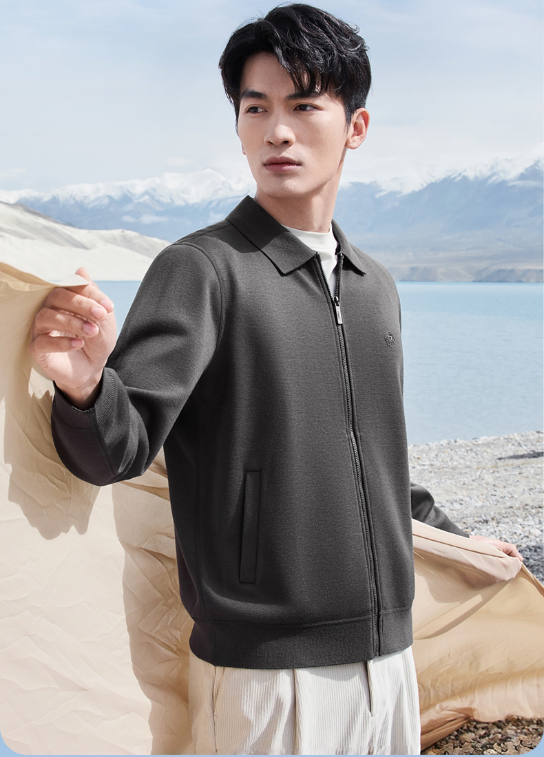 【含羊毛/加绒/可机洗/抗静电】柒牌男士翻领针织衫加绒保暖男装129Y70090