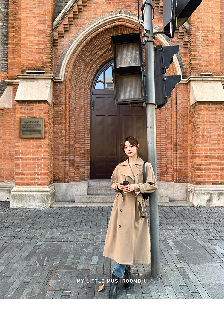 金蘑菇菇 rosebay中央区日落后 / 休闲经典卡其英伦风中长款风衣