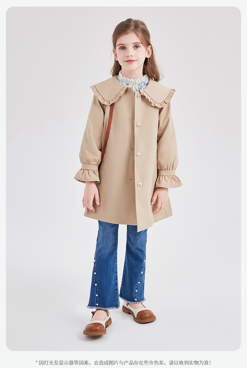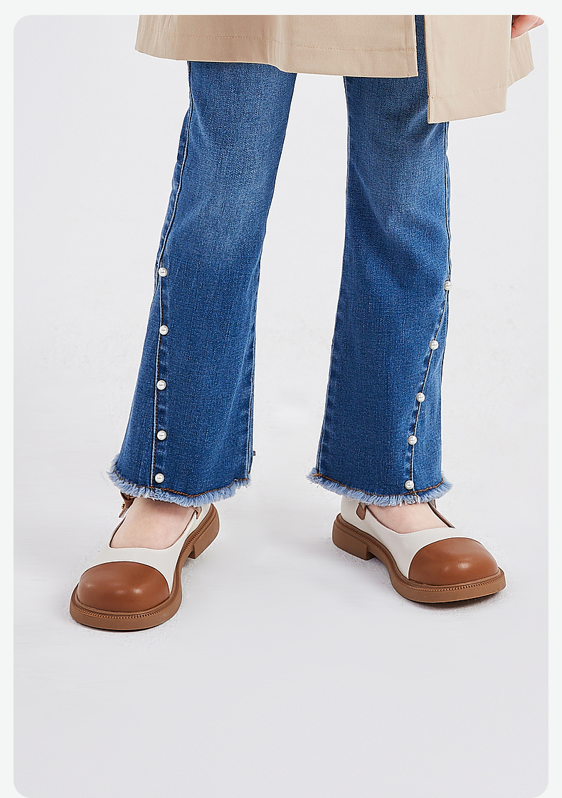 笛莎Deesha 童装女童裤子2026春新款翻边牛仔阔腿裤