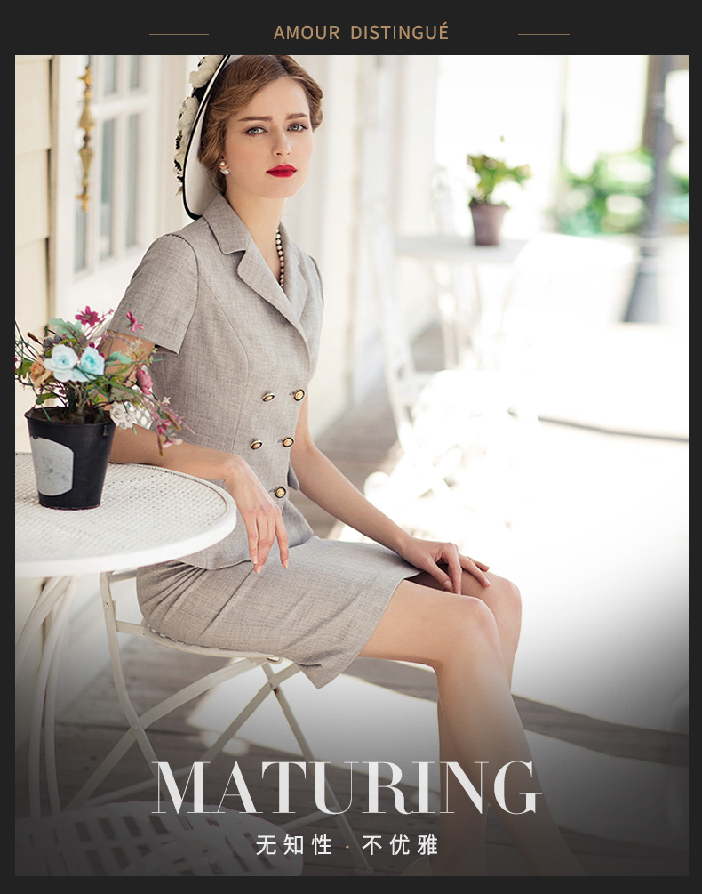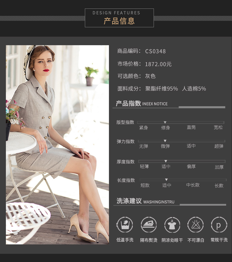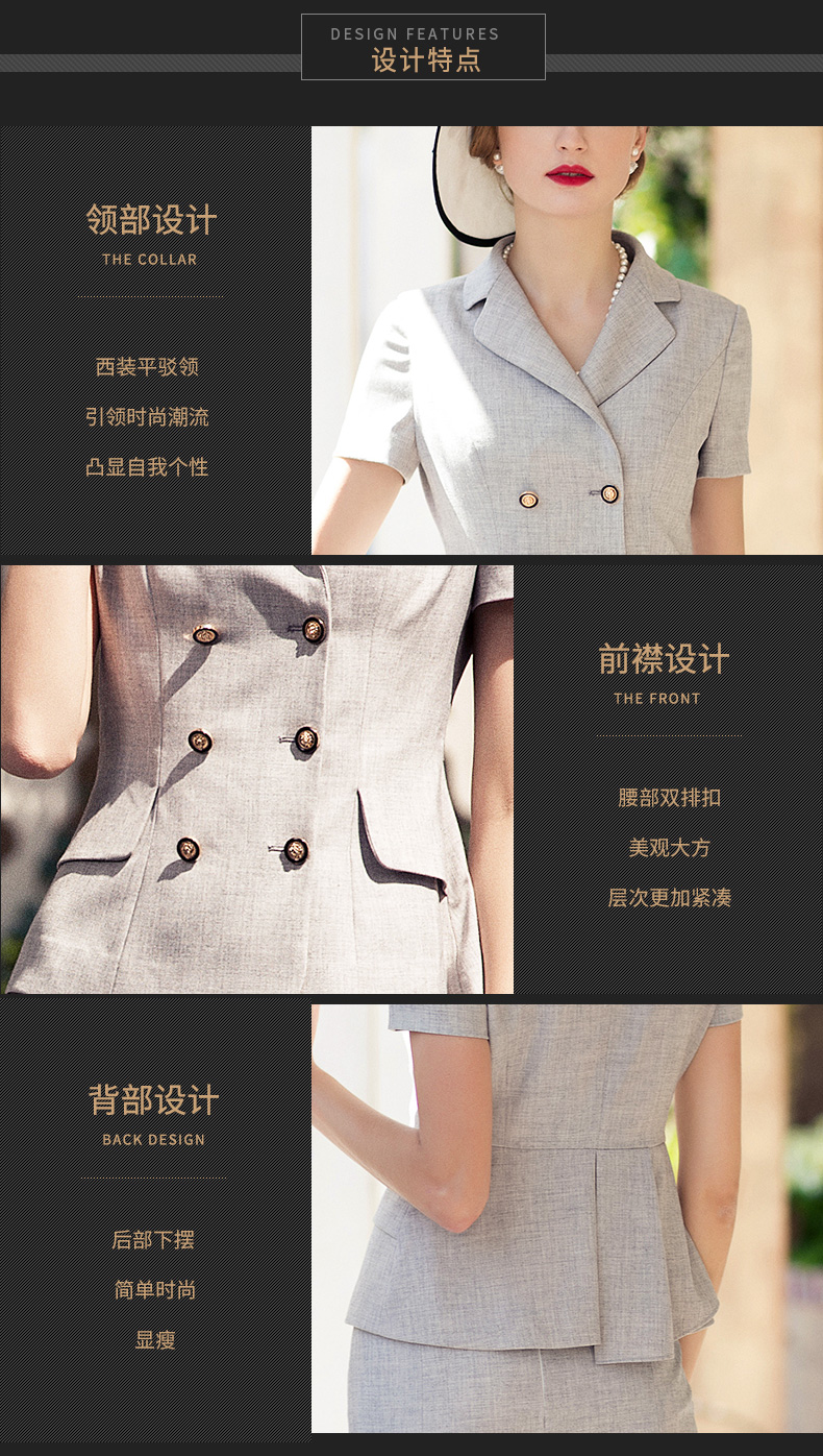 IWY/灰色双排扣短袖西装套装职业装女装时尚正装套裙OL工作服CS0348