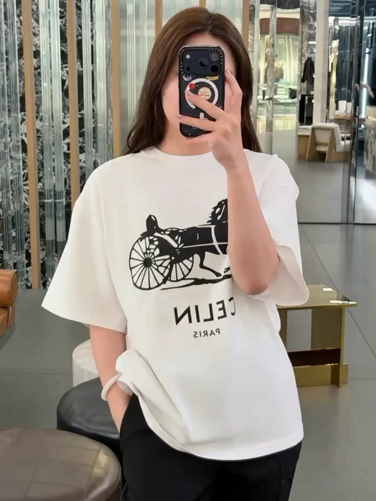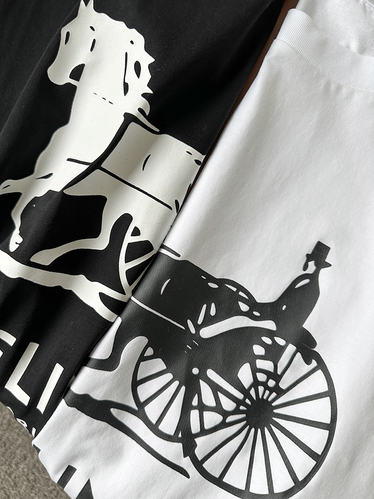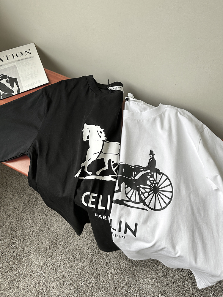 THS-限时 塞琳家 经典马车 logo印花 圆领短袖T恤2色 QH469