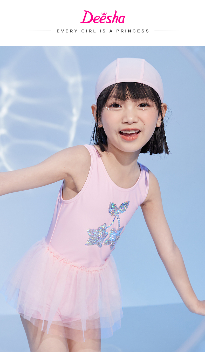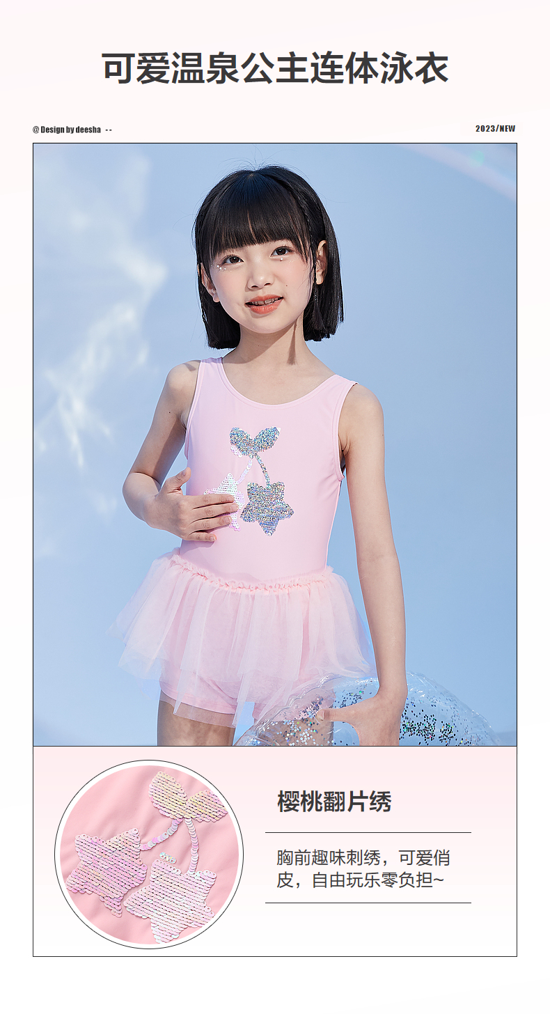 笛莎官方童装女童泳装2023年夏装中大童儿童可爱温泉公主连体泳衣