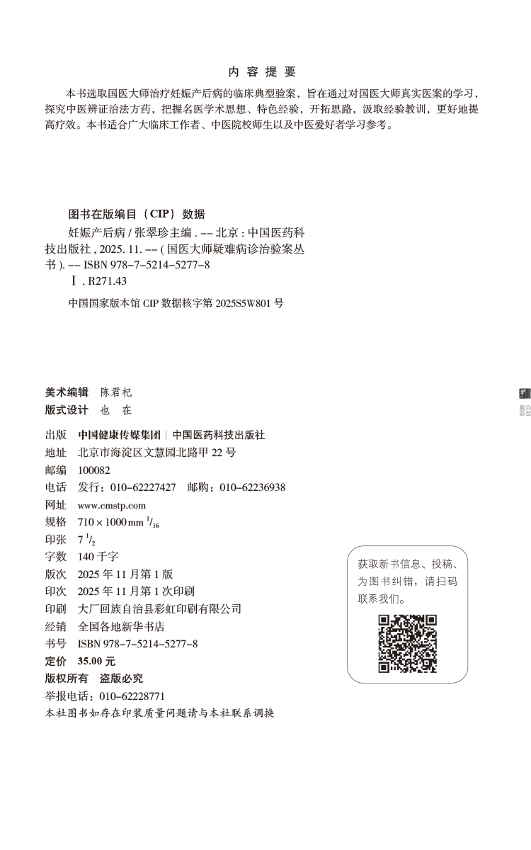 妊娠产后病(国医大师疑难病诊治验案丛书)张翠珍 适合广大临床工作者 中医院校师生以及中医爱好者学习参考 中国医药科技出版社