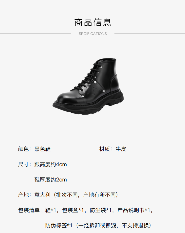 ALEXANDER MCQUEEN 亚历山大.麦昆 MCQ 男士牛皮Tread系带短靴及踝靴 604253WHZ80