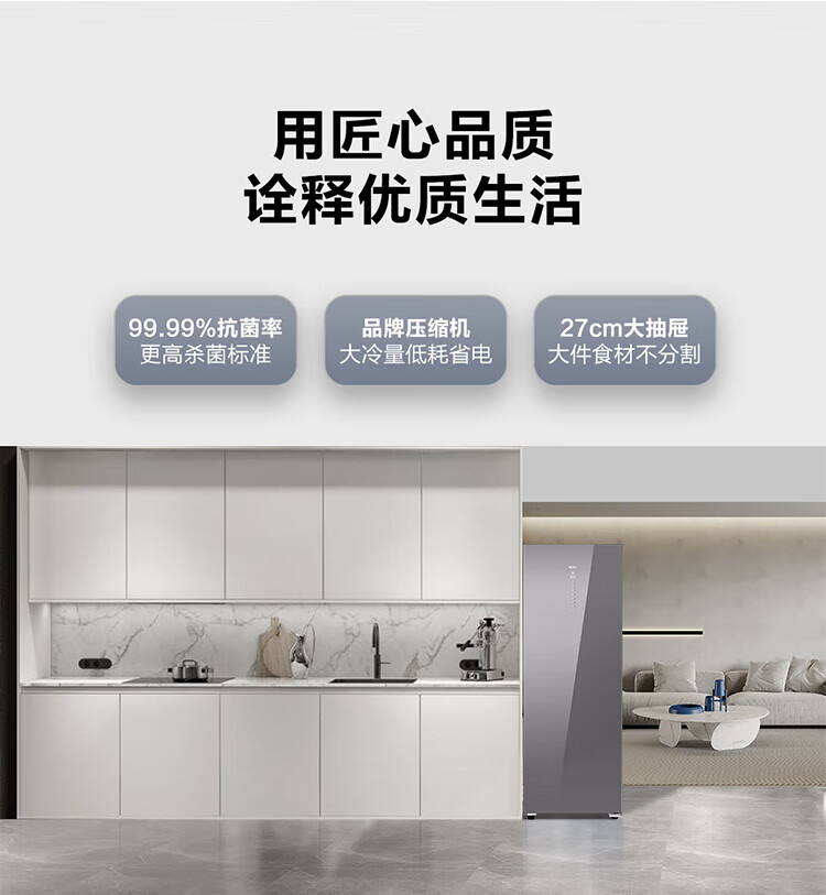 海尔(Haier)【零下40度】立式冰柜风冷无霜超低温抑菌冷藏冷冻切换一级能效抽屉式单门冰箱 【秘境银228升】 228WGHS1U1-智能物联 丨黑金抗菌净化