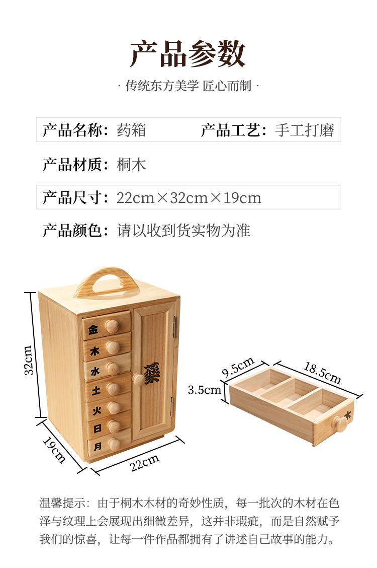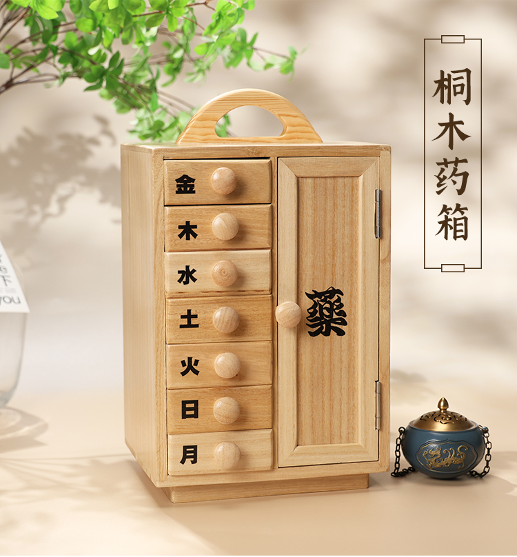 桐木手提柜实木箱子茶饼古典中式多层收纳药箱手饰桐木提篮