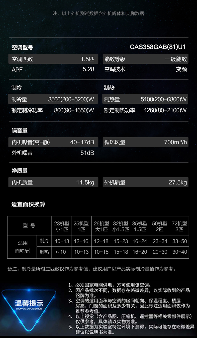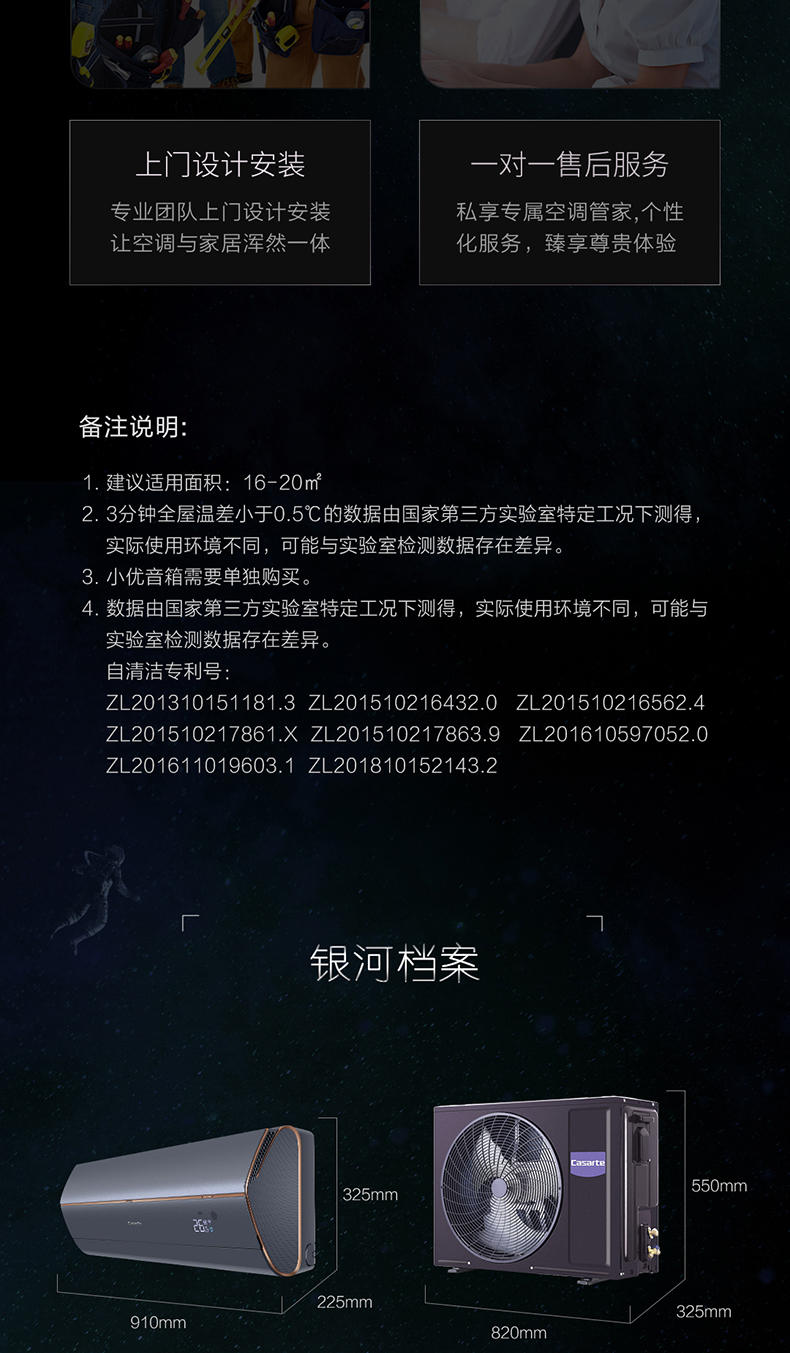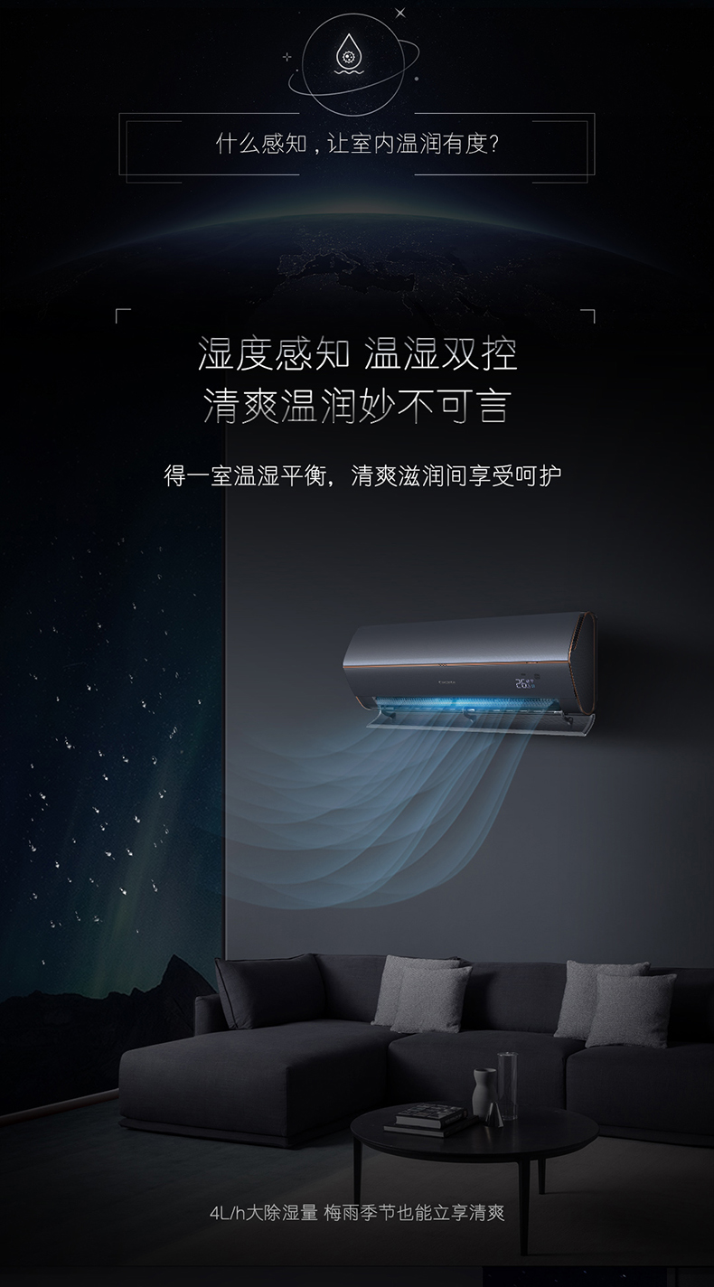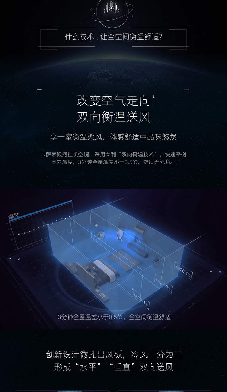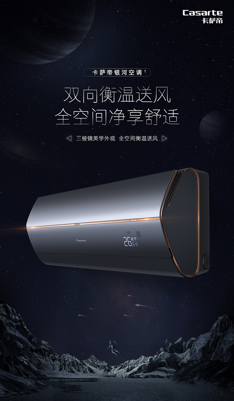 卡萨帝(Casarte)银河系列 空调挂机 全空间除菌 语音智控 双向恒温送风 三棱镜外观 【1.5匹】CAS358GAB(81)U1