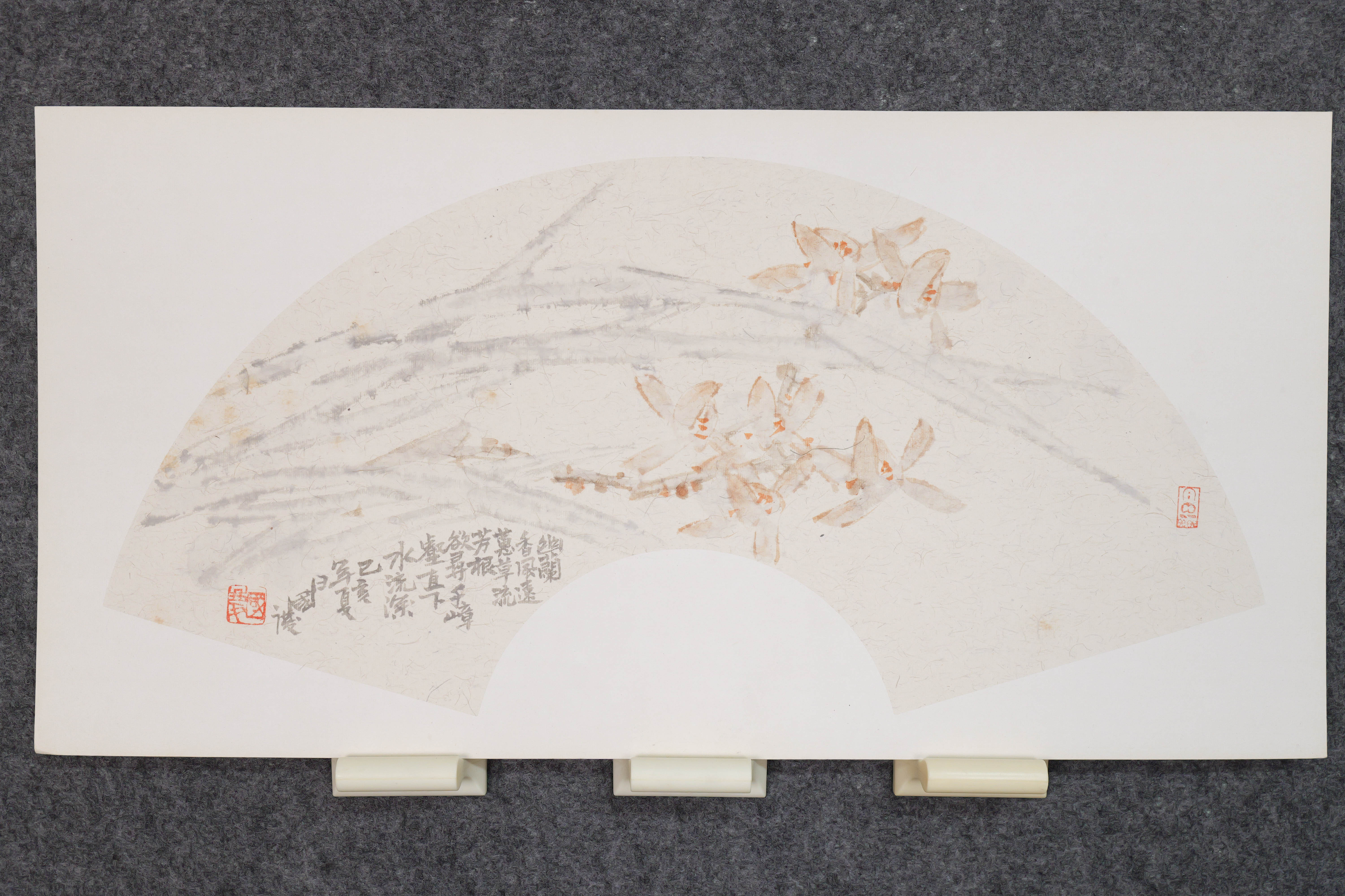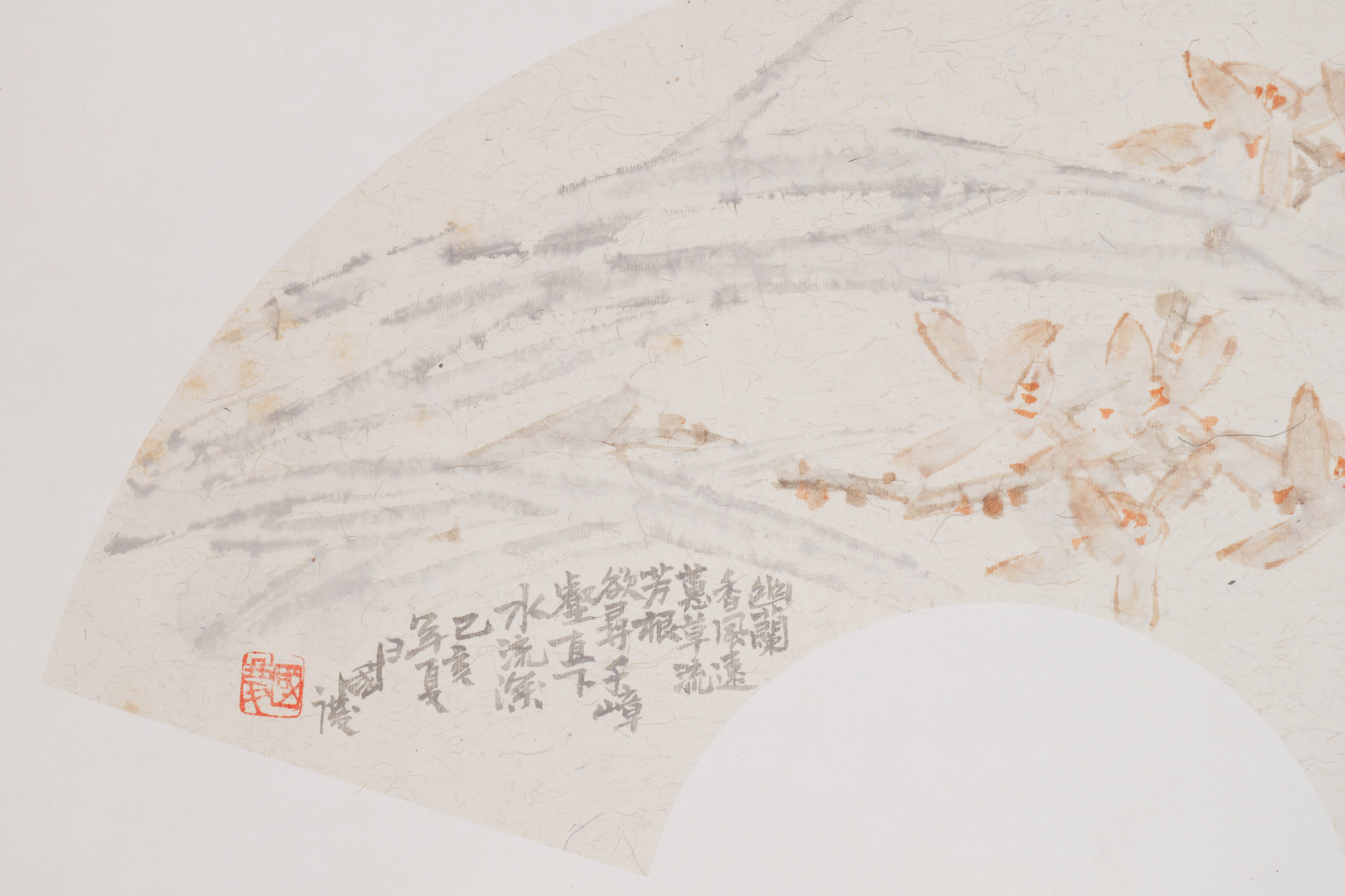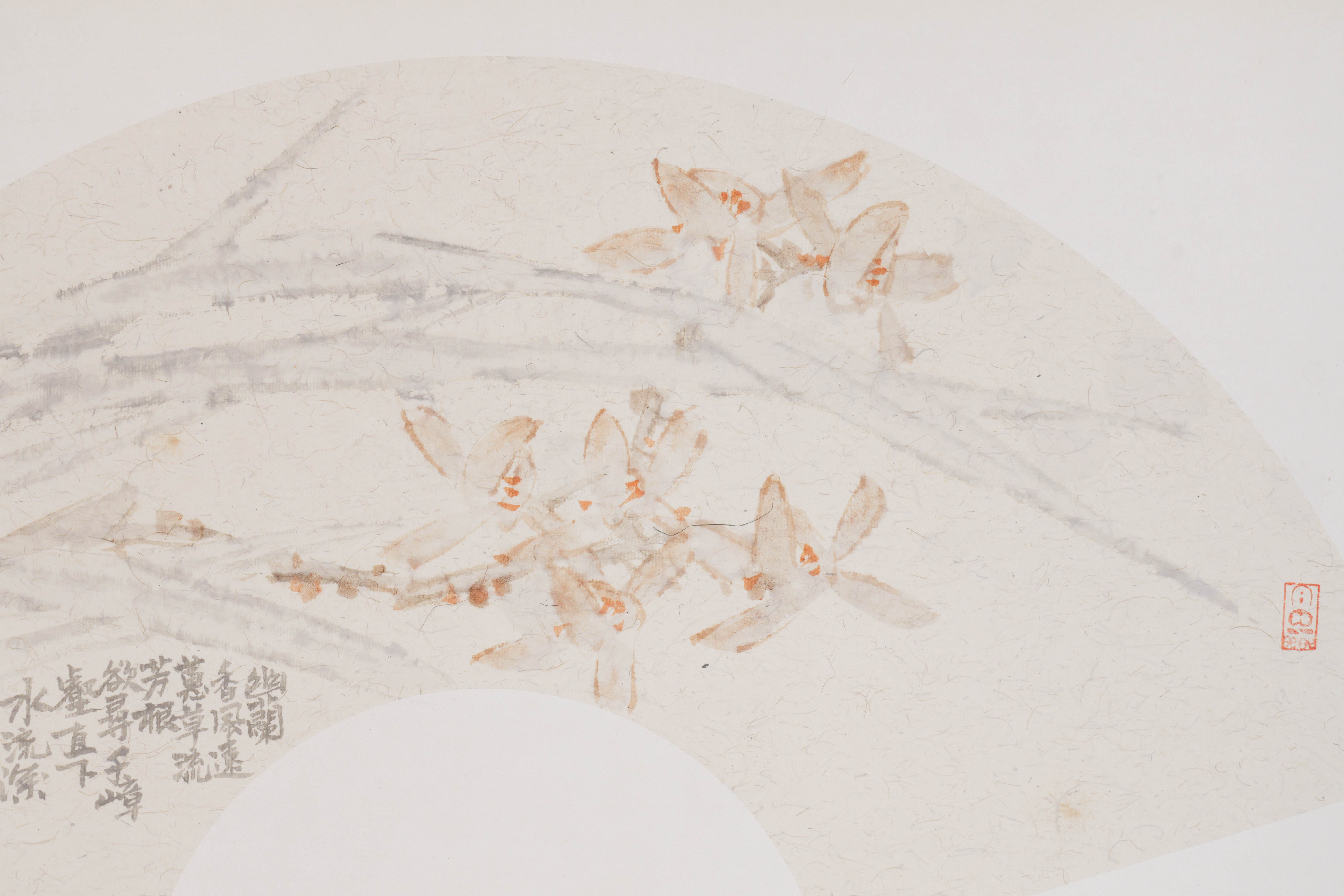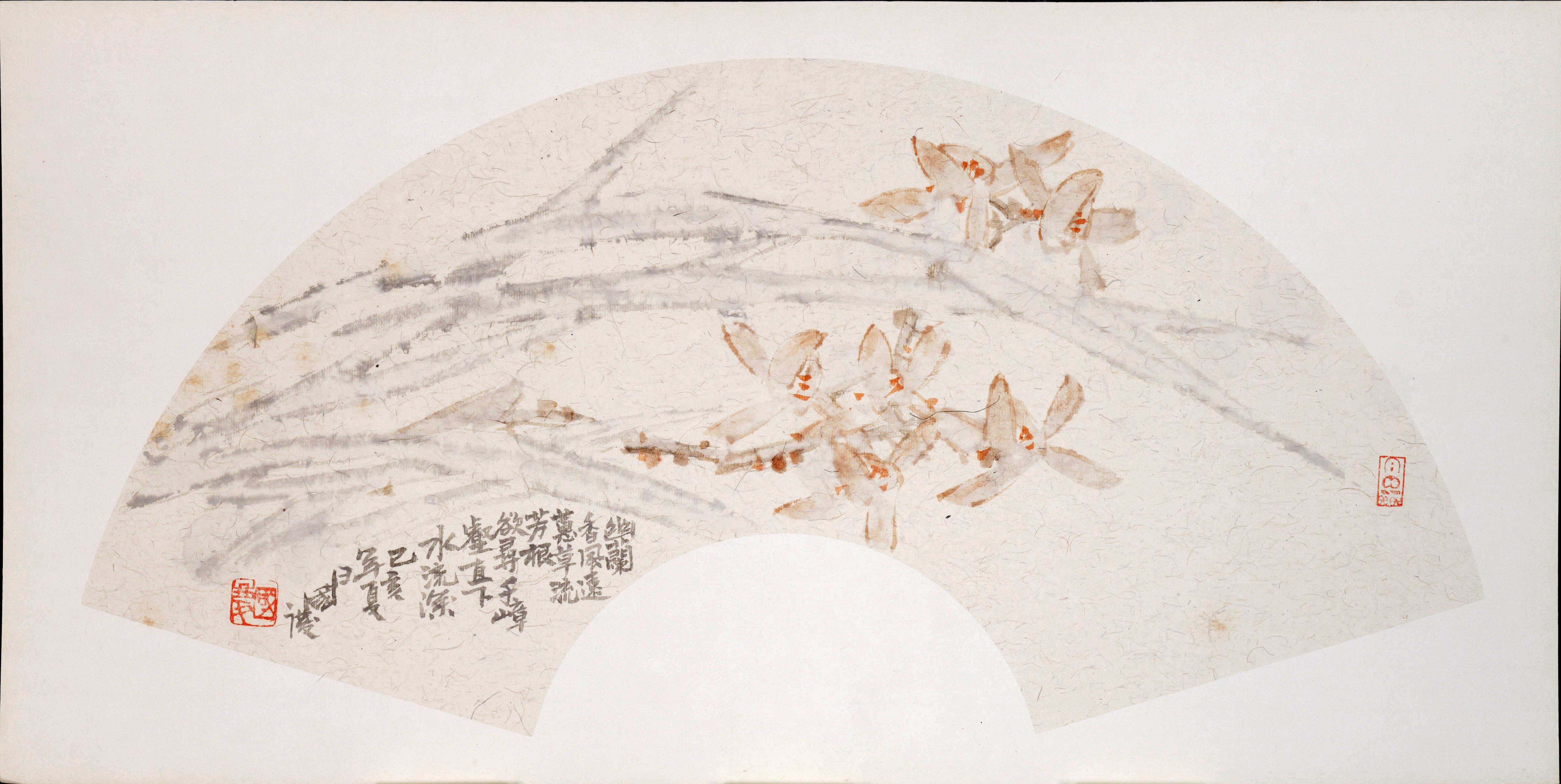 余国庆《幽兰香风远》国画原作30CM*60CM 手绘宣纸扇面花鸟作品