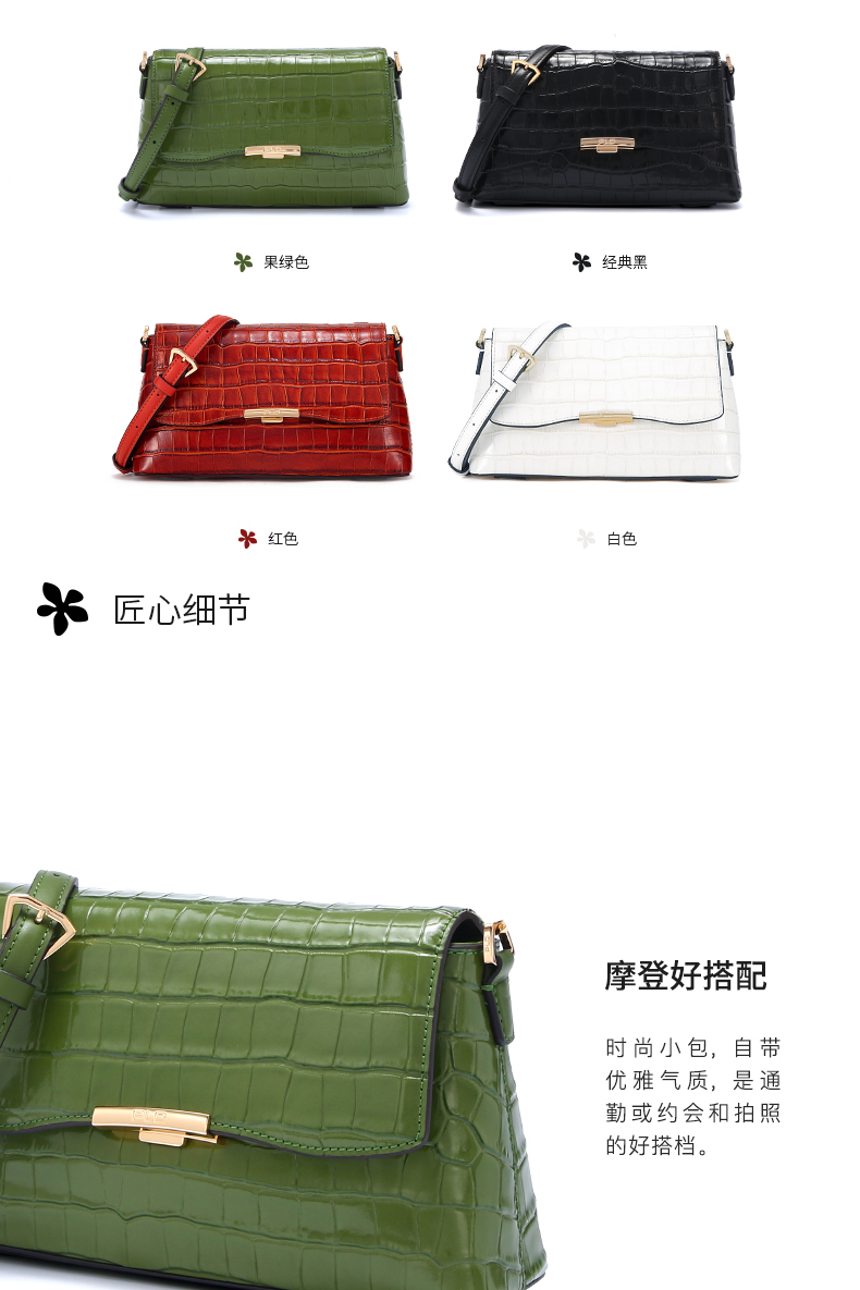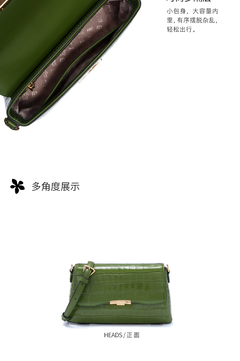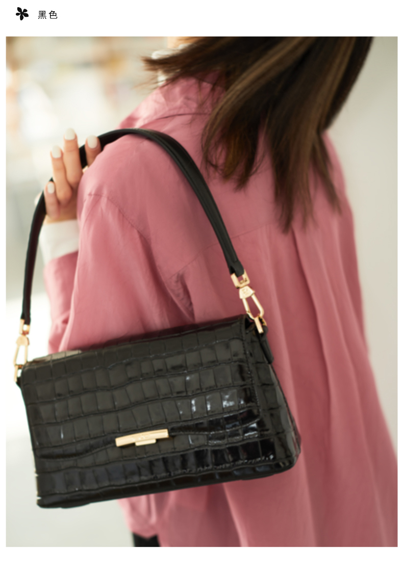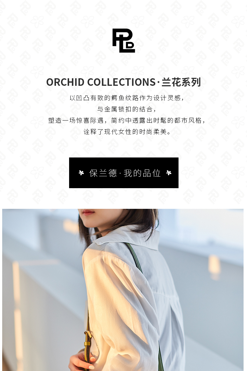 保兰德PLD东方雅奢兰花系列鳄鱼纹腋下包小众设计女单肩斜挎包手提小方包通勤中国包