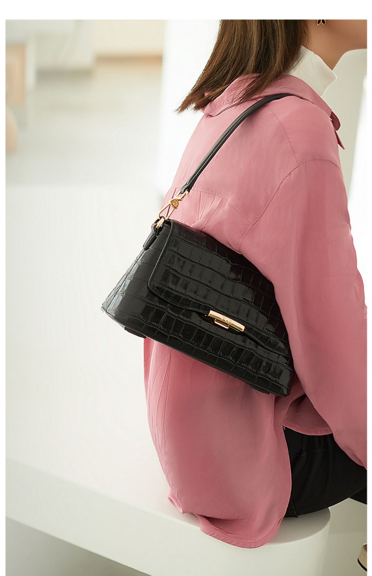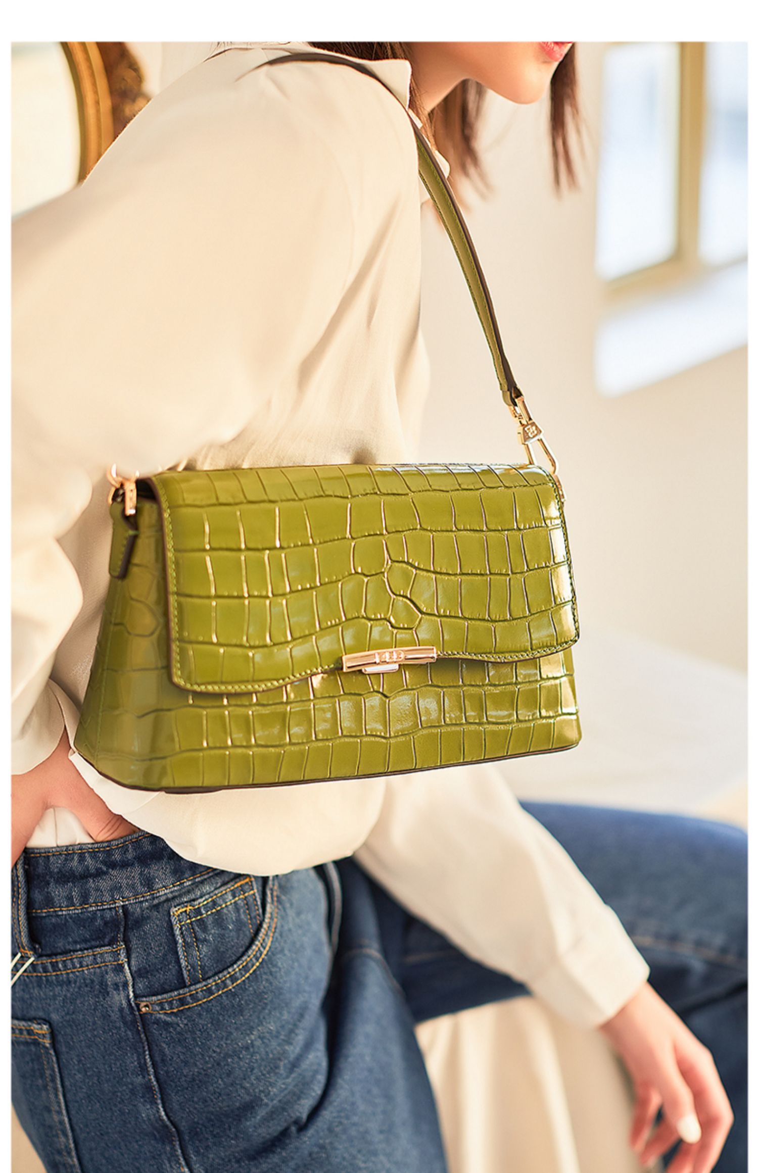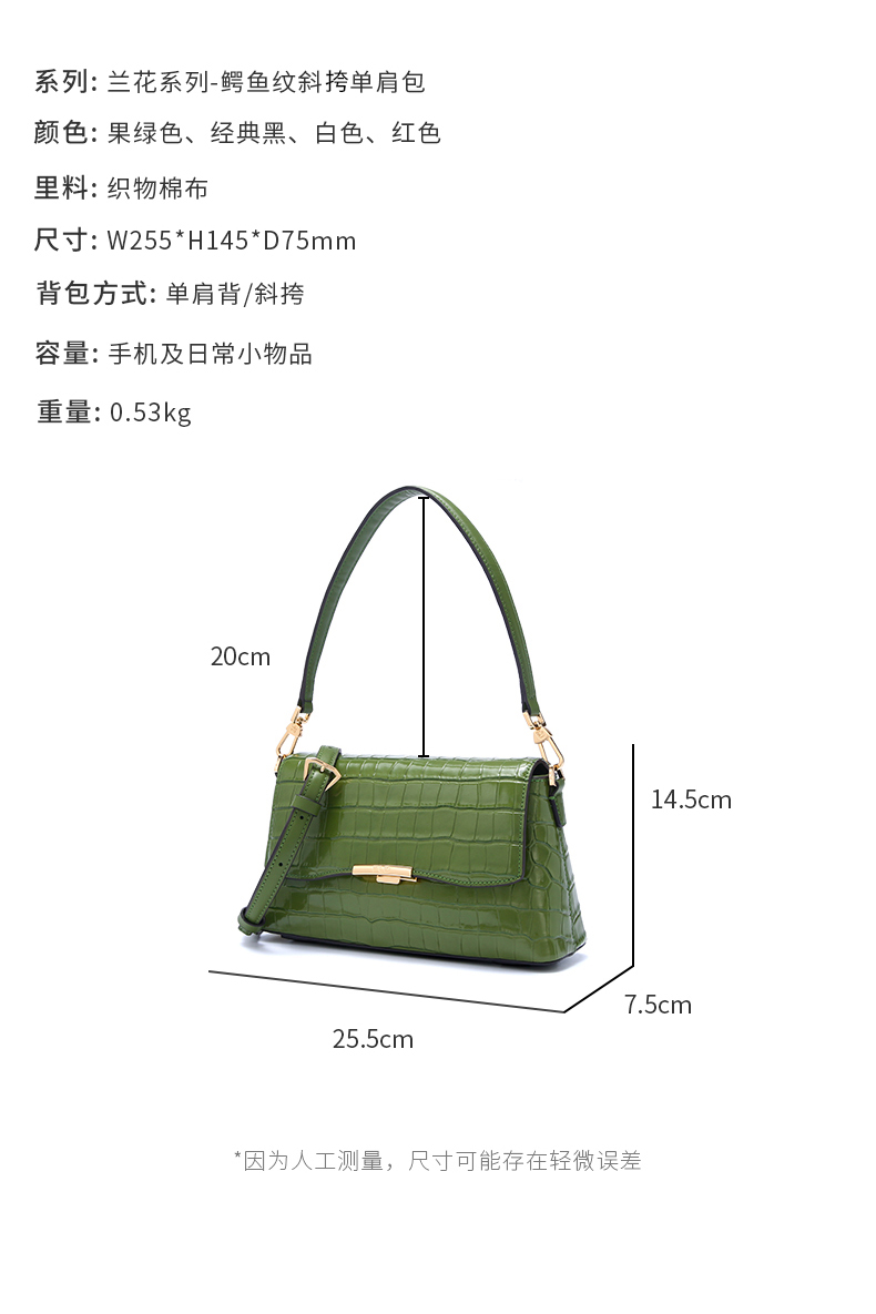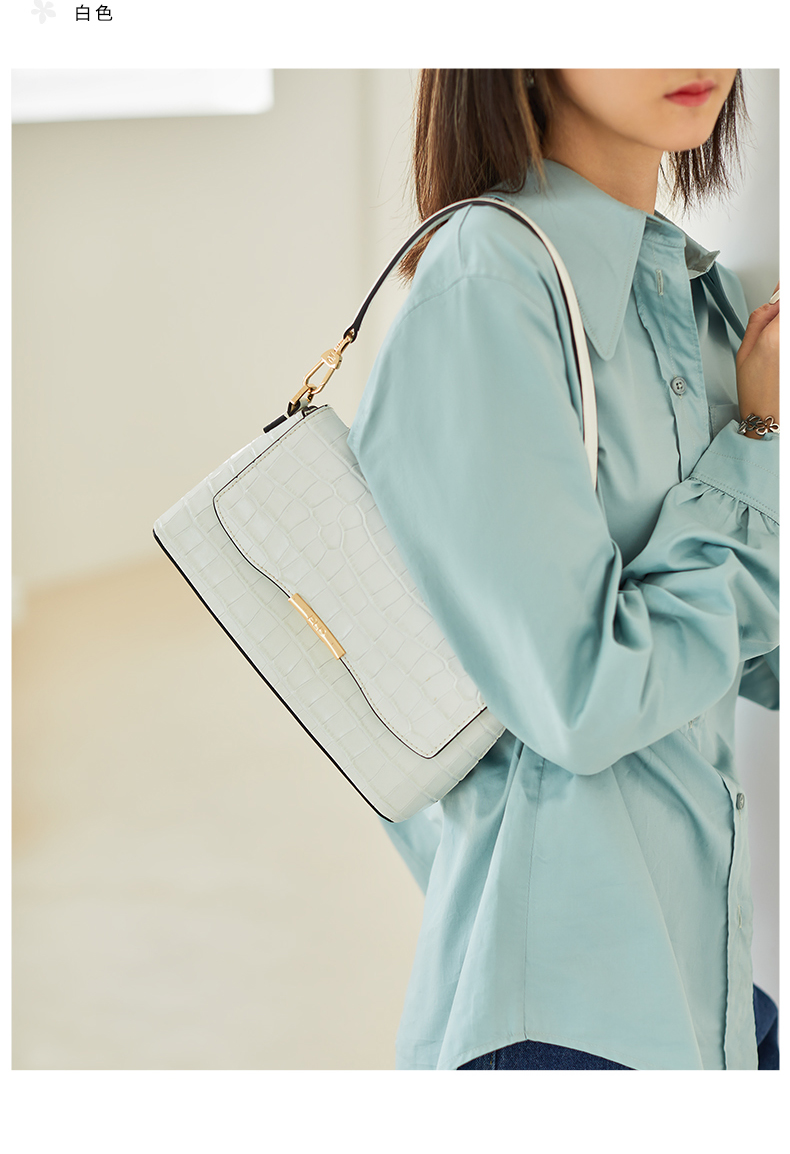 保兰德PLD东方雅奢兰花系列鳄鱼纹腋下包小众设计女单肩斜挎包手提小方包通勤中国包