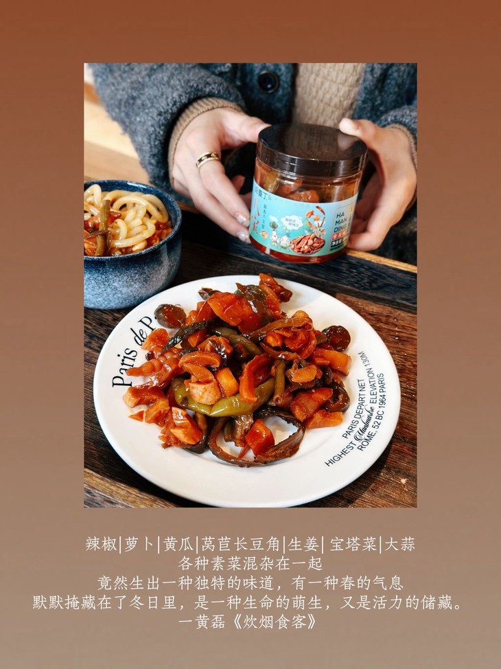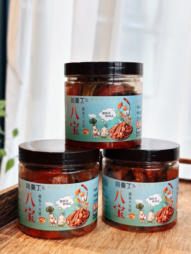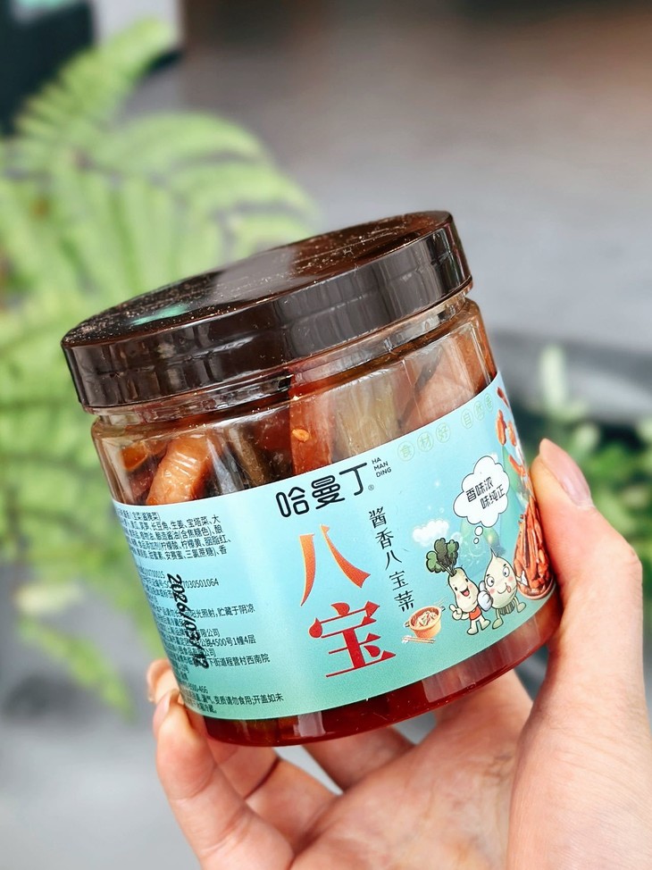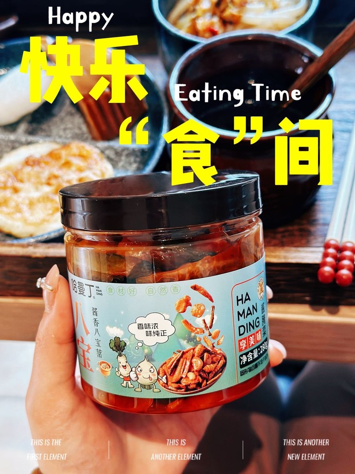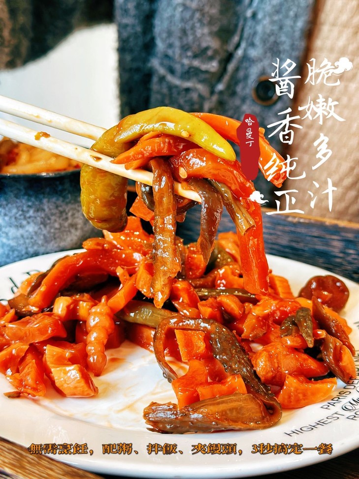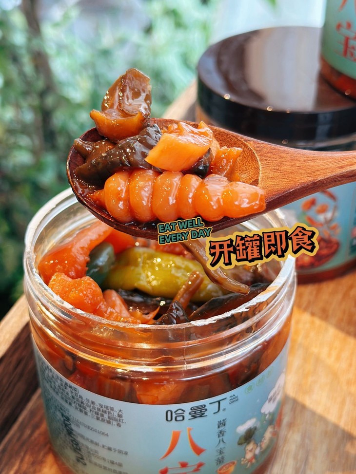 干饭人的灵魂佐餐,就选哈曼丁酱香八宝菜! 我们坚持用传统酱腌工艺,甄选当季新鲜蔬菜 历经多道工序慢腌入味,让每一根菜都充分吸收酱香,脆嫩爽口 咸香适中,不齁不腻,还原记忆里的老味道。 8种食材科学配比,脆、嫩、鲜、香一口到位 不管是早餐配白粥、午餐拌米饭,还是晚餐就面条 都能瞬间提升食欲,让普通饭菜秒变山珍海味