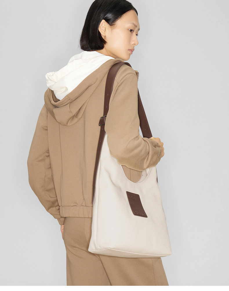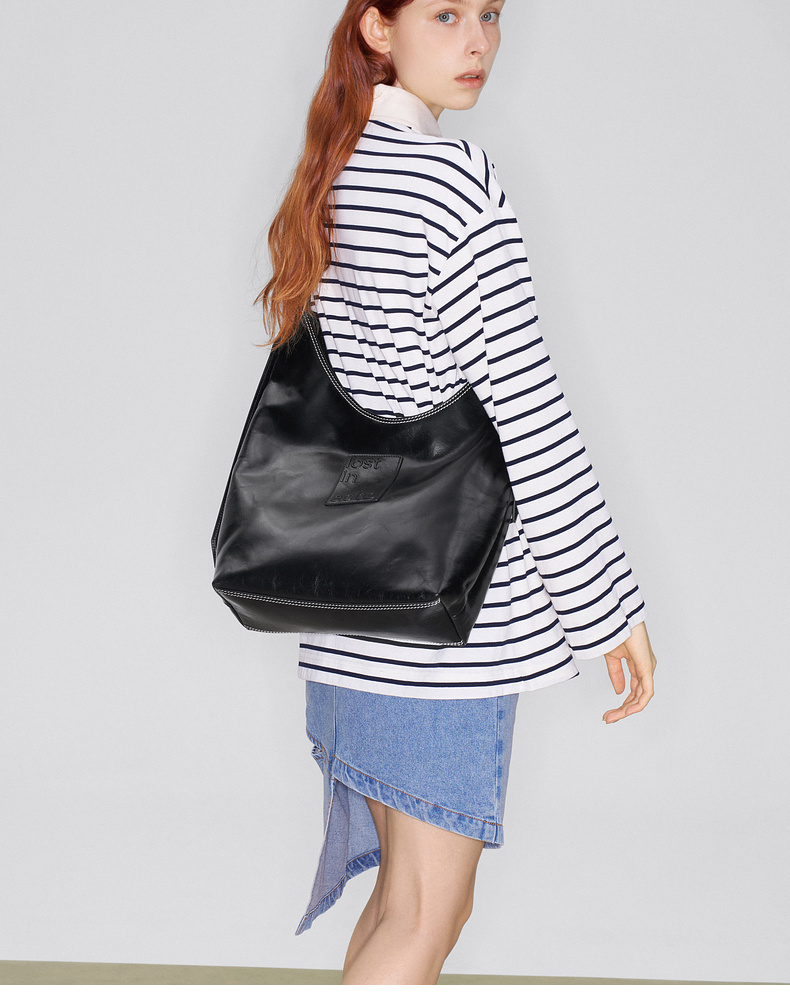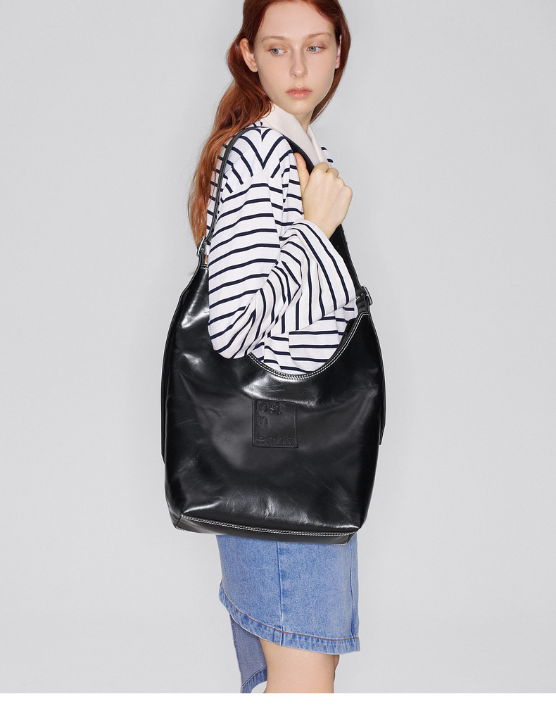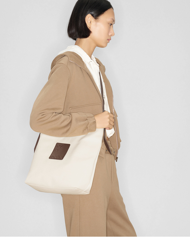 马君妍同款lost in echo早秋新款通勤超大帆布牛皮单肩斜挎托特包