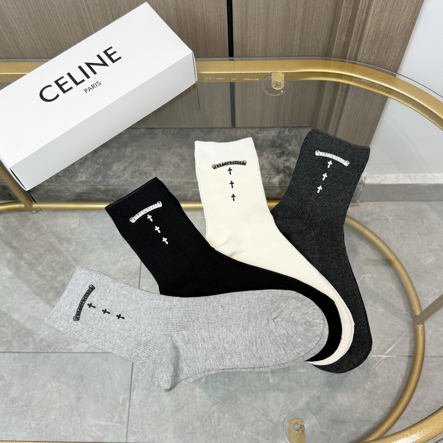 秋冬特惠💰140【一盒四双】克罗心高版本袜子 ~好看到爆炸 克罗心袜子 双针烫印中筒袜