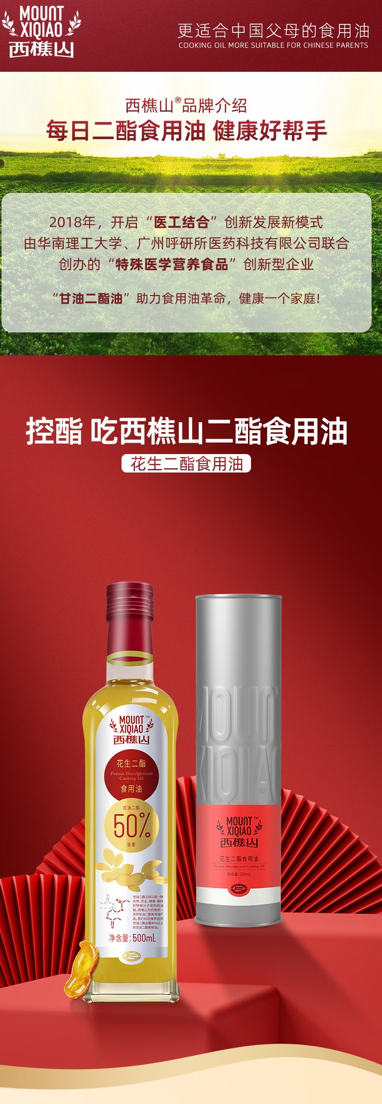 【月满家和】西樵山花生二酯食用油 500ml/瓶 (二脂油含量50%)(包邮直发)(ZB)