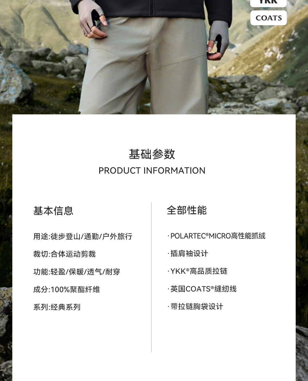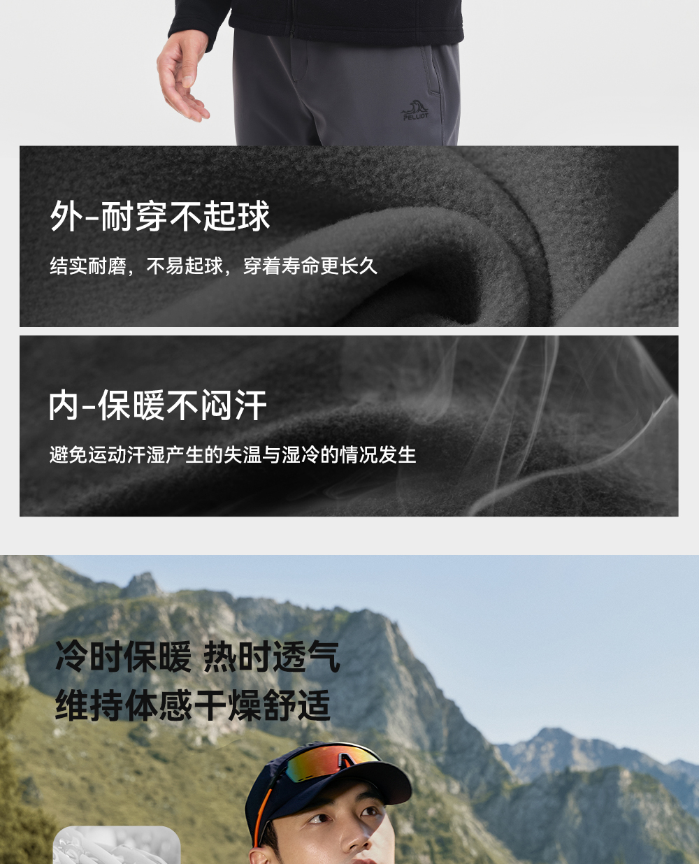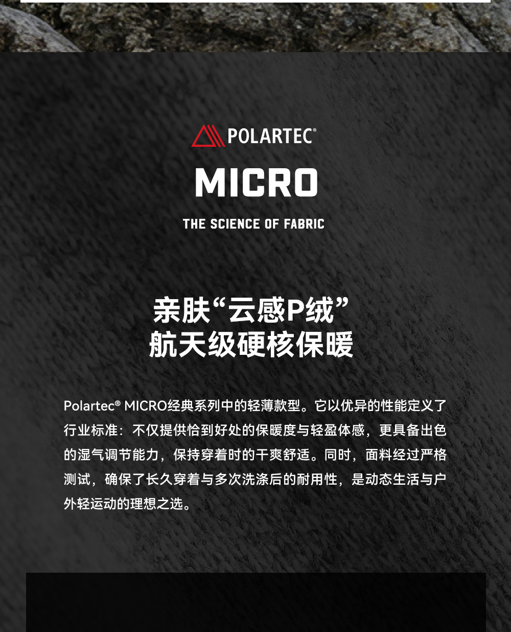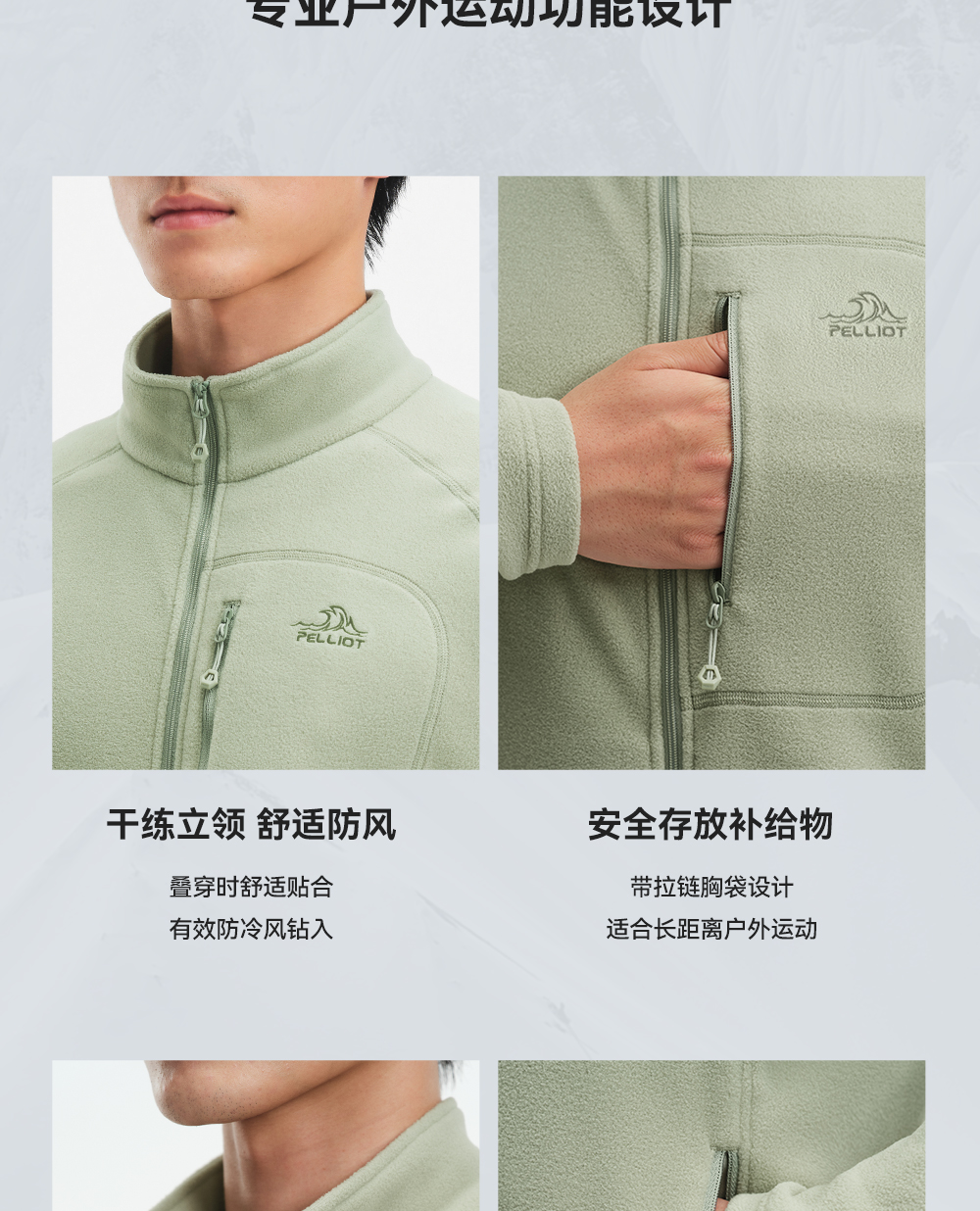 伯希和户外Polartec Micro抓绒外套男款防风保暖摇粒绒冲锋衣内胆