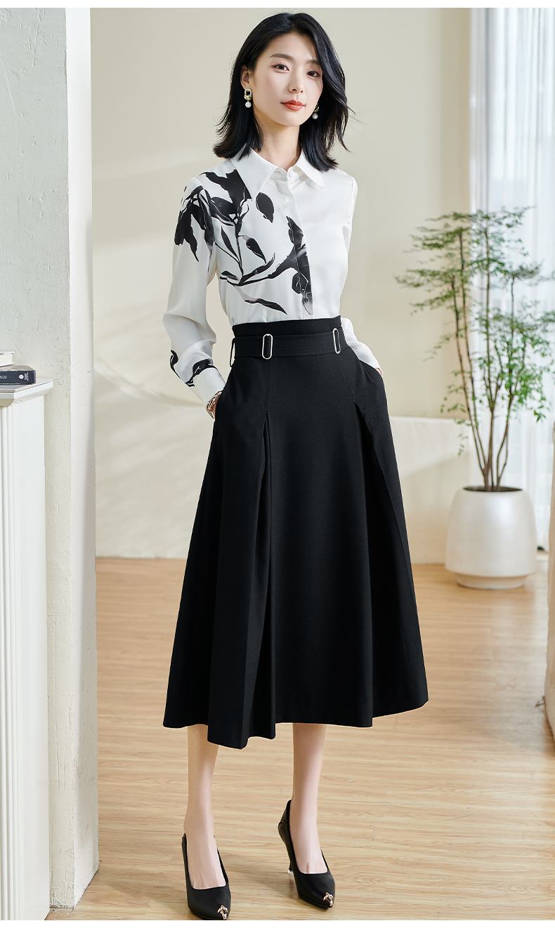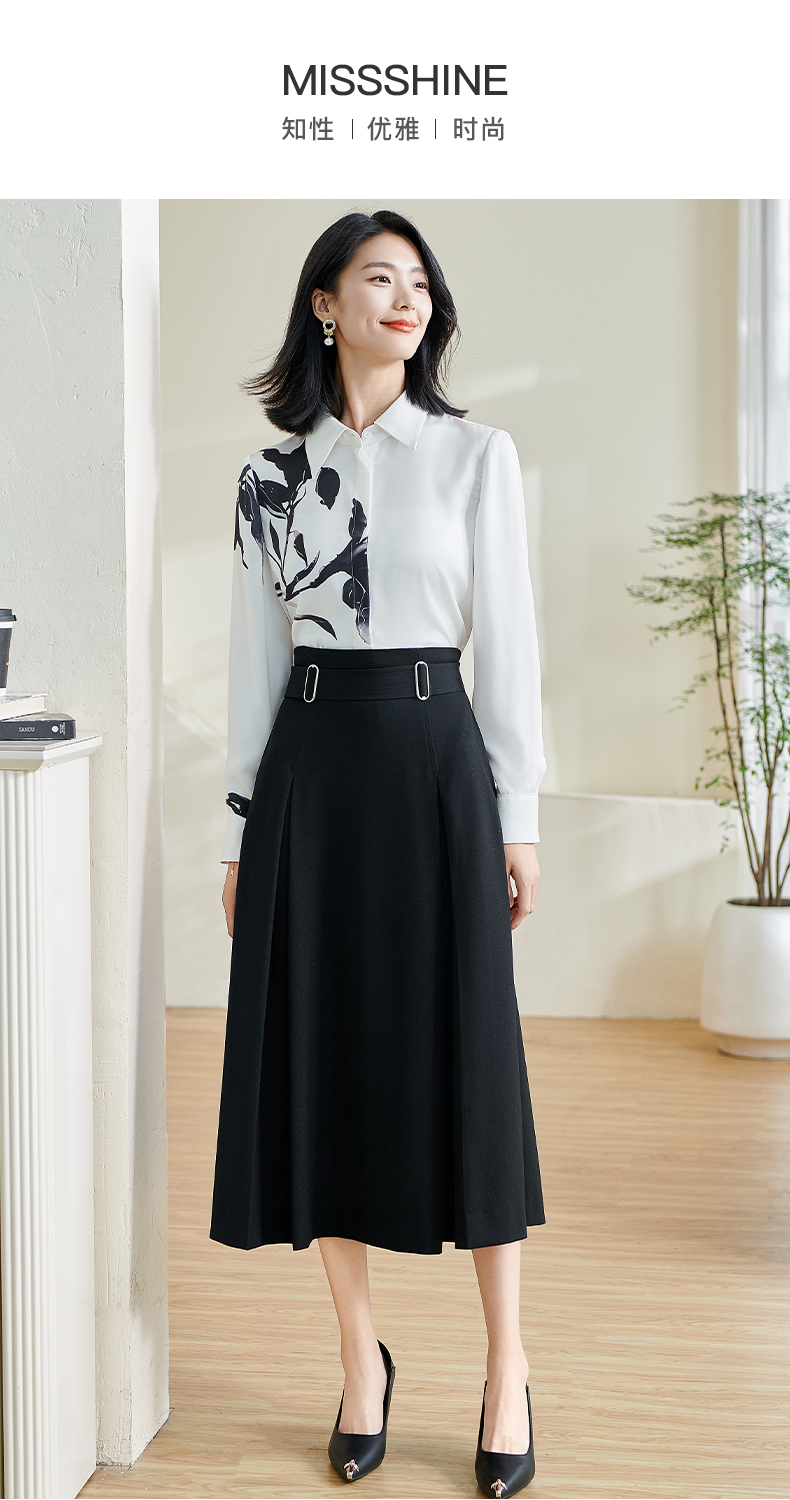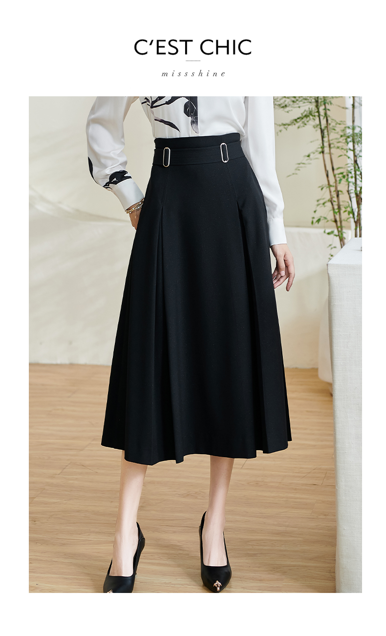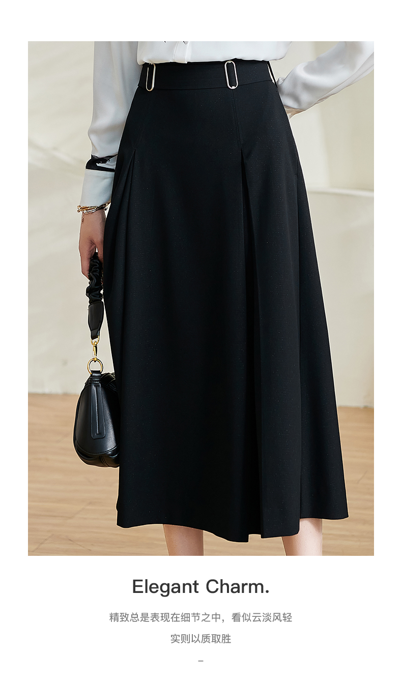 剩S/M/XL 米思阳2026春季新款气质时尚黑色半身裙高腰修身褶皱a字裙女0210