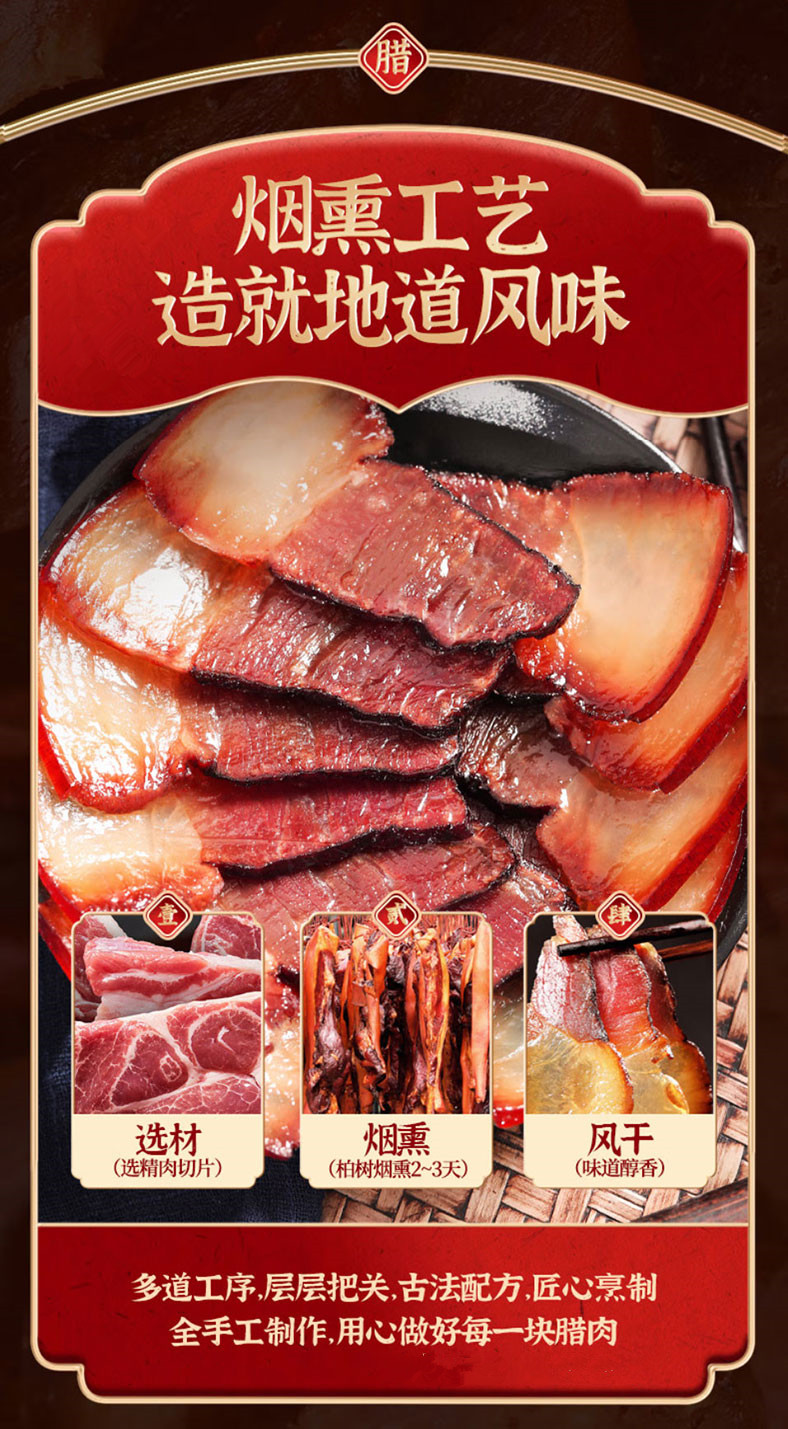 【严选】恩施土家腊肉熟食腊味 腊冬至柴火烟熏腊肉500g/袋