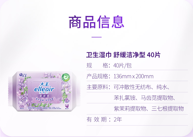 【10包一组】大王爱璐儿elleair 卫生湿巾 湿厕纸 家庭装 40片/包