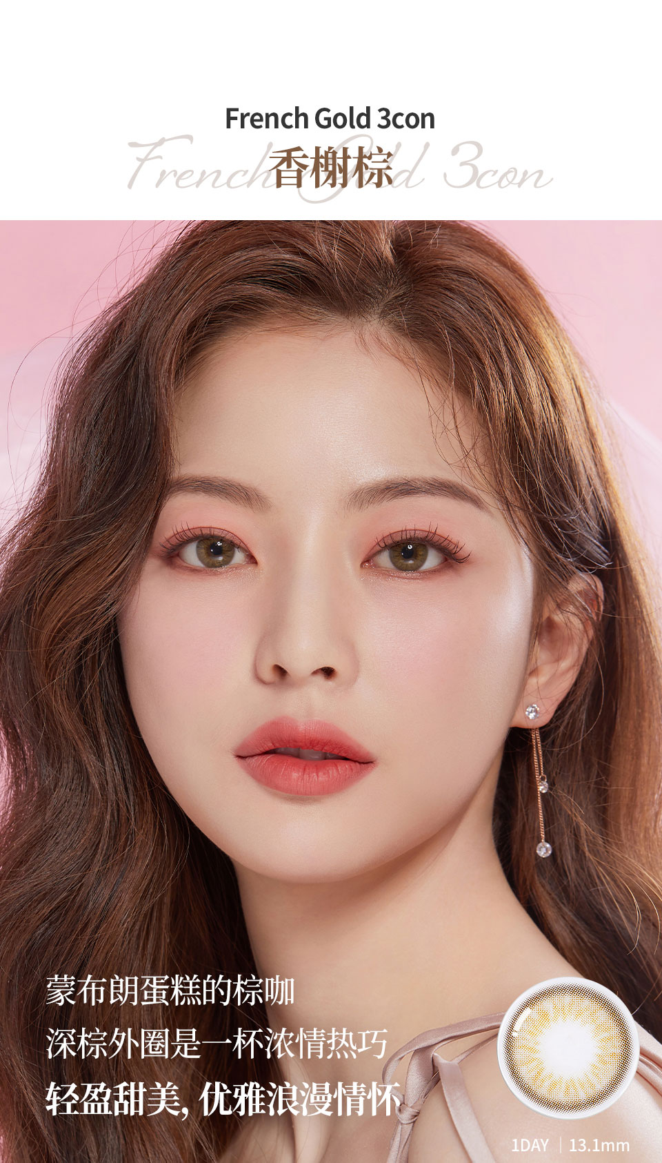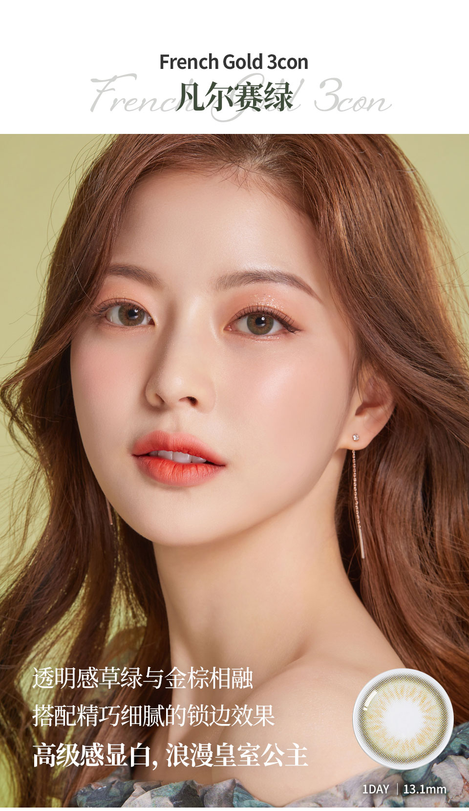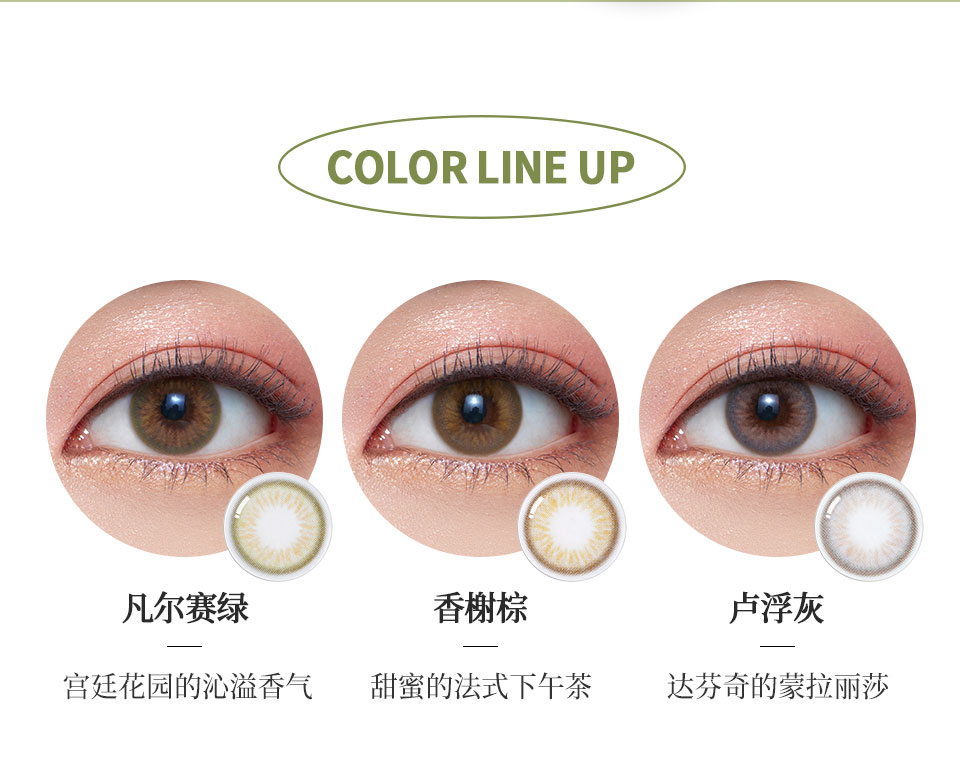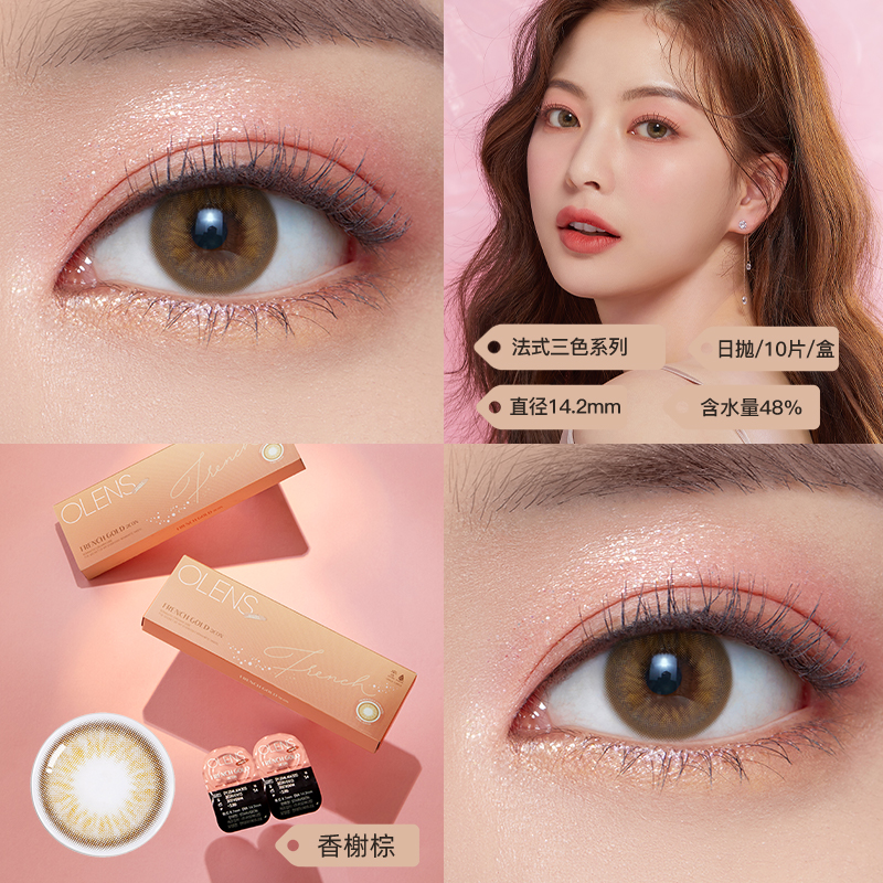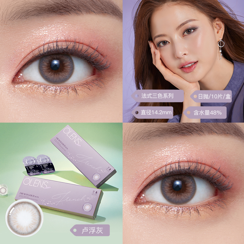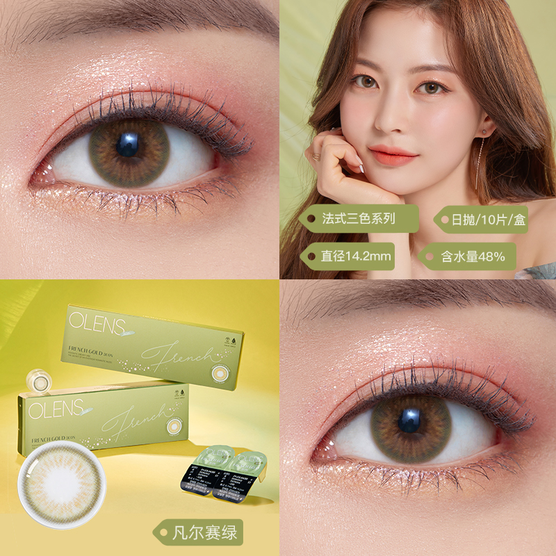 Olens日抛 · 卢浮灰&香榭棕&凡尔赛绿 · French系列·14.2mm中等直径 一盒10片装