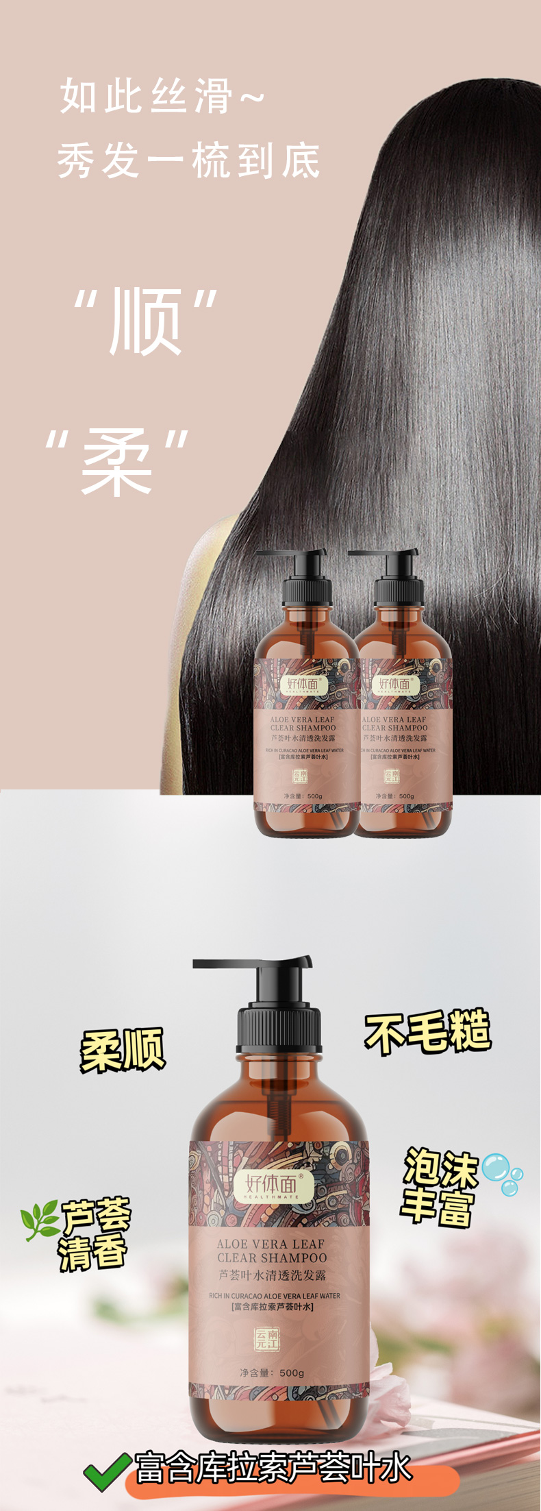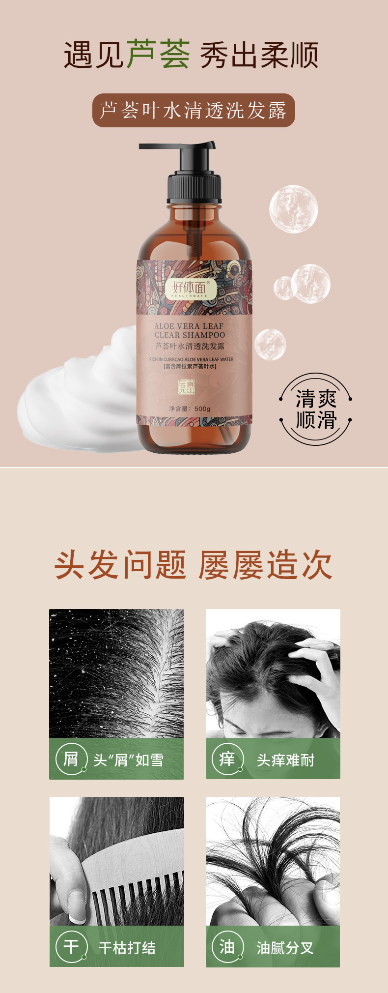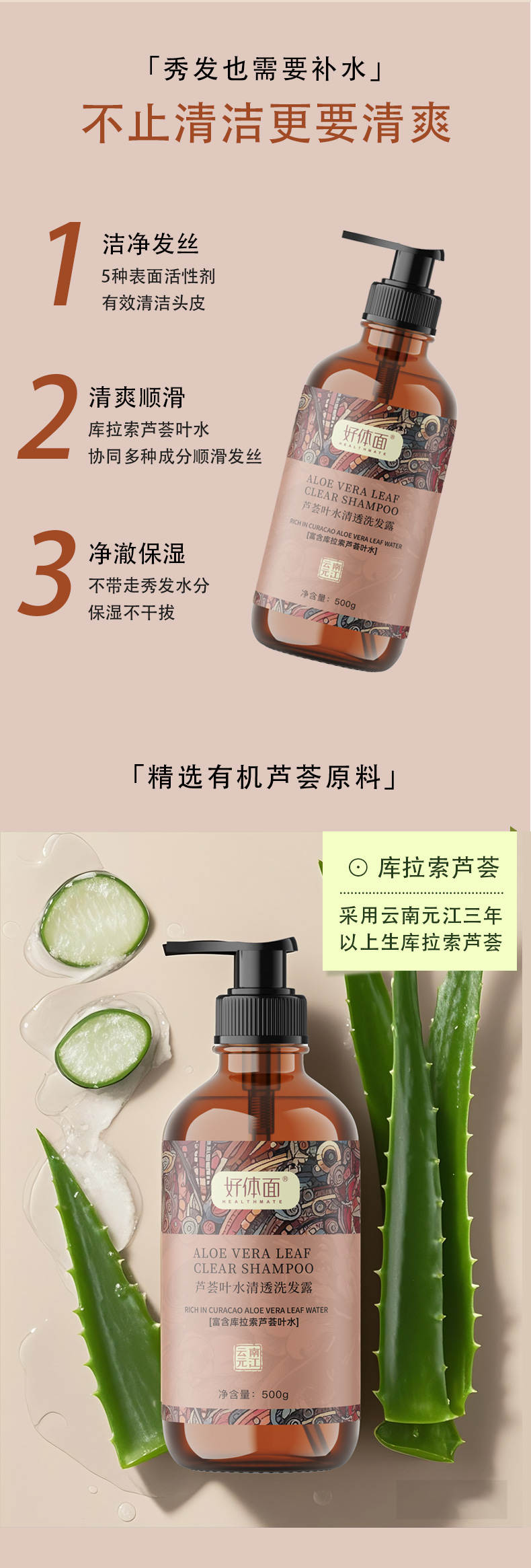 好体面芦荟叶水清透洗发露清爽柔顺保湿500g
